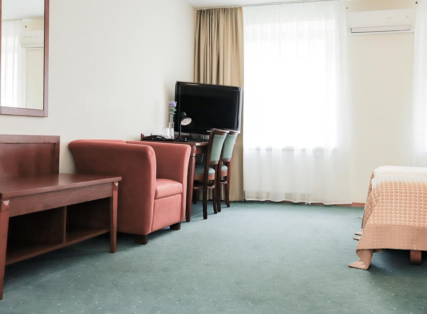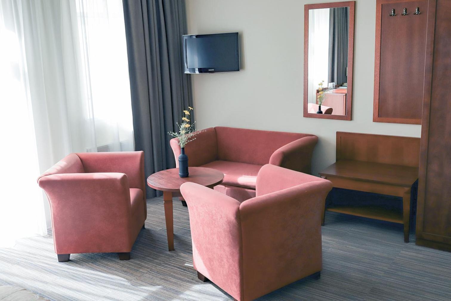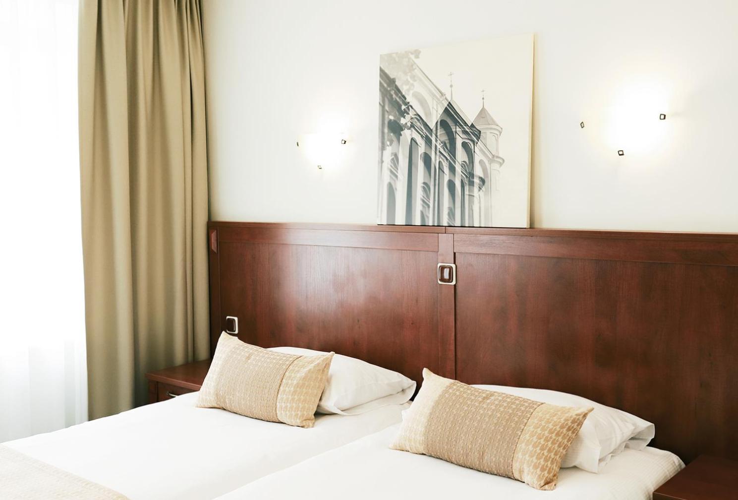 Labai prastos pagalvės sušokusios gumulais ir didelės. Buvo daug mokyklinio amžiaus vaikų ir kai jie ėmė lakstyti sekmadienio ankstų rytą po holą tai sienos rodėsi kiauros. Nėra geriamo vandens kambaryje, kai kainą moki gana nemažą- norisi kad būtų vandens buteliukuose, nes krano vandens skonis labai jau nekoks. Kambaryje stovi arbatinis, tik jo paskirtis visai neaiški, nes nei arbatos/ kavos, nei puodelių į kuriuos pasidaryti karšto gėrimo. Registratūra nepatogi, darbuotojas kurio reikėjo laukti, nebuvo malonus.