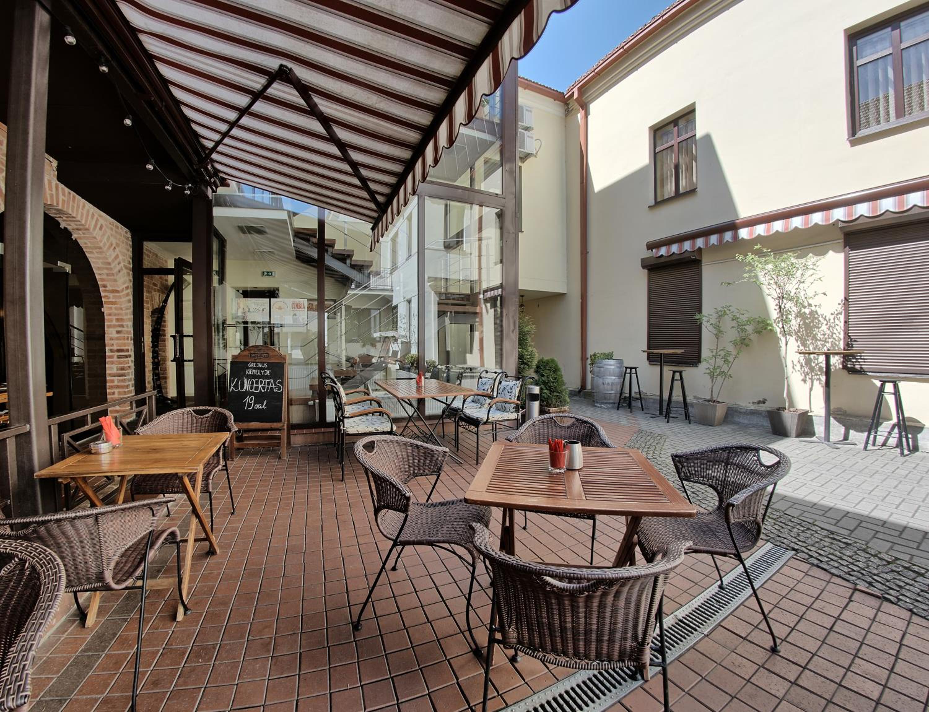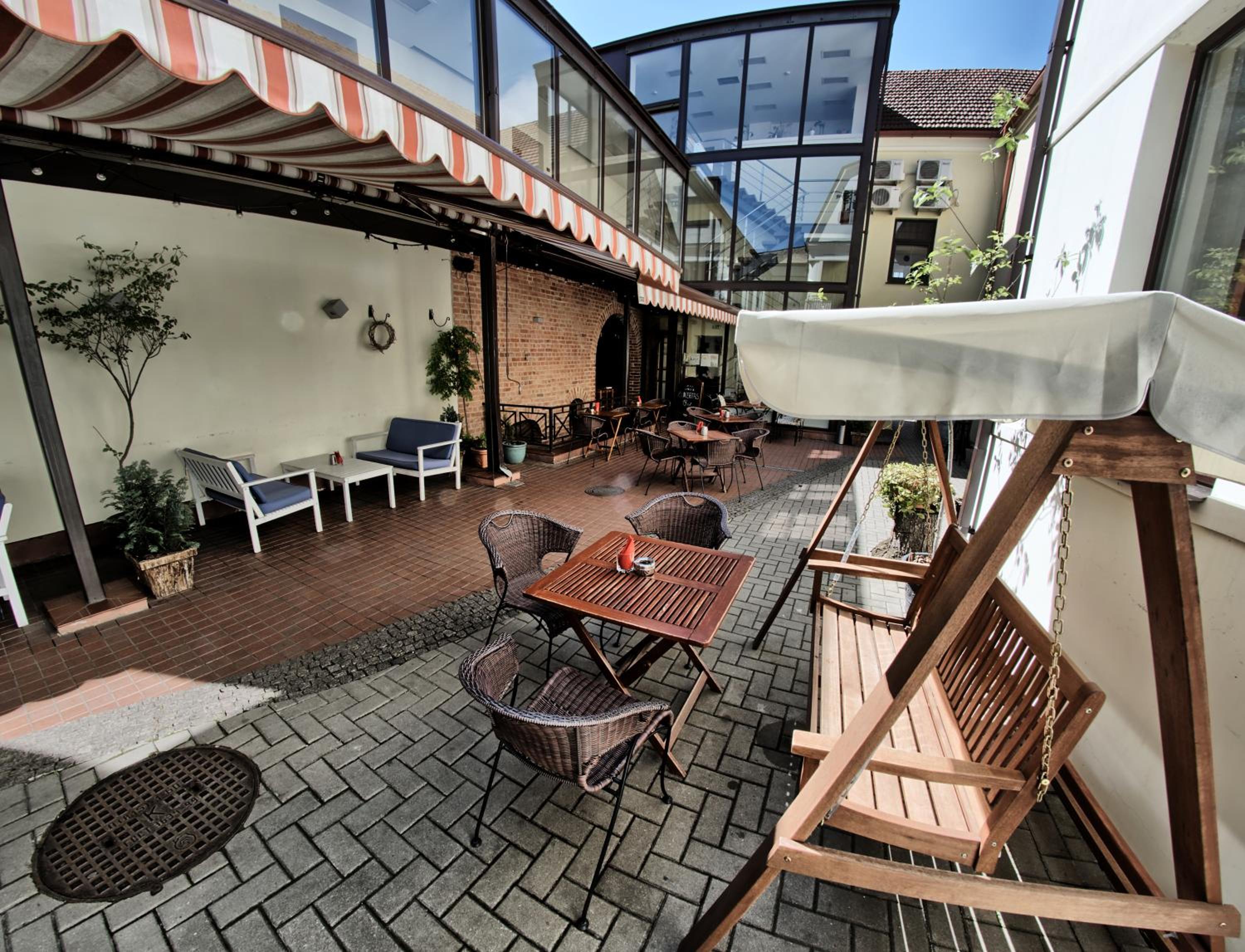 Švaru, jauku, puiki lokacija, graži aplinka, kavinės darbuotojai ypač malonūs, gausūs pusryčiai. Labai skanūs agurkų ledai ir visas kitas maistas puikus.