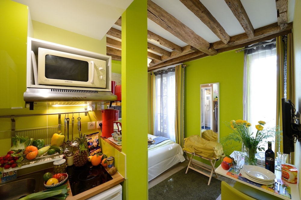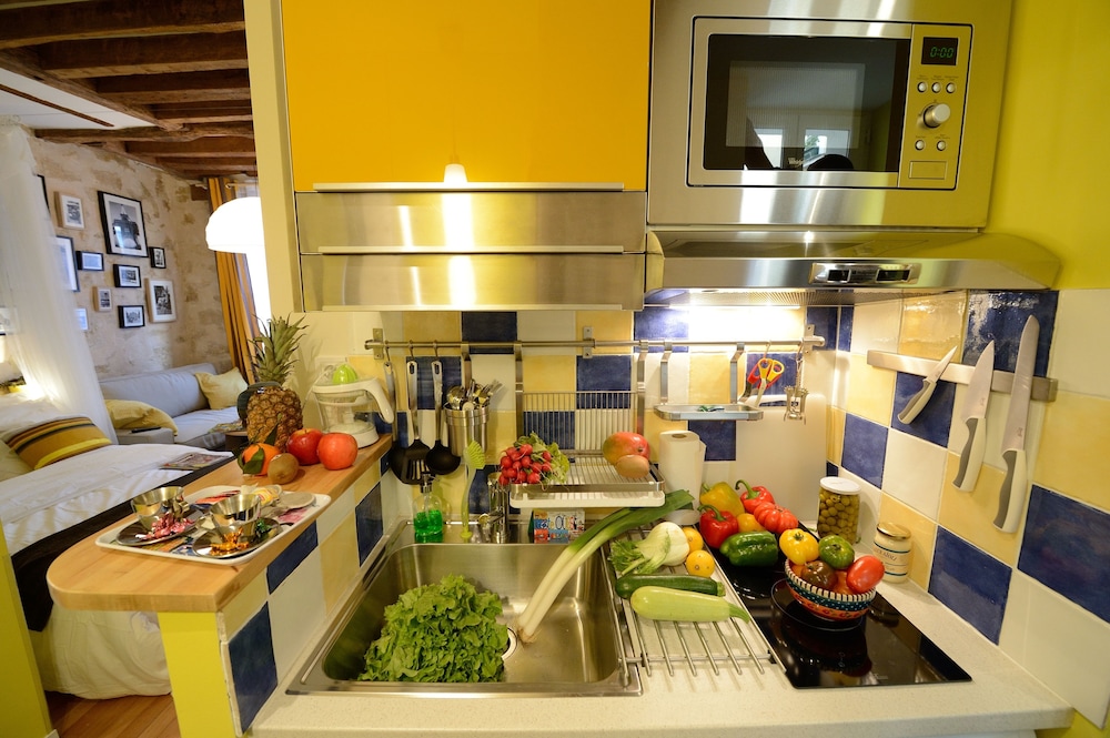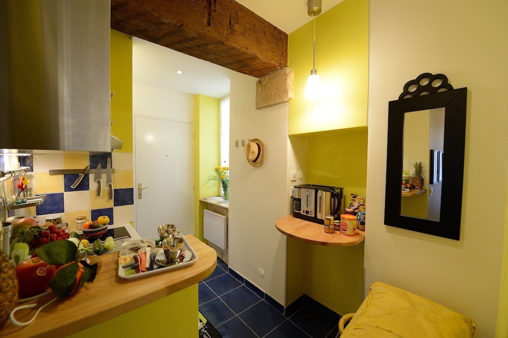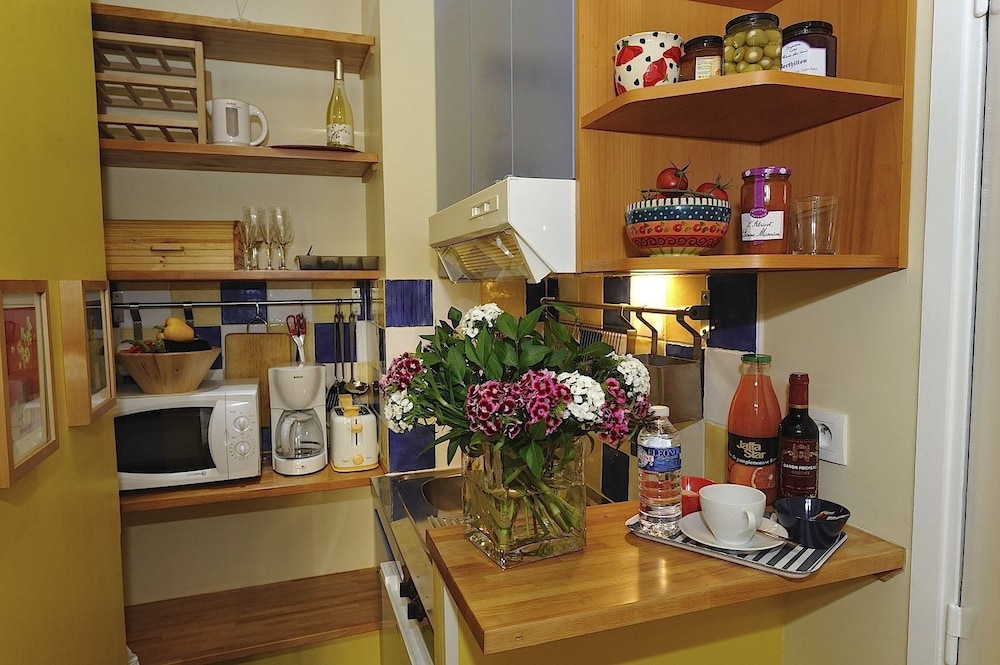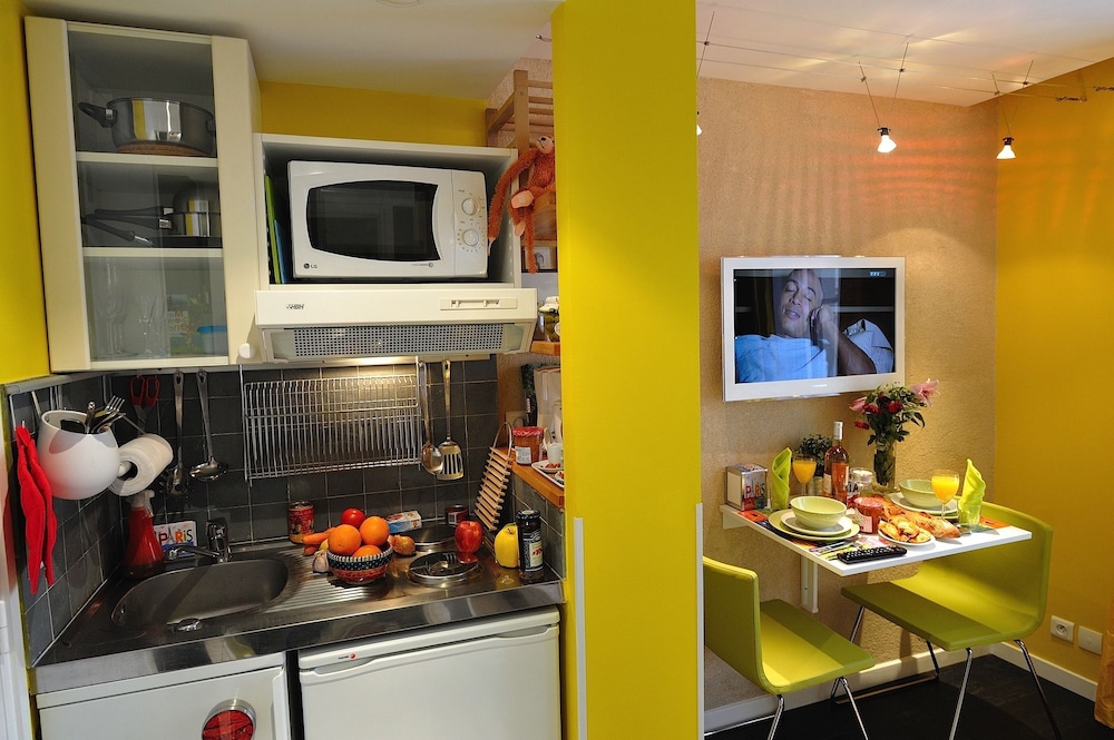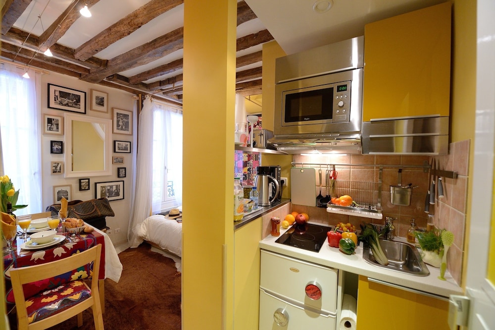 Kitchen was tiny but fully equipped and there were several wonderful bakeries close by. Very easy to get anywhere in the City. Small but comfortable room.