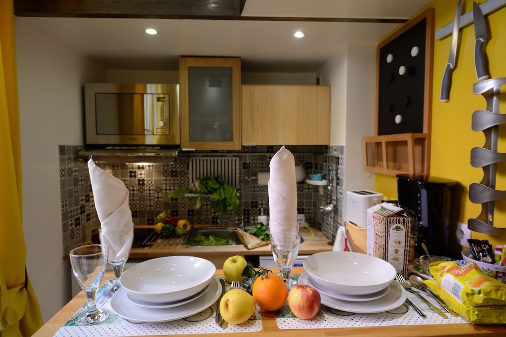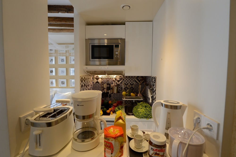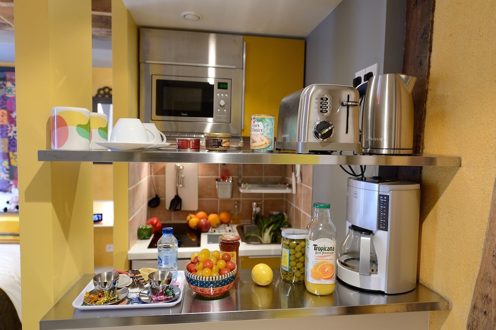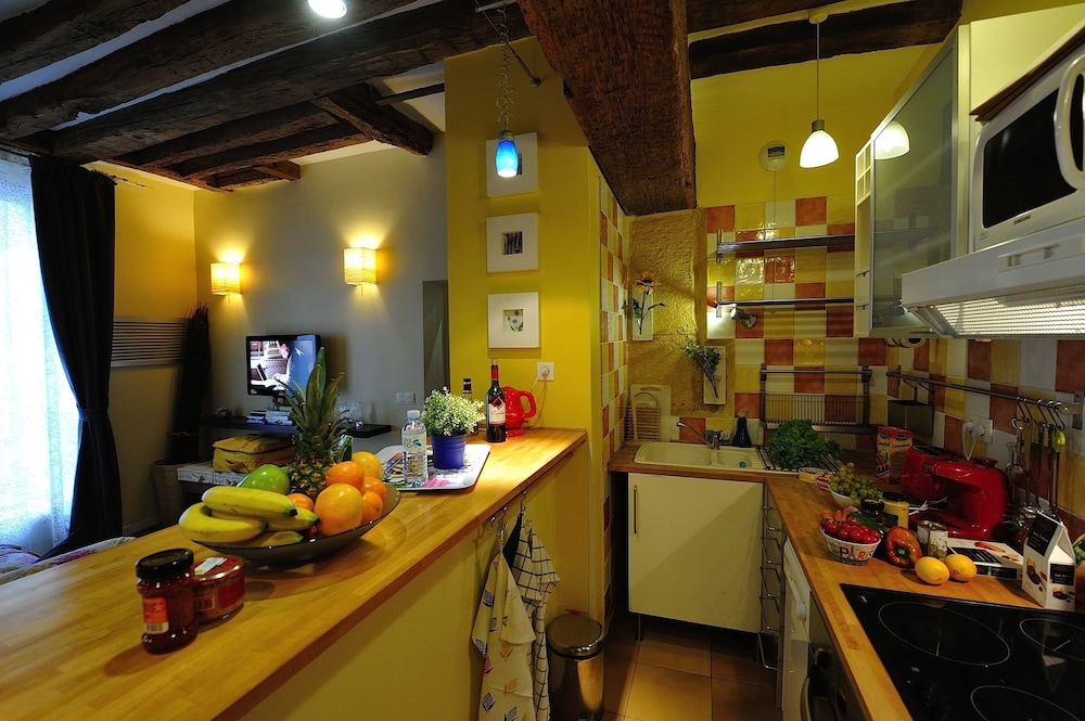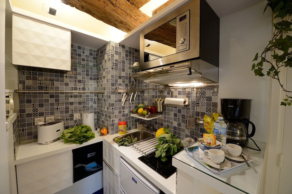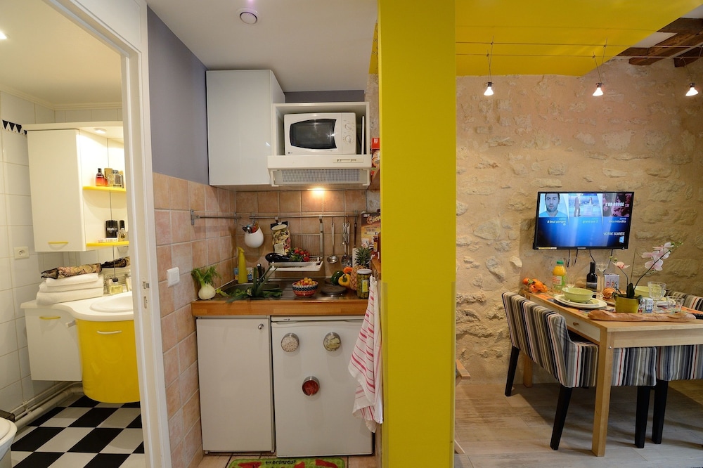 Kitchen was tiny but fully equipped and there were several wonderful bakeries close by. Very easy to get anywhere in the City. Small but comfortable room.