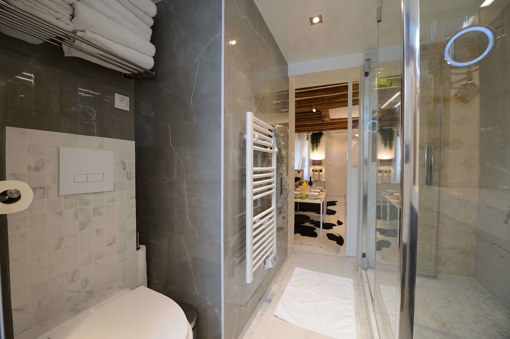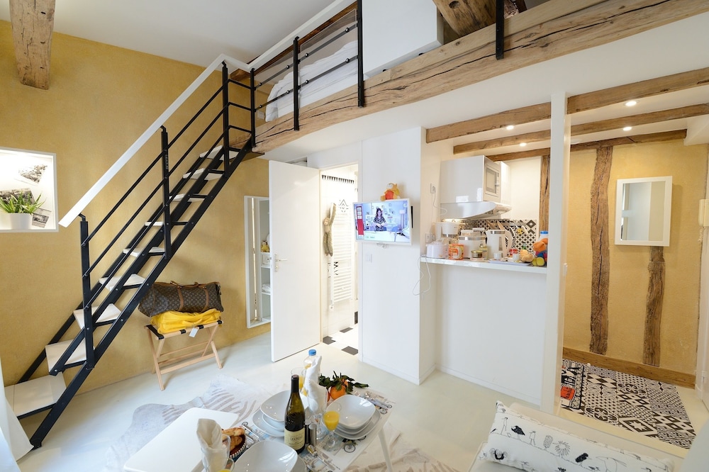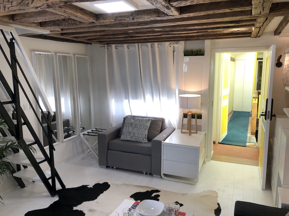 Our stay at Les Patios du Marais was disappointing and did not match the listing. There was no sound insulation, making it impossible to sleep, and construction work started at 7:30 a.m. without prior notice. The apartment was not properly cleaned, the internet did not work, and the bathroom was extremely small and unsafe. Access instructions were unclear and the building was poorly lit. The toilet also malfunctioned during the night.