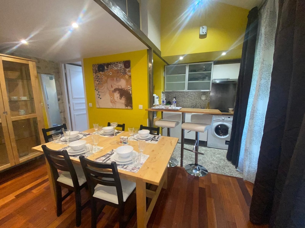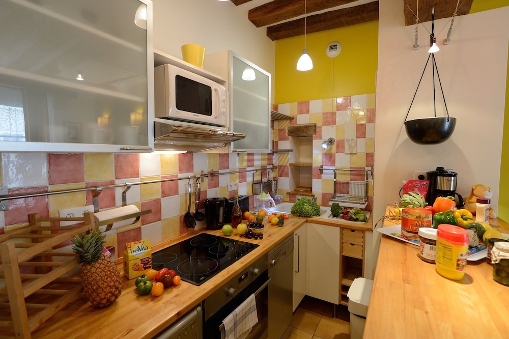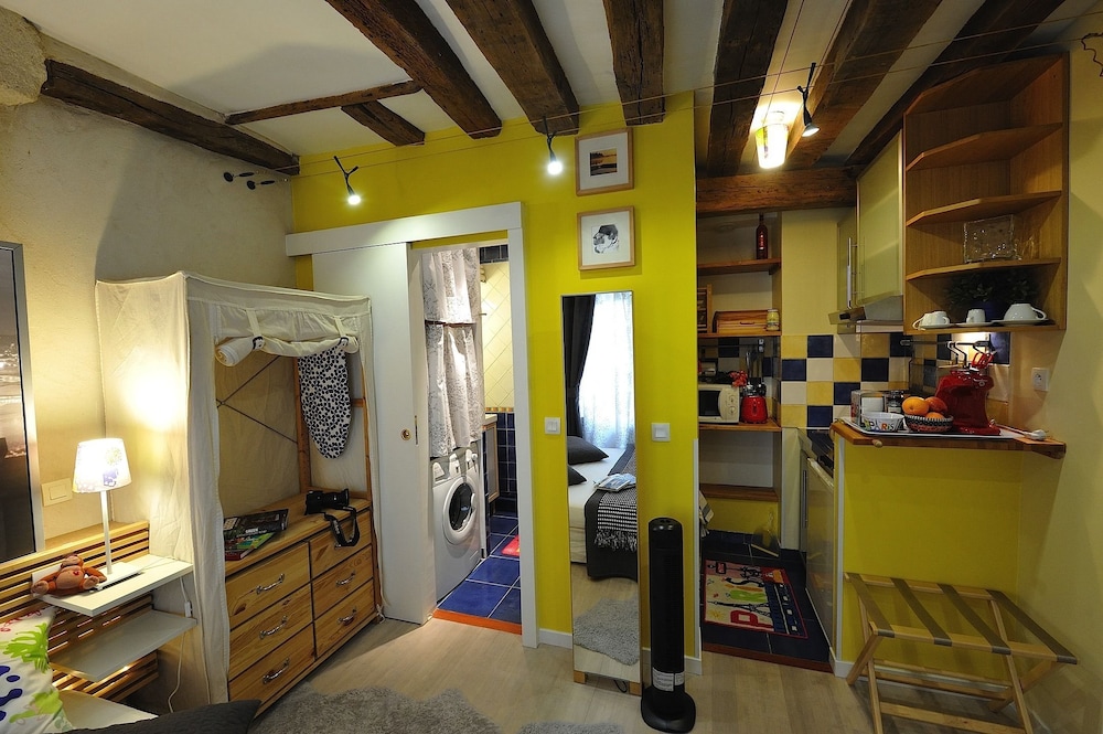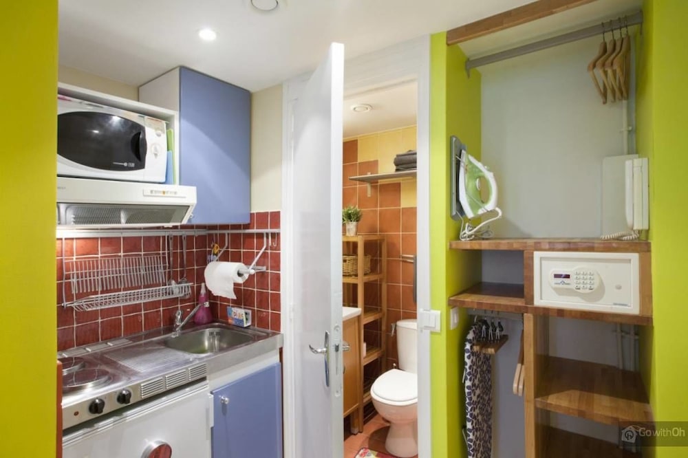 Lovely mini flat well equipped, charming decorated. 10 mins walking distance from the metro or underground stop. I must say in the beginning I had some problems with water leaking in my toilet but they fixed straight away. They don’t have a lift you have to go up and down the stairs with your suitcases. They do t have a key is all electronic passcode.