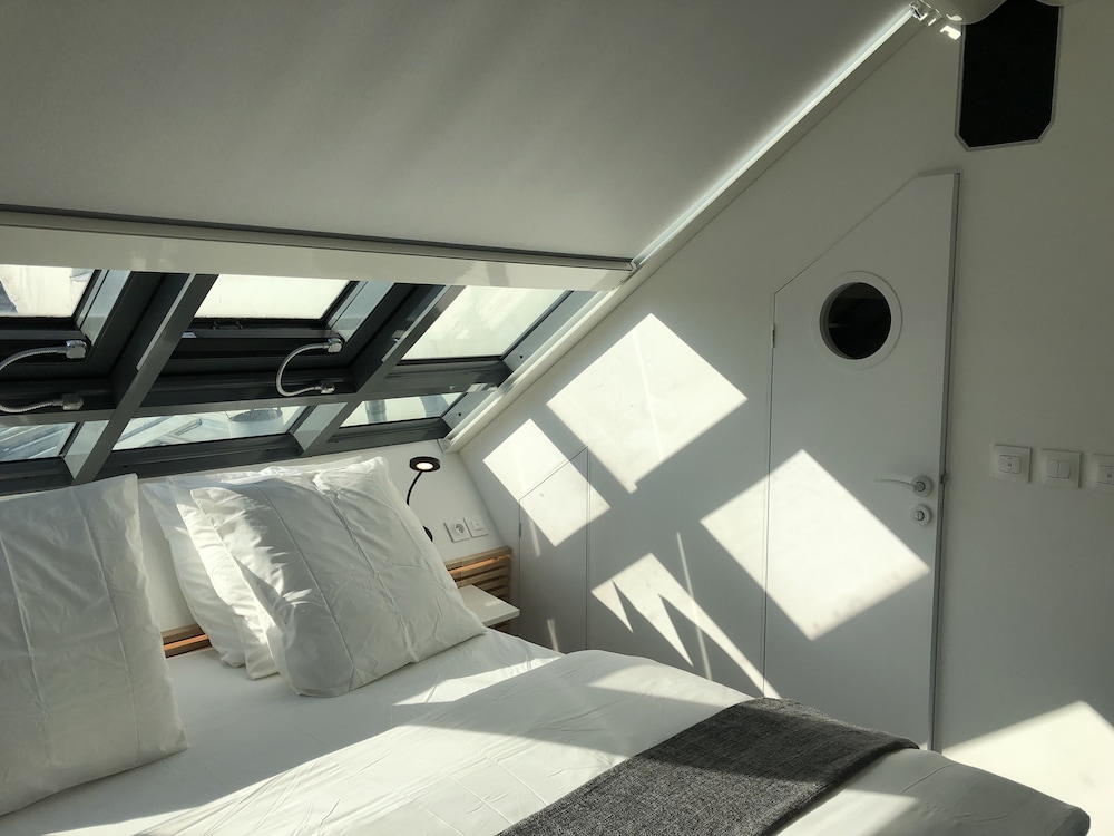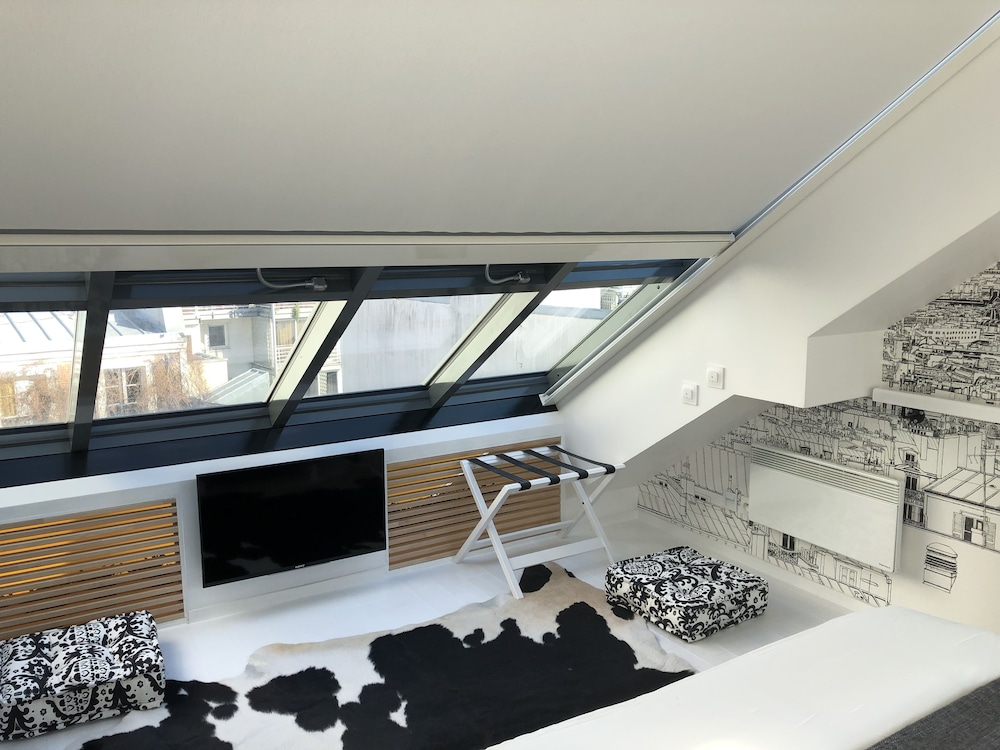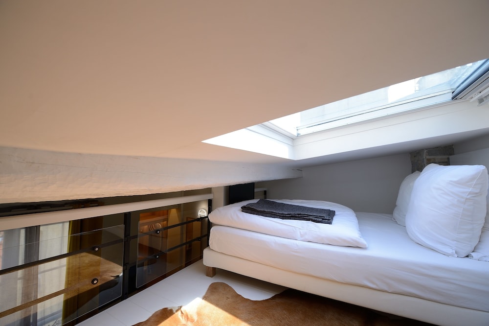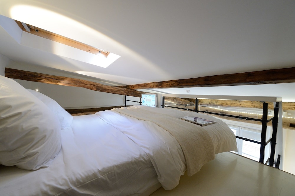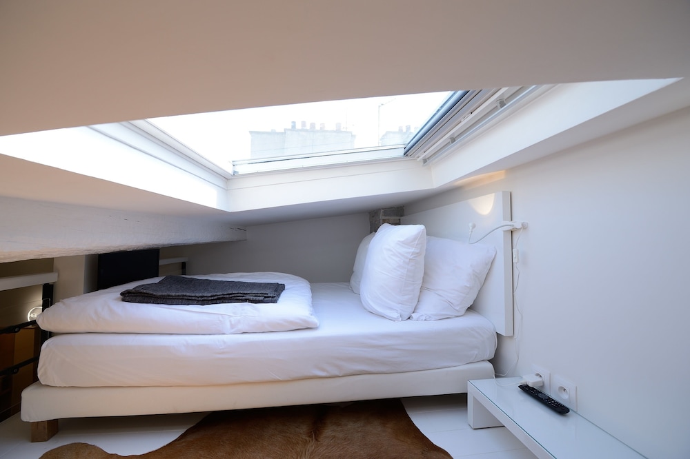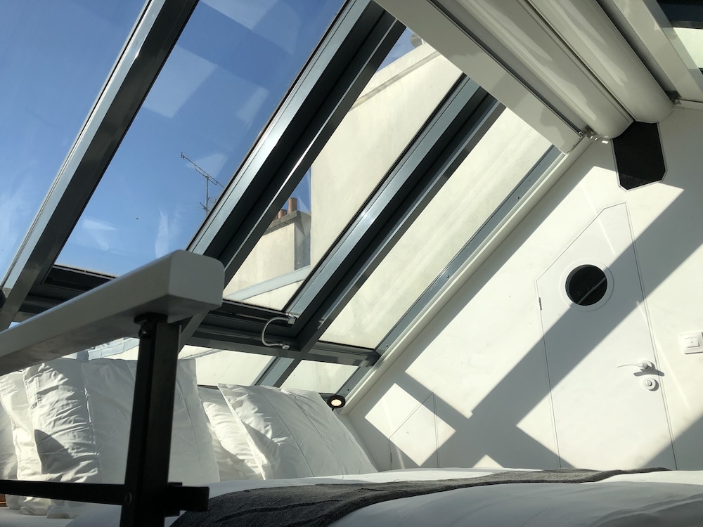 We stayed in 4th floor apartment with huge skylight over the bed.