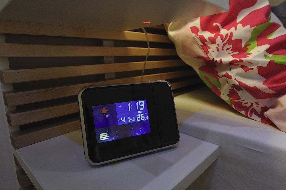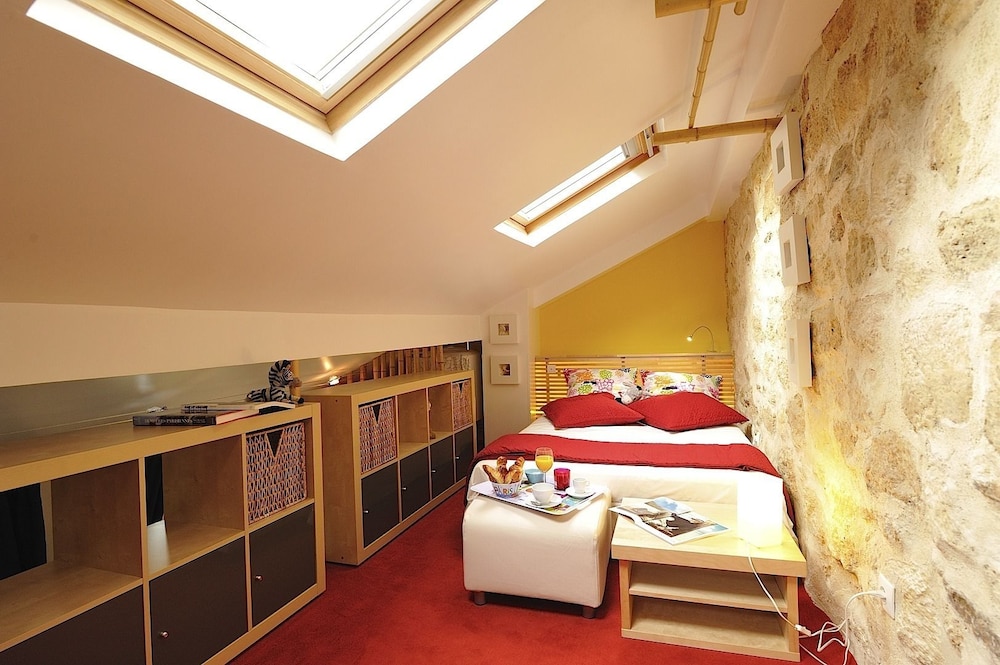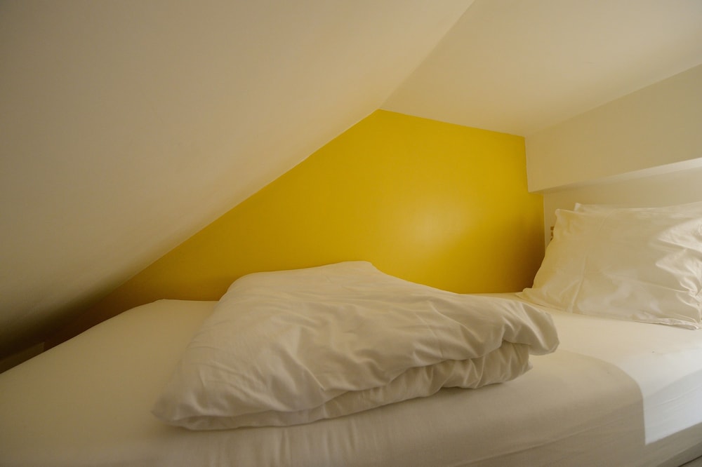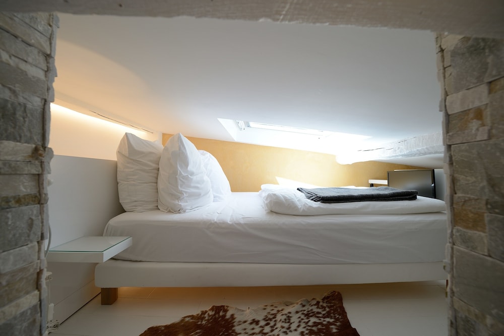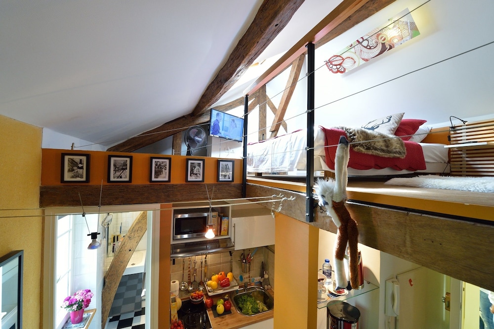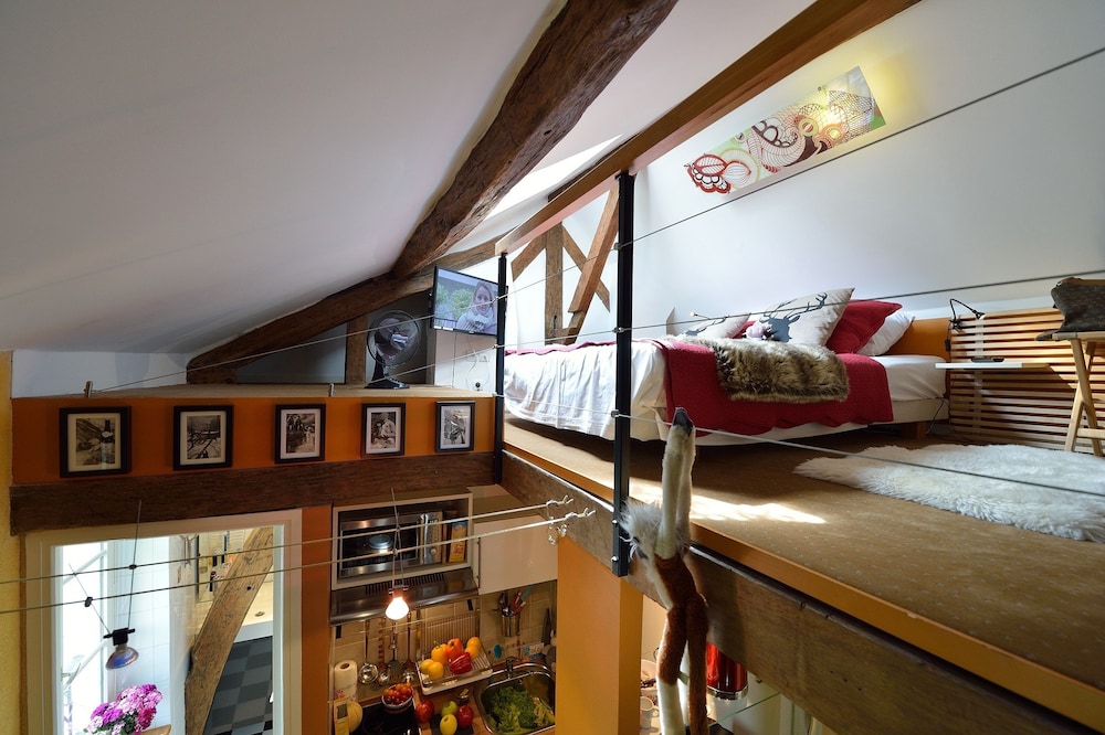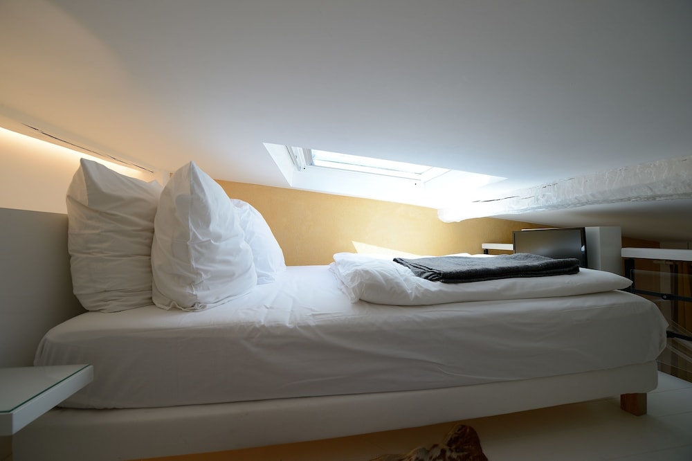 We stayed in 4th floor apartment with huge skylight over the bed.