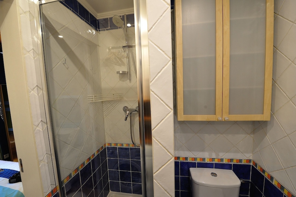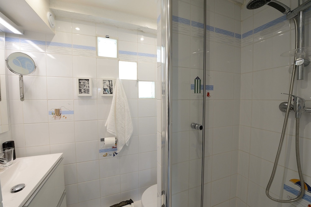The pictures online are not accurate. The bathroom is a death trap, shower area is a joke, you have to open the shower door to turn your body. Broken tiles, rust everywhere. Disgusting