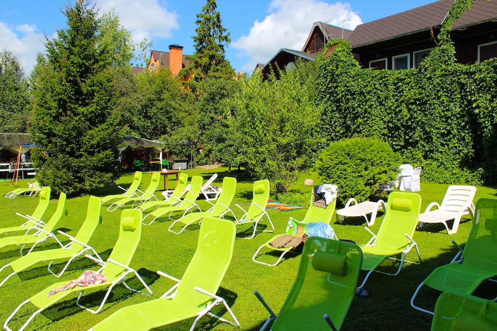 Excellent nice hotel. We were there for the World Cup football. The staff were excellent and helpful. Especially a lady who sat near the reception on her laptop who spoke very good English. She sorted out taxis and told us about trains to Moscow from the local station. Without her we would of been stugling to get about. Plenty to do in the garden with a nice little pool and bbq etc. Overall i we really enjoyed this hotel. Thanks to all the staff