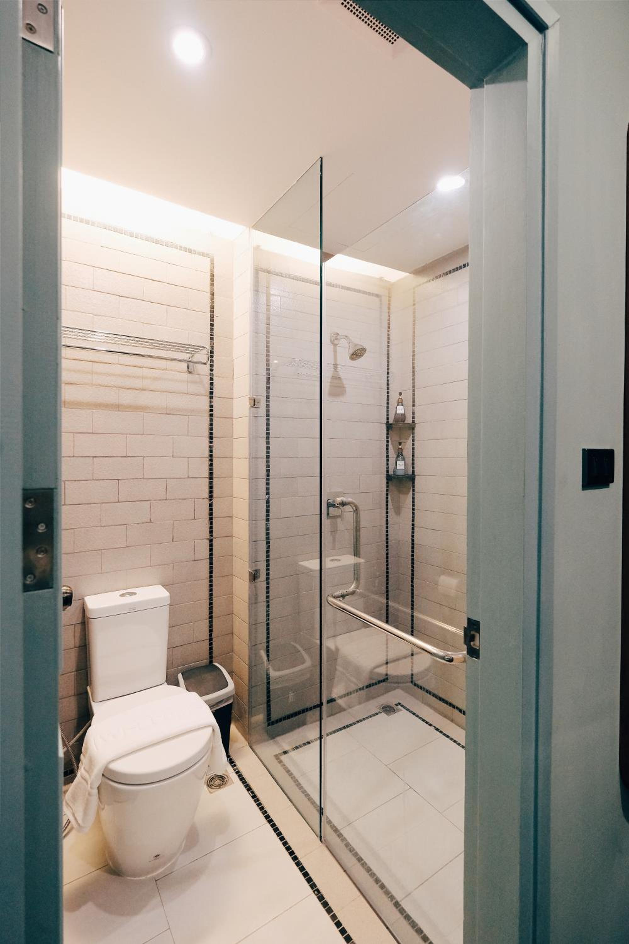The shower really cannot make it. Shower head is not good... Water comes out unevenly from the shower head that was fixed to the wall. The water temperature is uncontrollable. It goes from hot to cold to hot to cold... So it's really unenjoyable when it comes to shower time.