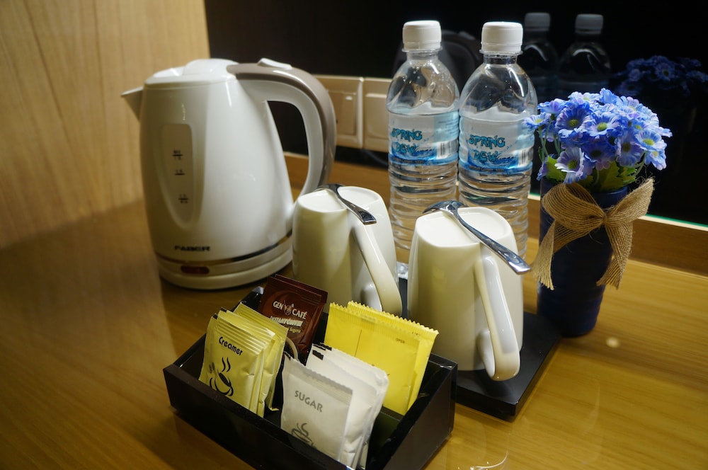 The room clearly needs maintenance and cleaning. They gave only two sachets of (2) sugar and creamer, and provide a price list for more. What is really unacceptable is the cups are dirty and stained brown.