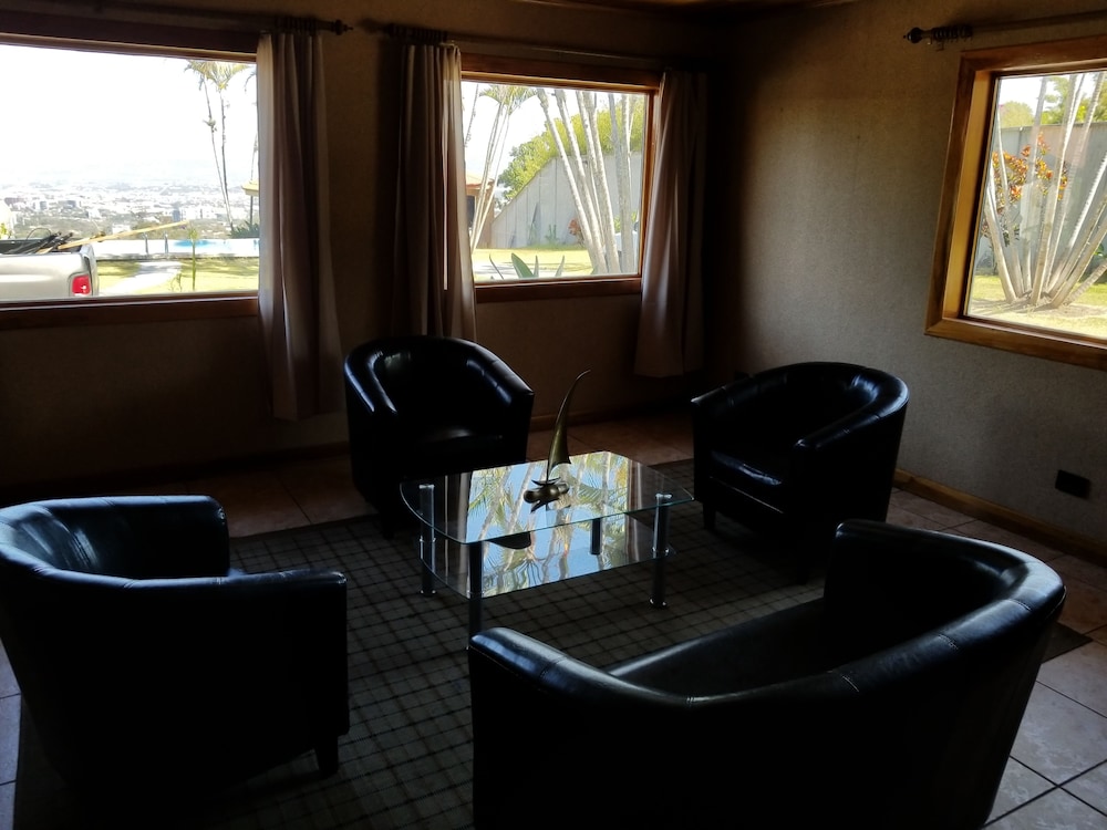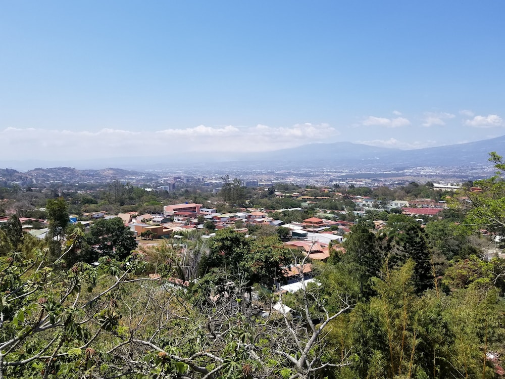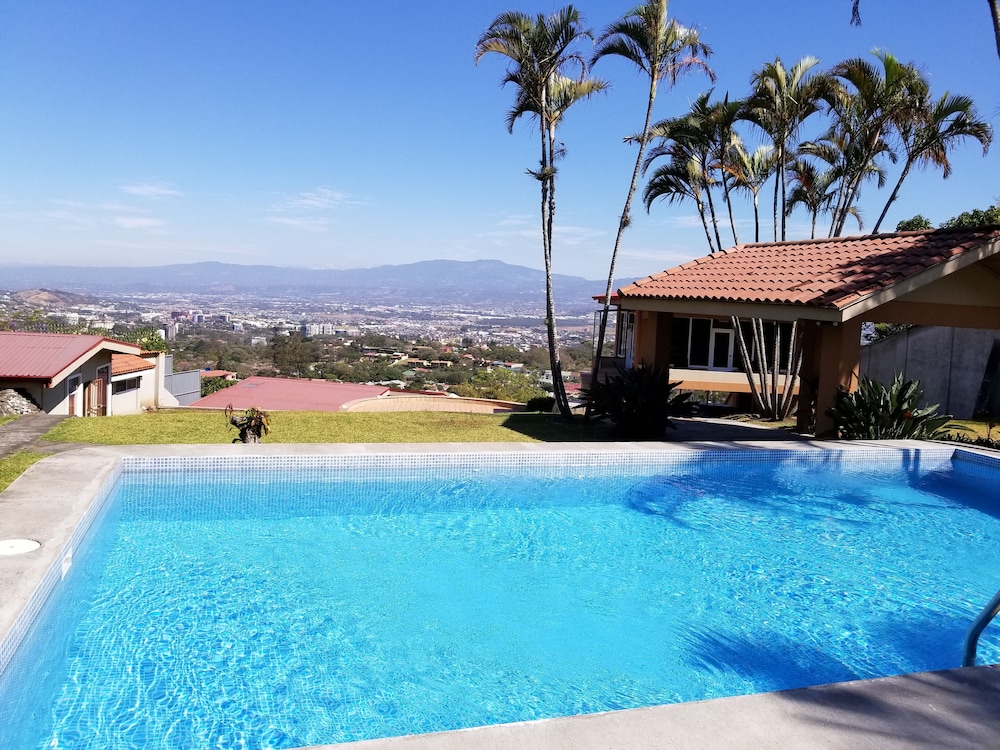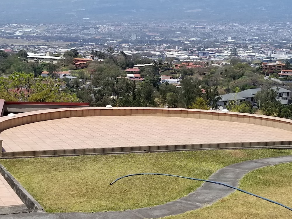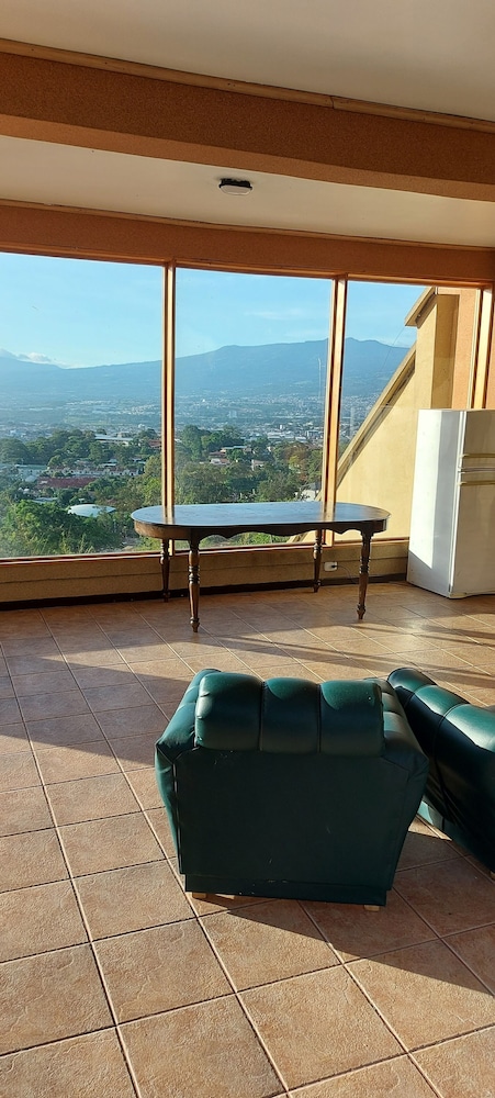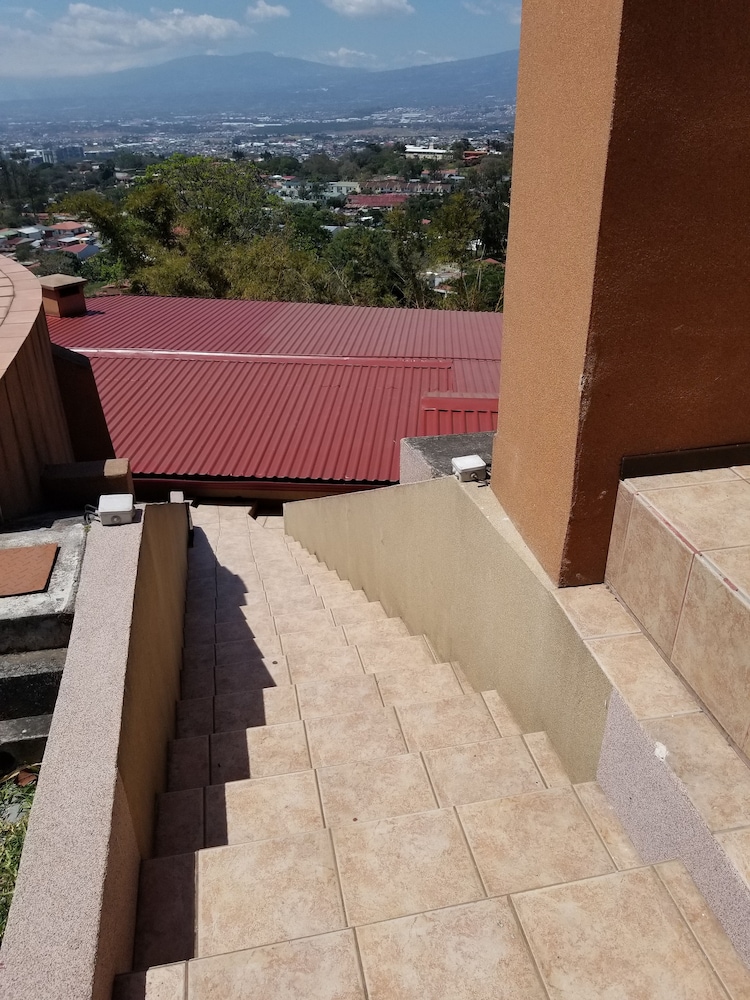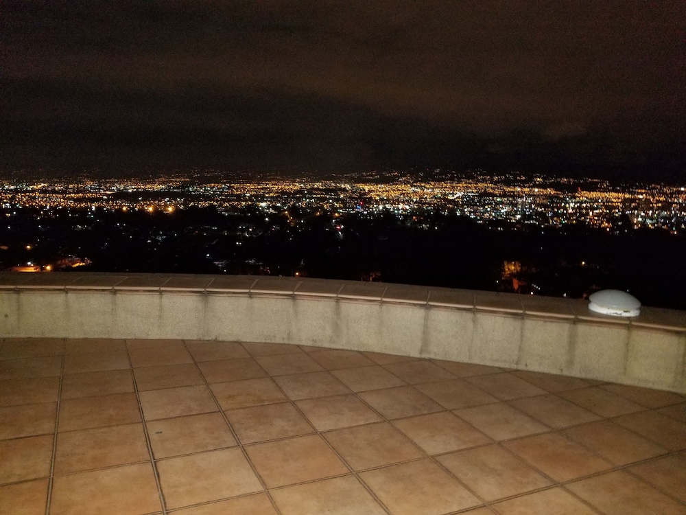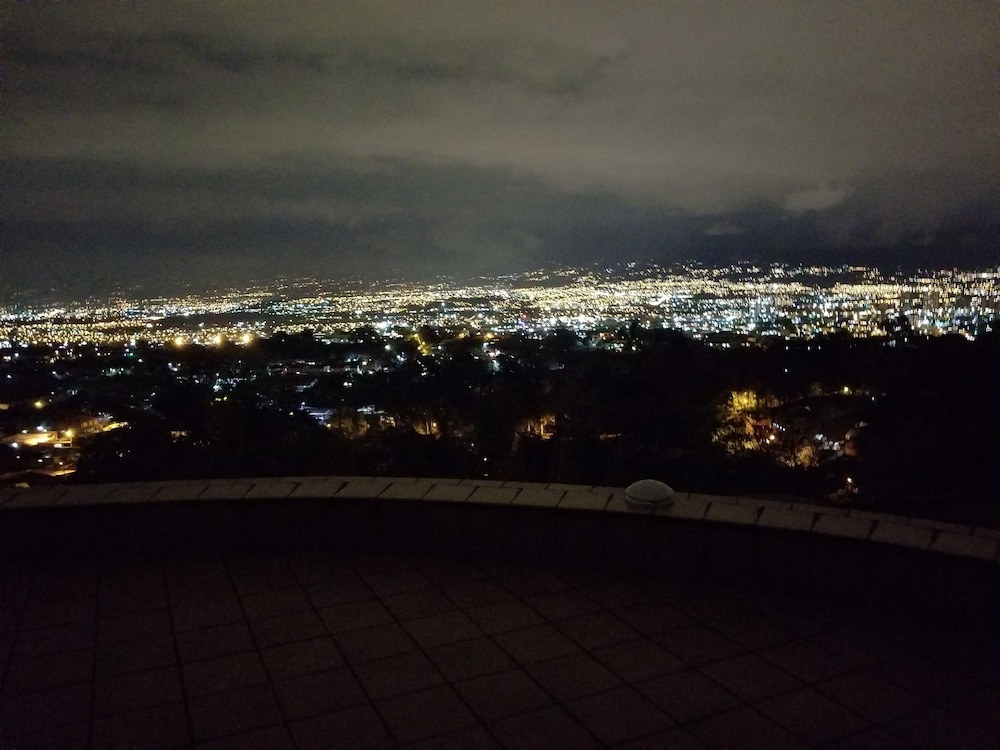 The only real positive about this place is the view of San Jose. But that view comes at the cost of being a good 10 miles away, up in the hills. To go into town requires a drive of at least 20 minutes. When my Uber dropped me off upon my arrival, the driver had to call to make sure we were at the correct address. There is no sign or indication that this is lodging, as it is behind a very tall wall and gate. The room I got was decent, but the bed was not comfortable and there was NO HOT WATER. The gate in the wall opened right outside the bedroom window, so it was quite noisy until very late. There is no "front desk", only a phone number to call, if you have phone access. No English is spoken, not a problem for me, but possibly for you. The place has a common kitchen, but no coffee available unless you bring your own supplies to make some. I stayed only one night even though I had pre-paid for five nights. I've been trying to get a partial refund or credit from Expedia, but I'm not holding my breath. The last straw was taking a shower in the morning without hot water. Good luck if you choose this place!