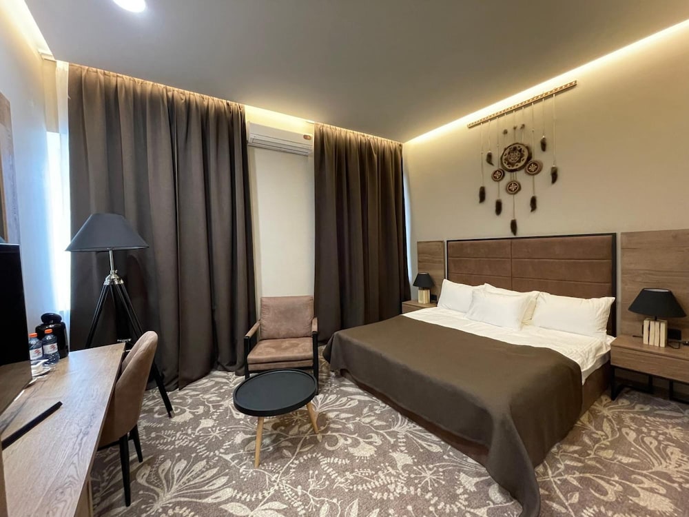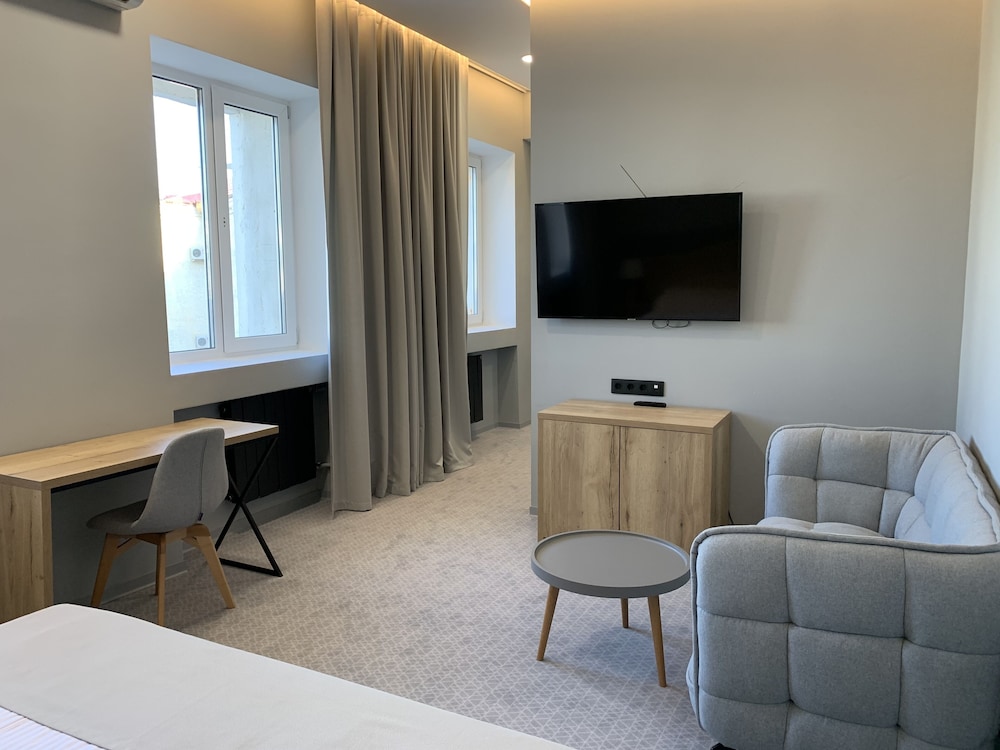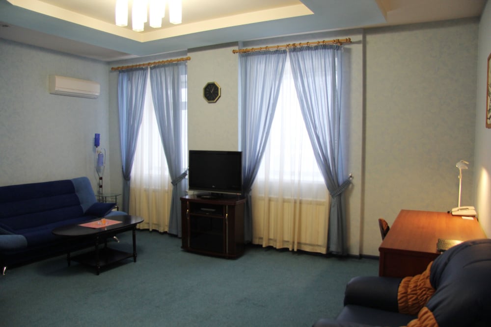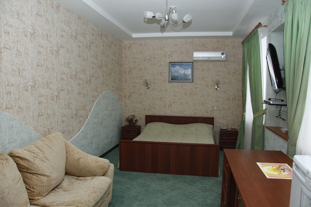 this is not a hotel, this is rent-a-dingy-room place. beds are horrible, bathroom doesn't have basic hooks, toiletries are a joke, and so is breakfast, which serves non-instant coffee only by an insistent request. some staff is friendly and helpful. location is very good, on an ordzhenekidze square, but all in all this hotel is a dump.