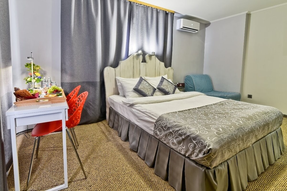 The room was very comfortable, and the staff were extremely friendly and helpful. 24 hour free coffee and tea was nice, and breakfasts were excellent. There are very useful trams and buses that stop just outside the hotel, but you can probably walk to most places you want to see from there. The hotel was one of the best things we experienced in Omsk. Highly recommended!!!