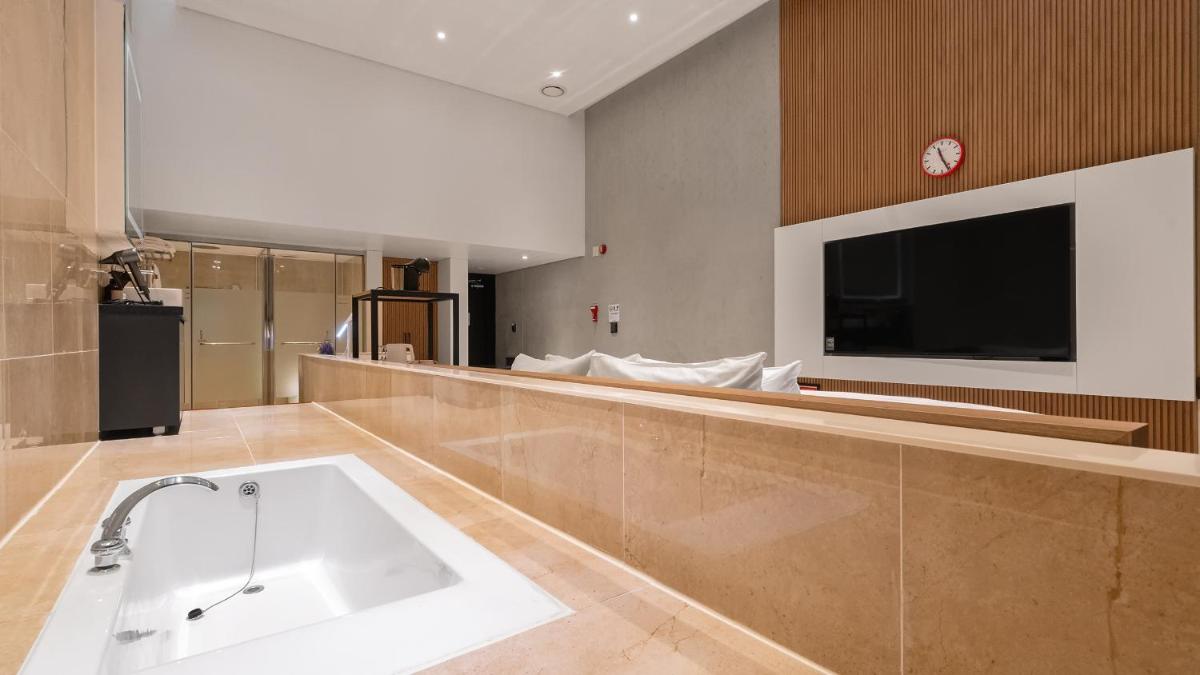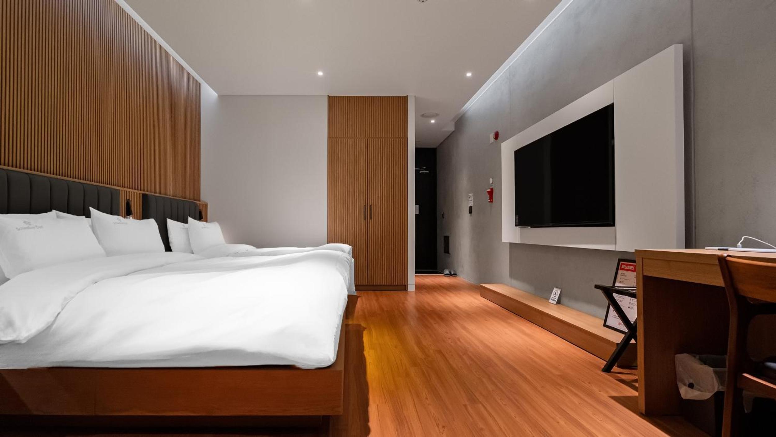 숙소가 전반적으로 만족스럽습니다. 프런트 카운터도 친절하시고 객실내부도 청결하고 가구가 훼손된 곳 없고 TV도 큽니다. 화장실도 청결합니다. 다만, 프런트, 엘리베이터, 복도에서 방향제가 너무 쎄서 머리가 아픕니다.