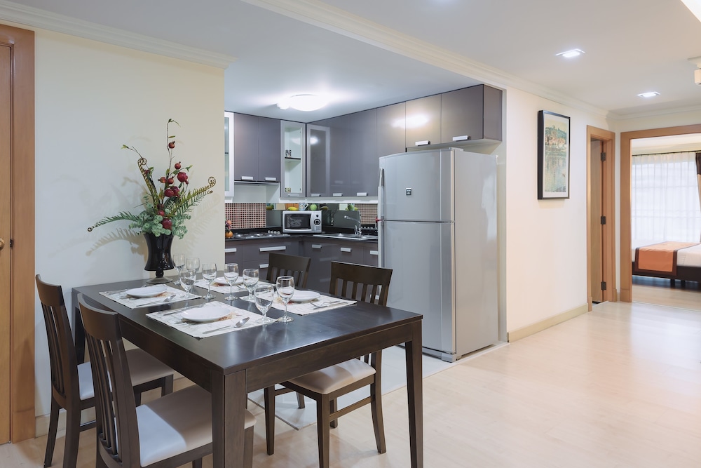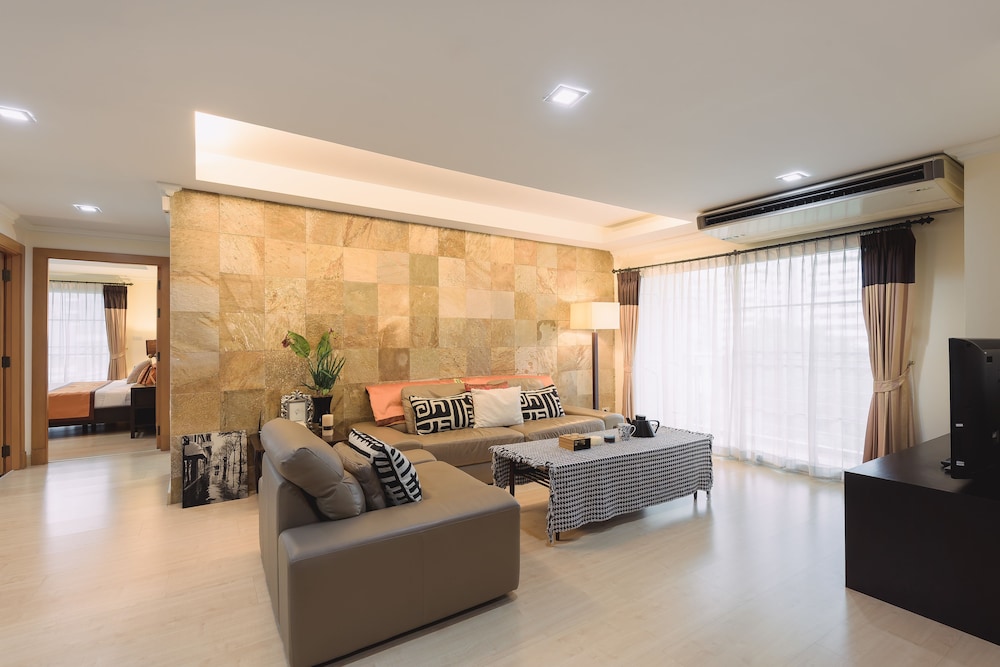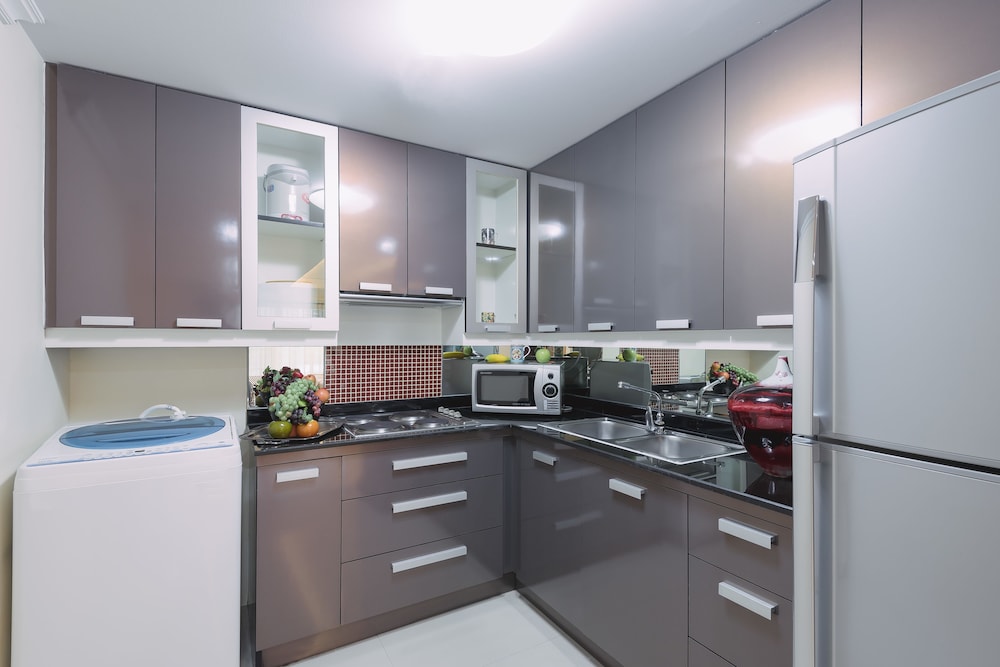Great apartment , spacious and comfortable with kitchen , washing machine and crockery etc !!! Fantastic location , just a 10 min walk through the back of the hotel to the EmQuartier shopping mall . Lots of places to eat near by and seven 11 close by too if you need supplies ... Also the sky train is a close walk to go to Siam etc to shop !!! Staff were lovely and helpful and very friendly . Lovely breakfast too ... Overall fantastic value for money with great location ... Thank you to the staff !!!