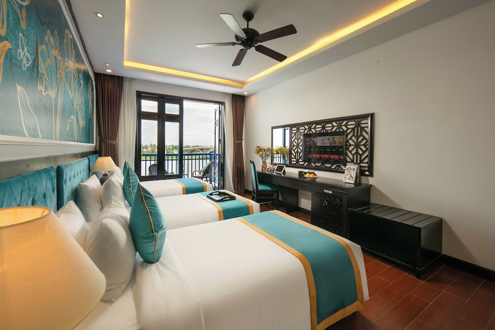 Wonderful riverside property with outstanding service! A team of service-oriented people is ready to assist with all aspects including transport to and from the hotel. There is a free boat to the night market each evening. Free bicycles for day use. A short ride to the center of town allows you to stay in peace and quiet while still enjoying all that Hoi An has to offer. Wonderful bedding and comfortable rooms with many amenities. Courtyard pool and delicious and varied breakfast buffet. I’d come back in a heartbeat!!