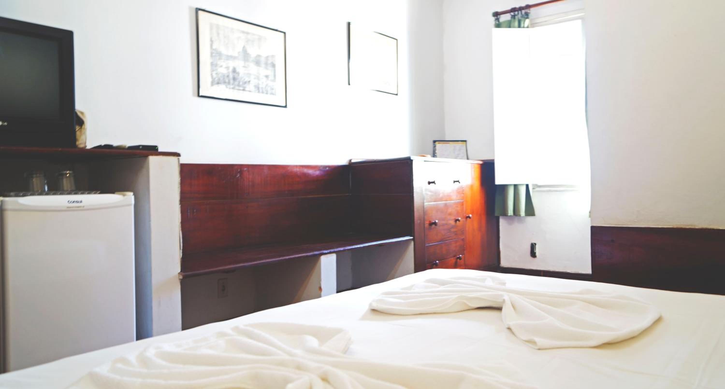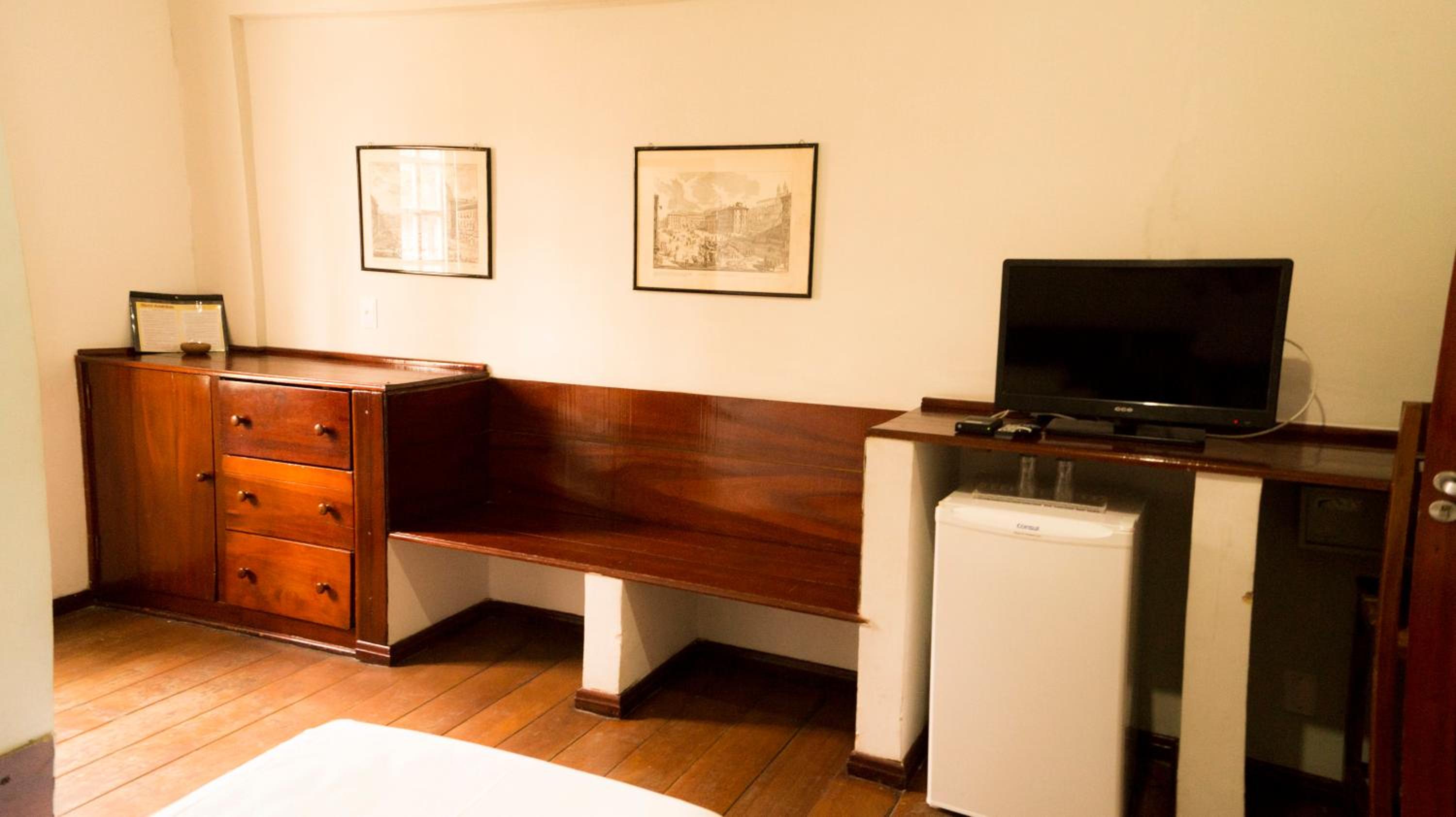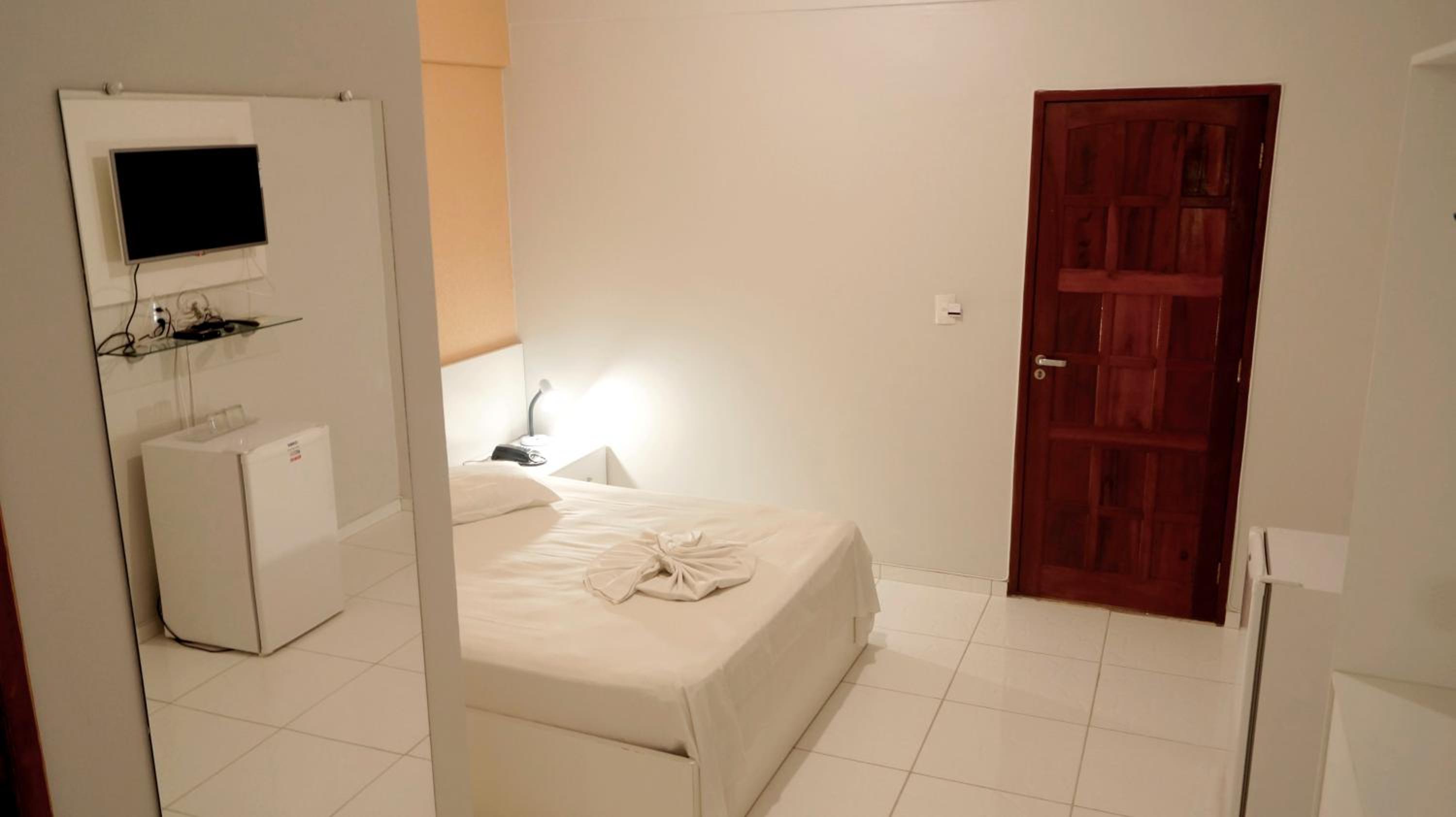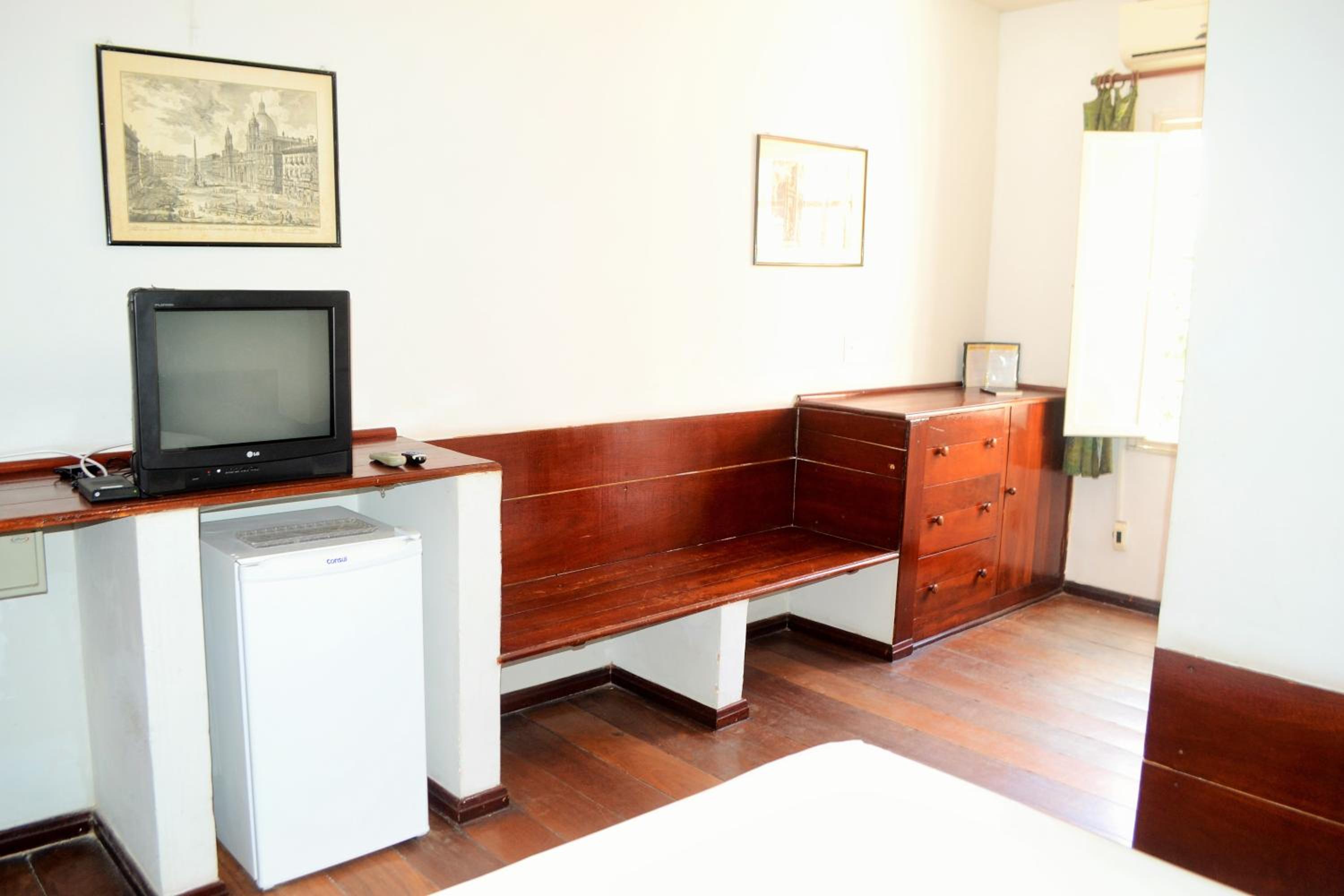 O atendimento da equipe é bom e a localização do hotel é ótima, da pra ir a pé para vários pontos turísticos. O frigobar do quarto funciona bem...não há nada nele, você tem que levar, mas ele gela bem! A cama é maravilhosa e o ar condicionado do quarto funcionava bem!