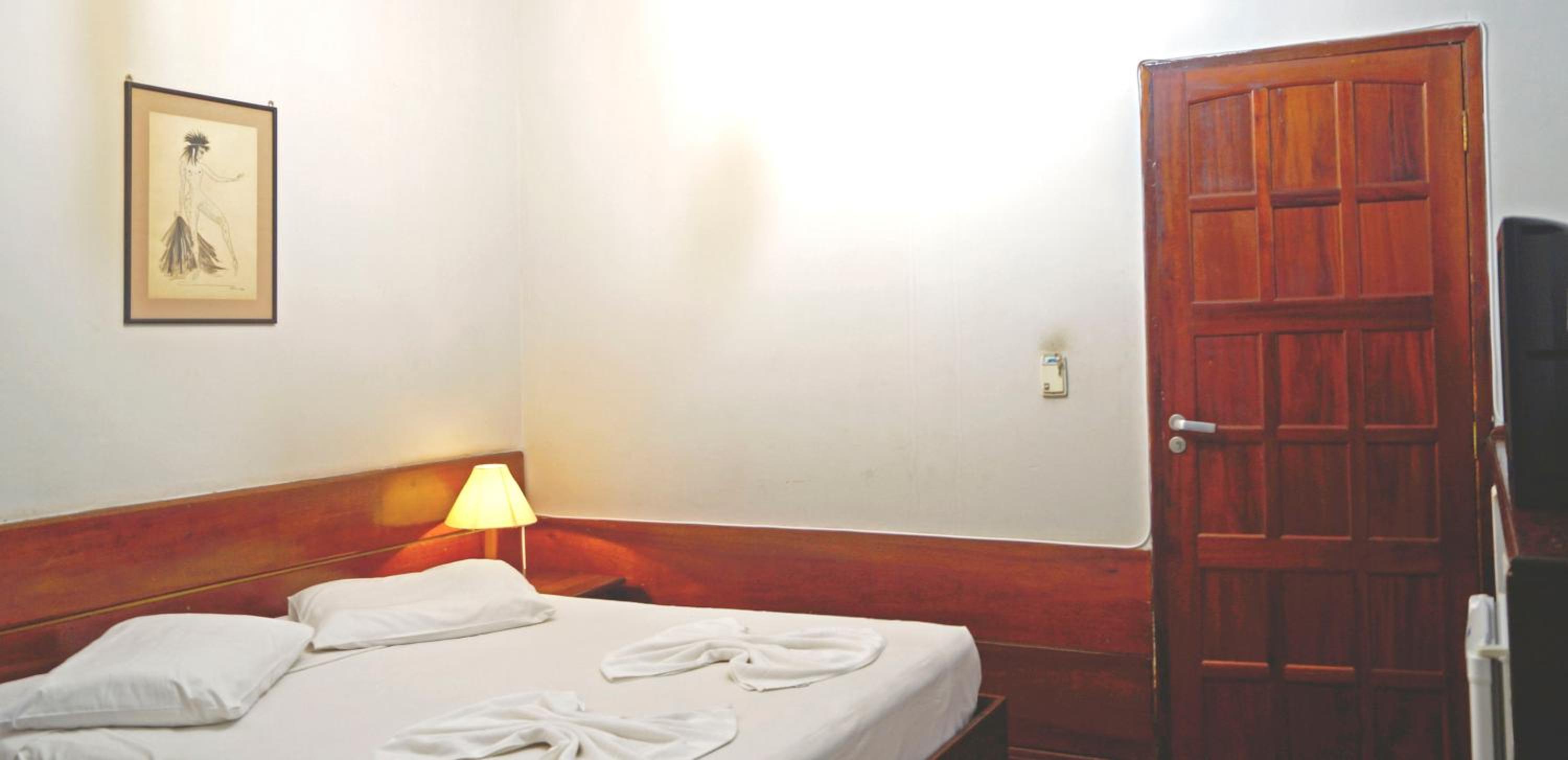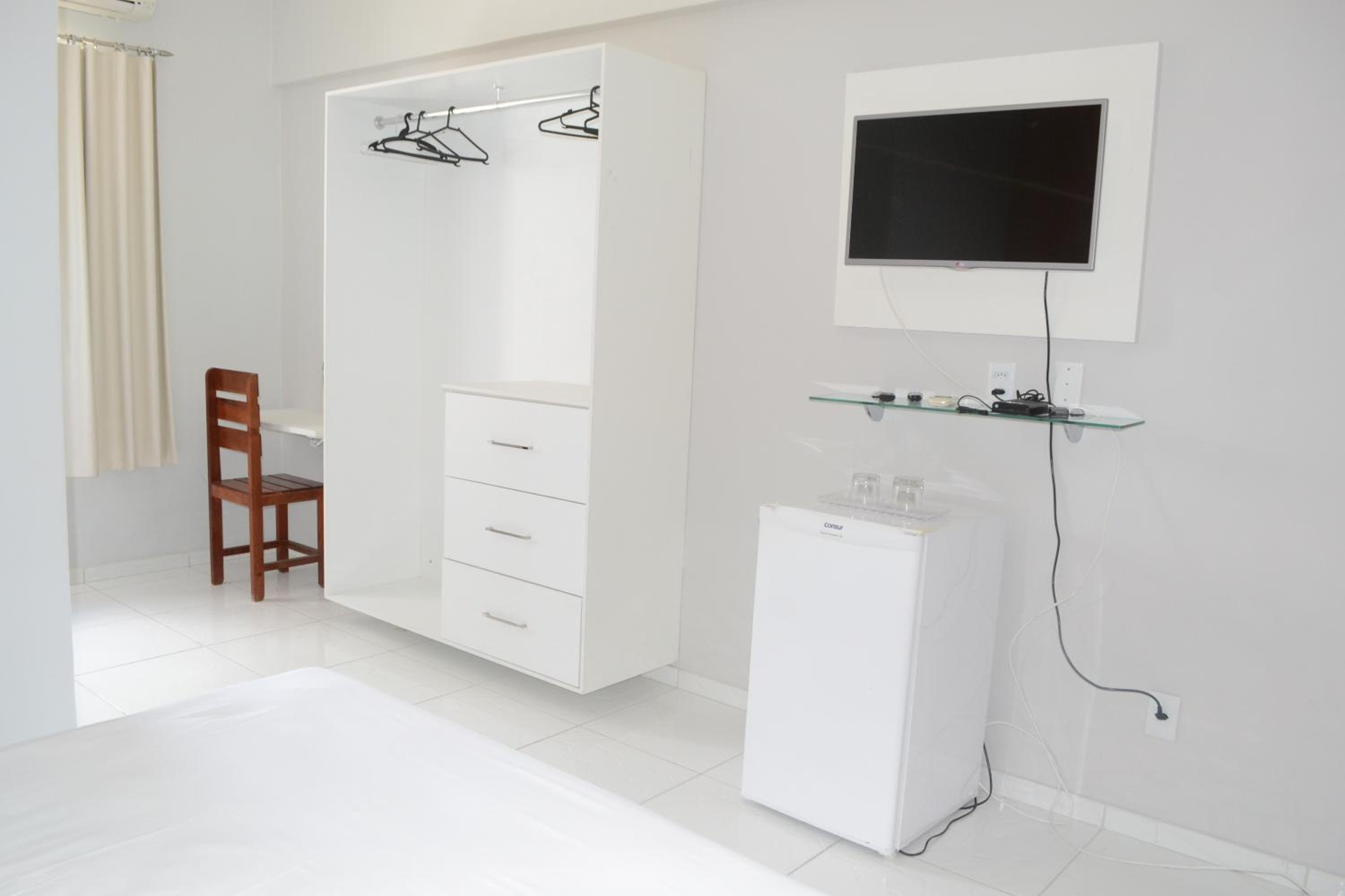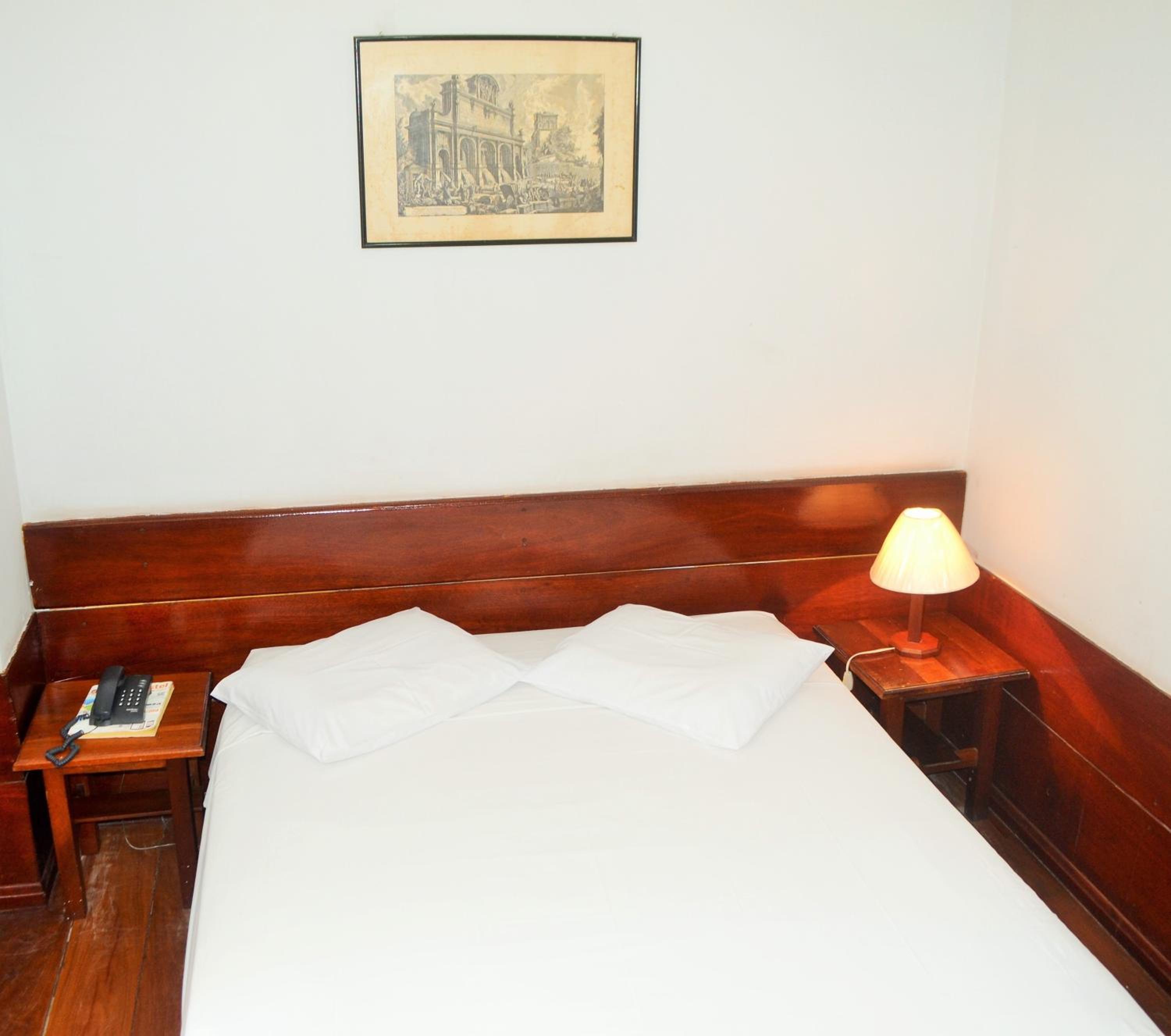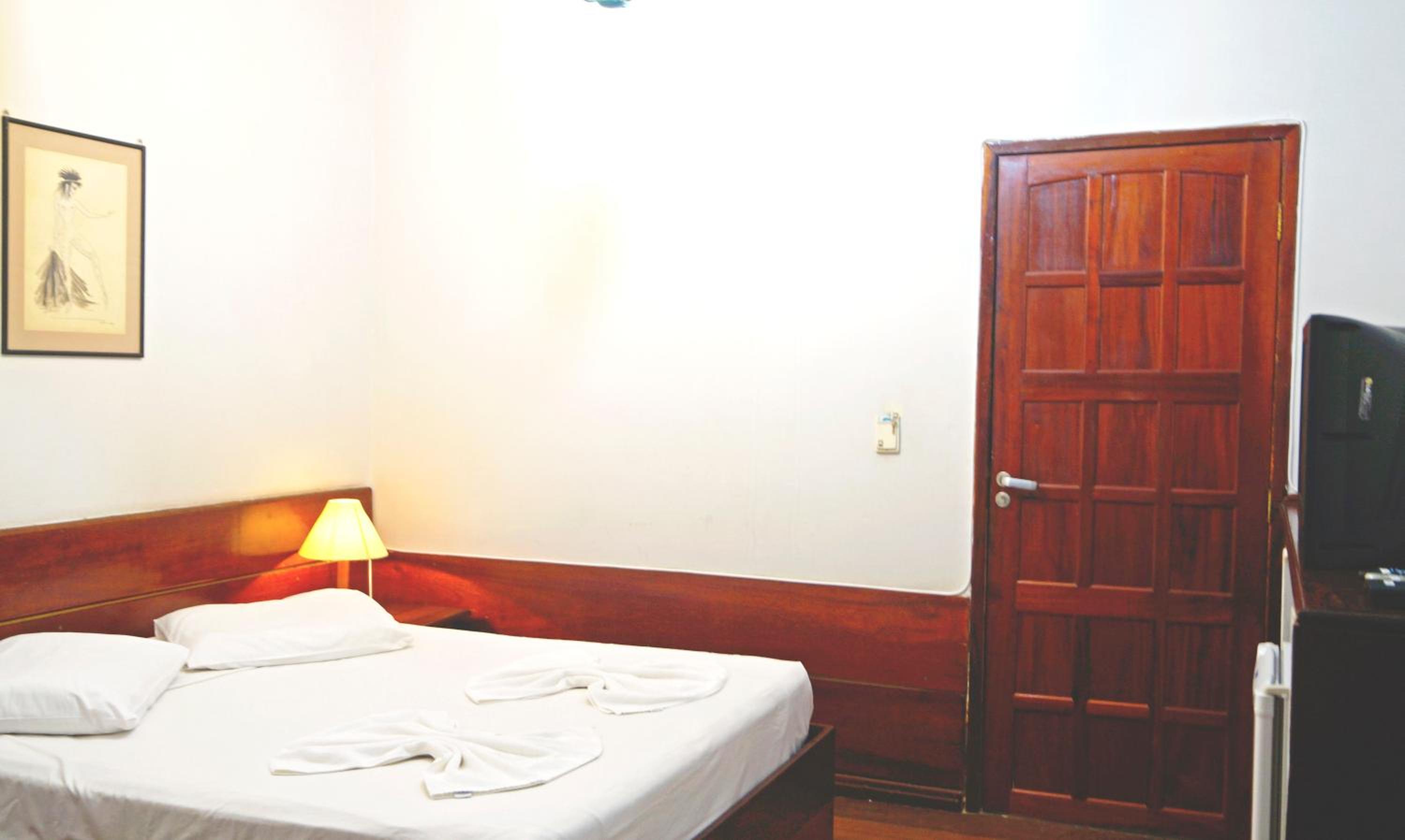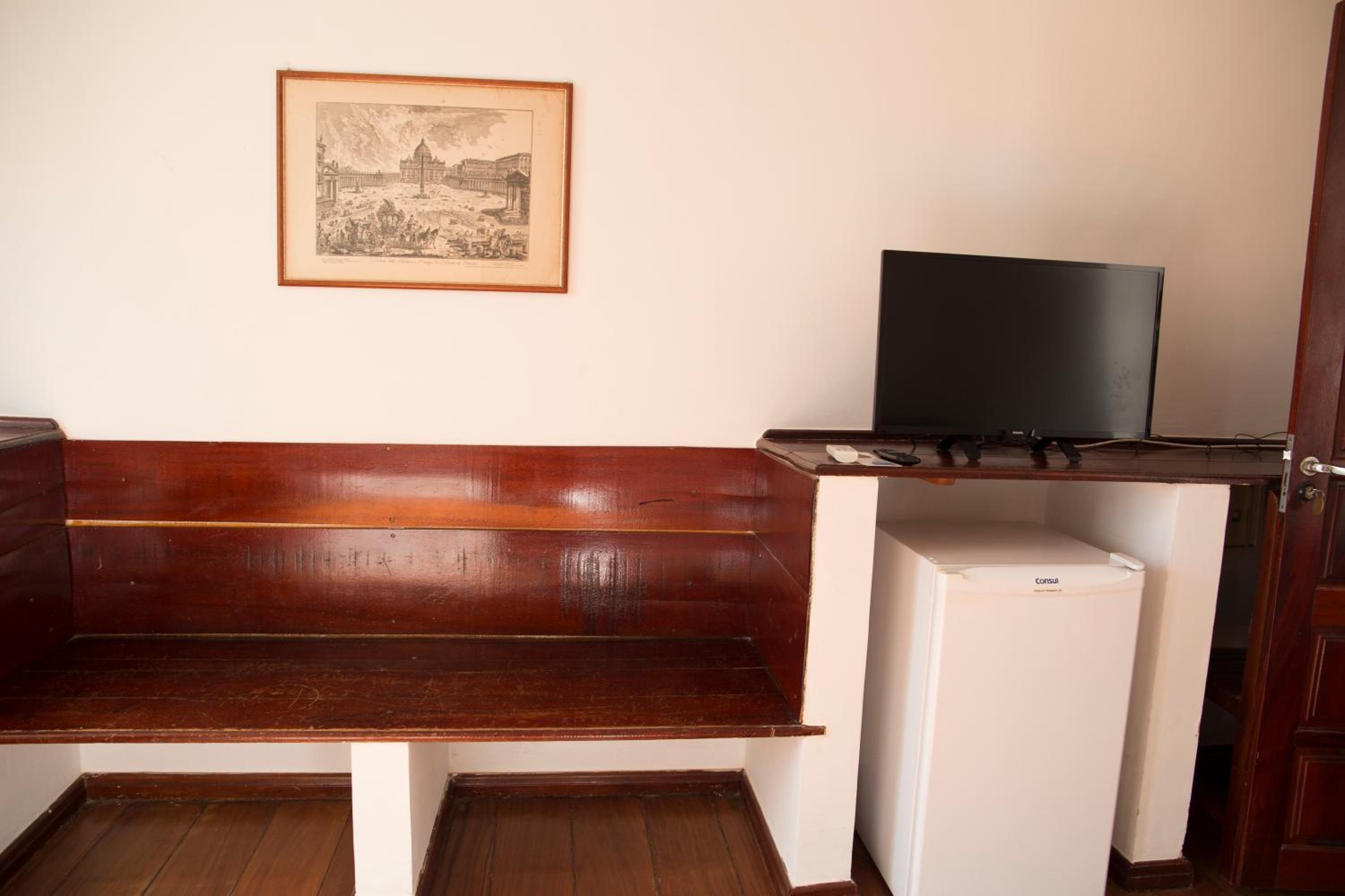 O atendimento da equipe é bom e a localização do hotel é ótima, da pra ir a pé para vários pontos turísticos. O frigobar do quarto funciona bem...não há nada nele, você tem que levar, mas ele gela bem! A cama é maravilhosa e o ar condicionado do quarto funcionava bem!