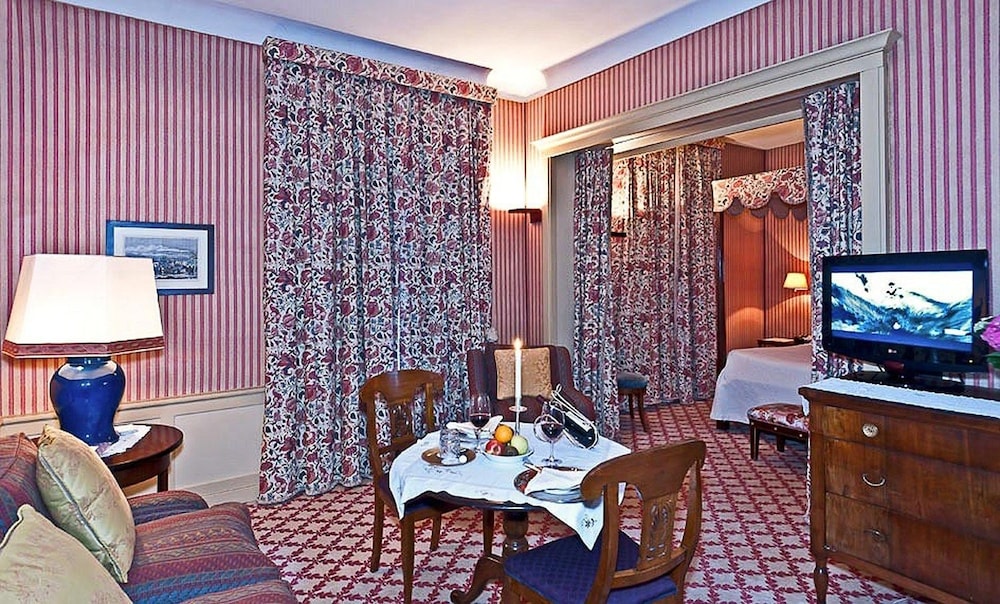 Veel traditie in stijlvol hotel. Hoogpolig tapijt en bont behang. Soms wat oud. Maar zeer sfeervol. Binnen paar kilometer sta je in het geweldige Lucca.