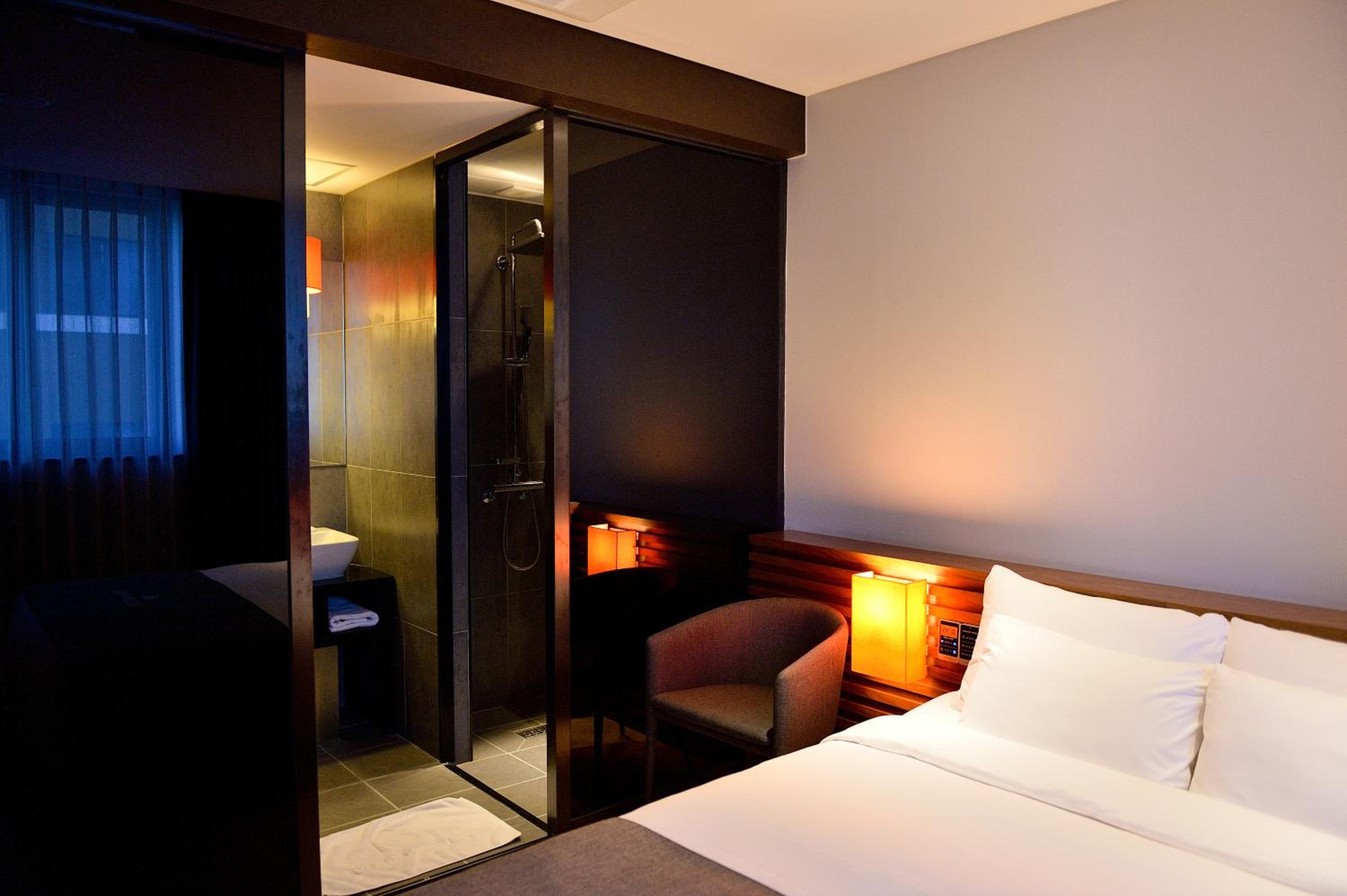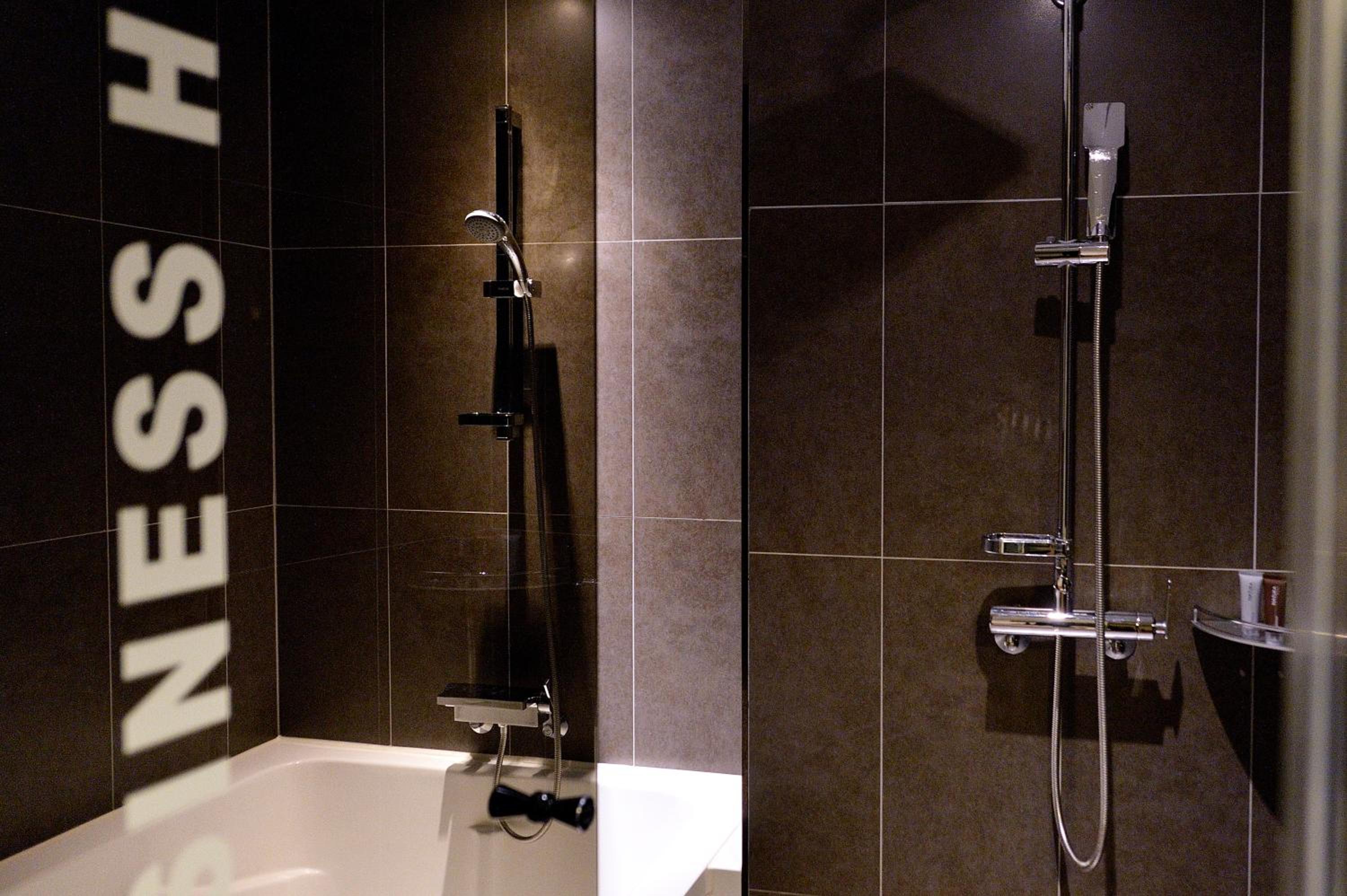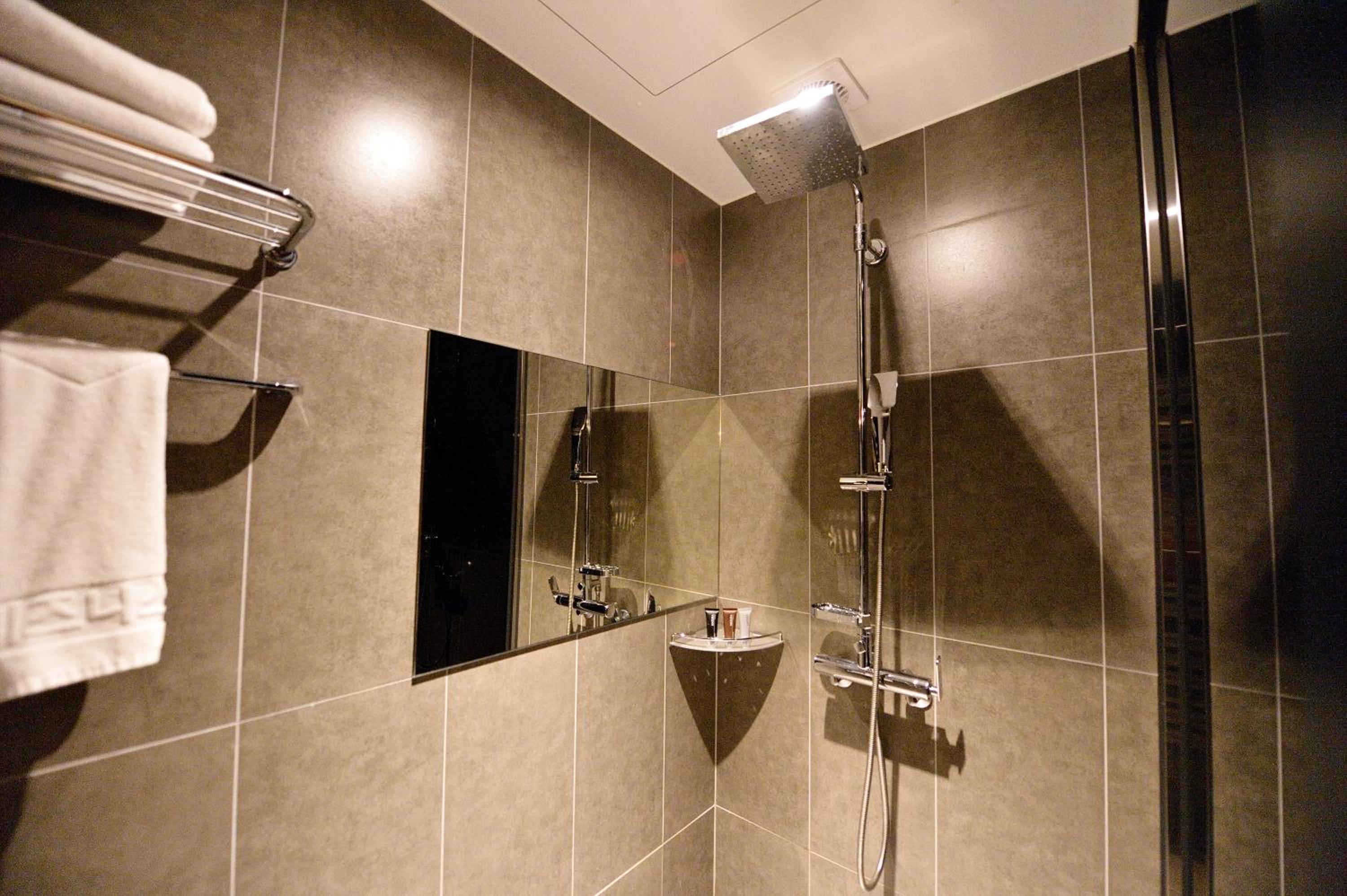 Chambre très spacieuse, avec une ambiance tamisée très reposante. Le lit est confortable, la douche est grande et est séparée du coin lavabo, ce qui évite de tout tremper.