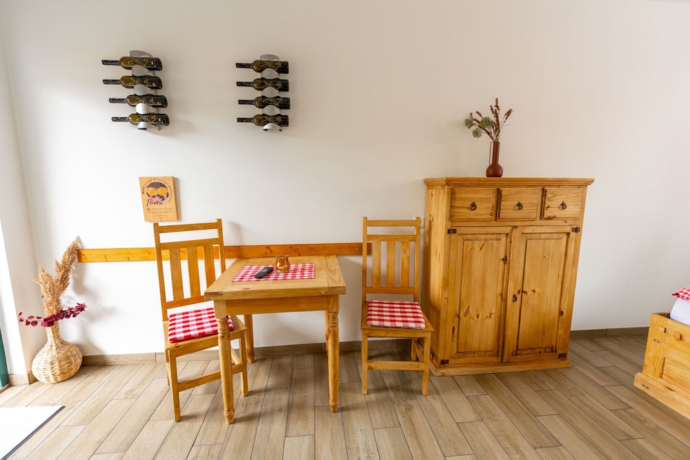 Velmi hezký a nápaditý penzionek, který je umístěn ve vestavbě staré zástavby rodinných domů a hospodářských budov. Pokoje jsou renovované a velmi čisté, trochu menší, ale na jednu dvě noci zcela dostačující. Rodinný charakter ubytování i obsluhy, kdy všem přístupná jídelna s kuchyňkou nabízejí možnost připravit si vlastní jídlo, ochutnat místní víno (za poplatek a velmi dobré) nebo se občerstvit vodou, džusem, kávou, čajem. Wi-Fi zdarma pro hosty, snídaně dobrá, ale k dokonalosti chybí vejce v jakékoliv úpravě.