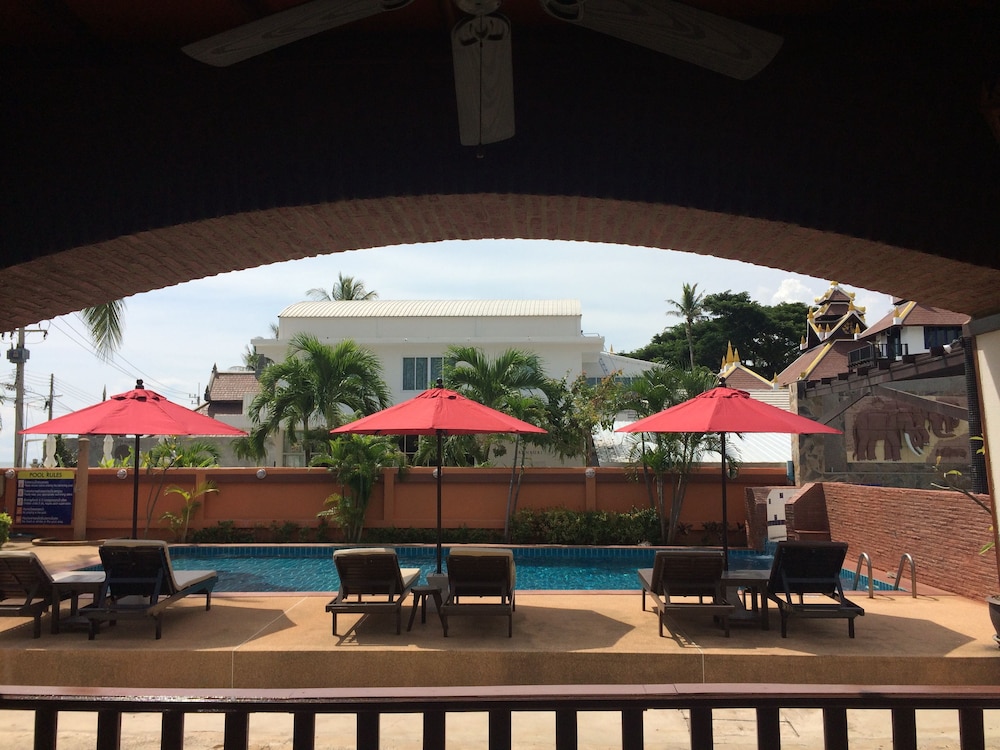 Décor is brick and wood panelling. Room was spotless and a decent size. Swim safely in the sea directly over the road, or lounge in the chlorine free pool. Bar/lounge area attached, and a nice covered area for very good (western or Thai) breakfast.