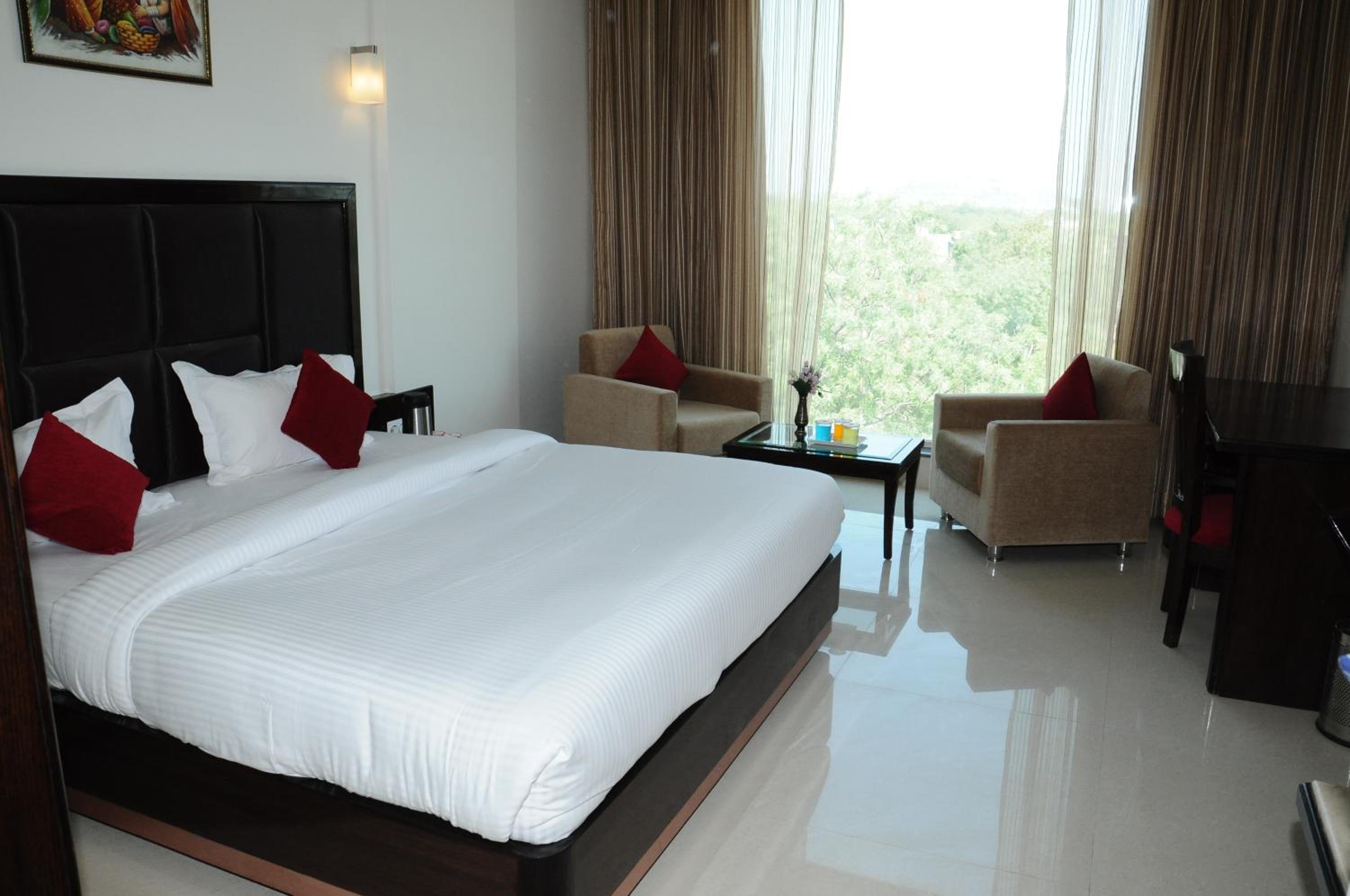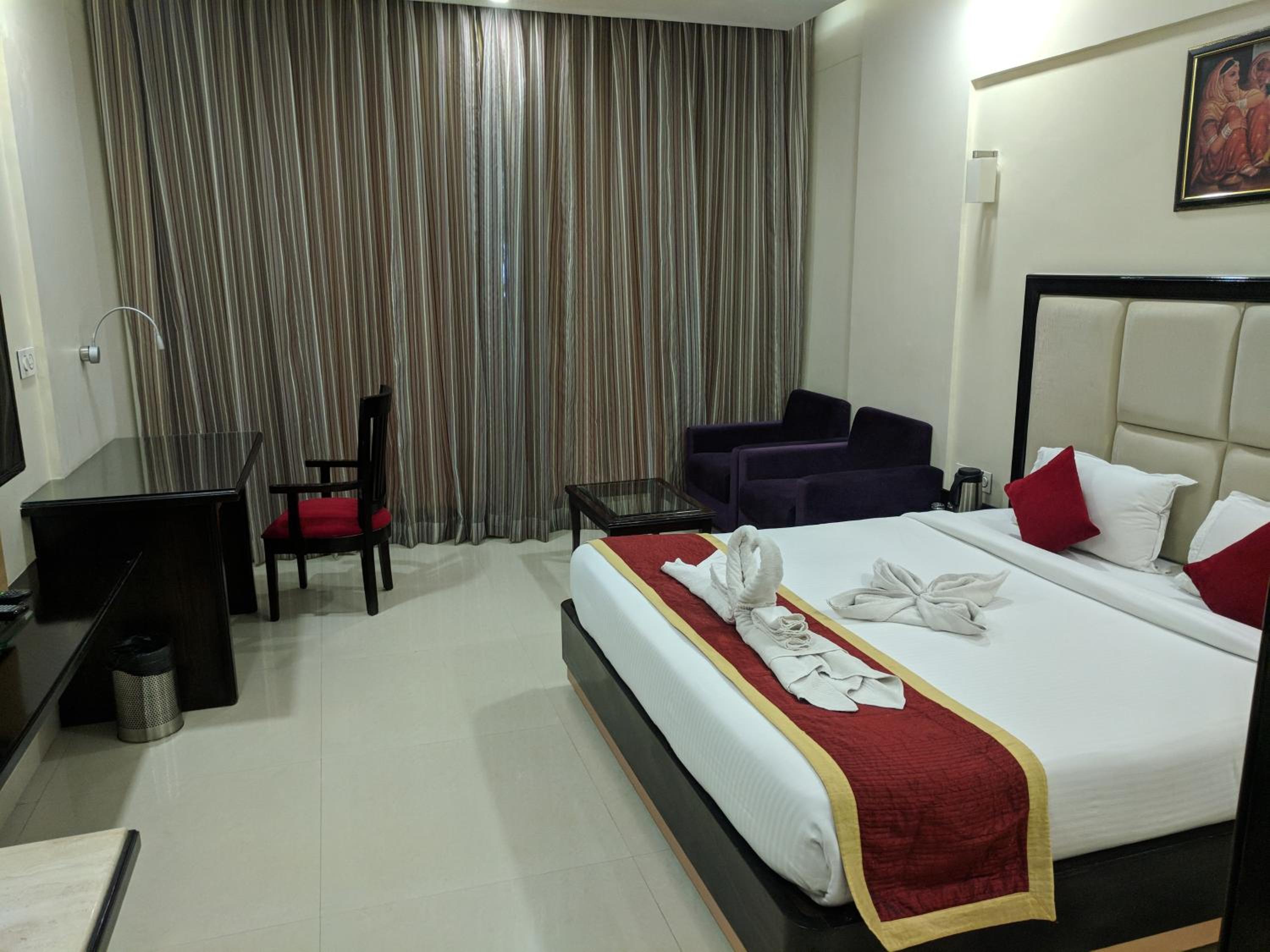 Chandra Imperial in Jodhpur offers a luxurious stay with well-equipped rooms featuring flat screen TVs and private bathrooms. Some rooms even have a cozy seating area for relaxation.