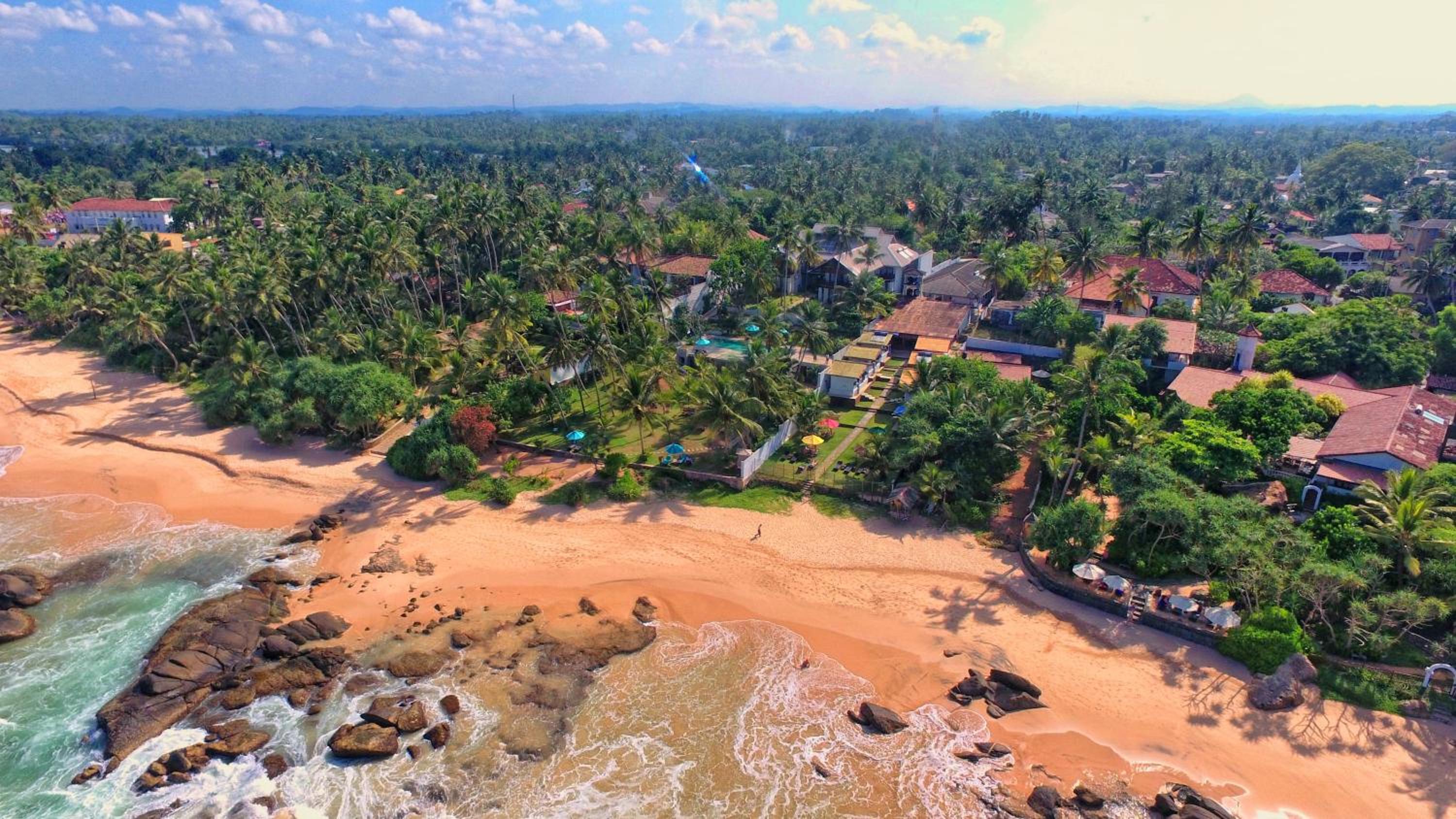 Die Lage direkt an einem der schönsten Strände ist unschlagbar. Es sind nur wenige Leute am Strand, gute Schwimmer können sich bei gelber Flagge zum Baden reintrauen, Kinder eher nicht. Klettert man links über die Felsen, sind einige Lokale dort am Nachbarstrand direkt im Sand. Ganz tolles und reichhaltiges Sri Lankisches Frühstück - aber man muss es vorbestellen. Unbedingt ein Zimmer mit Meerblick nehmen! Überall hört man das Meeresrauschen, der Pool ist richtig toll und man kann sich Essen und Getränke dorthin bestellen. Auch das Personal war unglaublich freundlich und hat sich genau gemerkt, was wir mögen (beispielsweise habe ich einmal nach einer frischen Kokosnuss gefragt, die sie nicht hatten, zwei Tage später wurde sie uns als Überraschung gebracht.) Auch wurde und bei kleineren Anfragen immer sofort geholfen, und unser Kind wurde sehr freundlich behandelt.