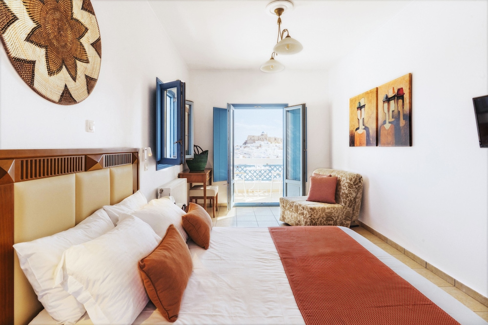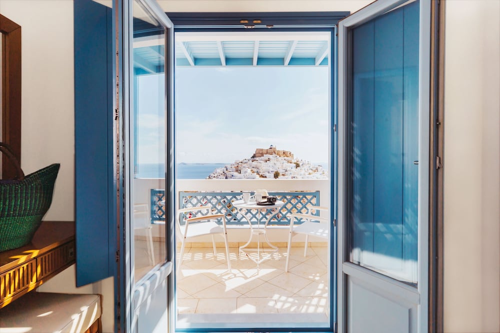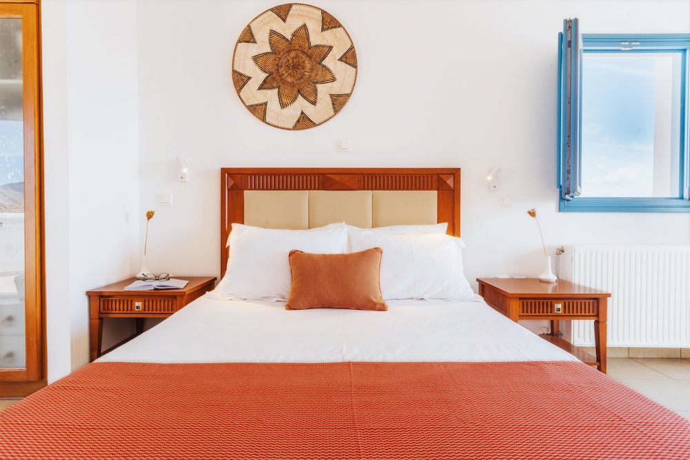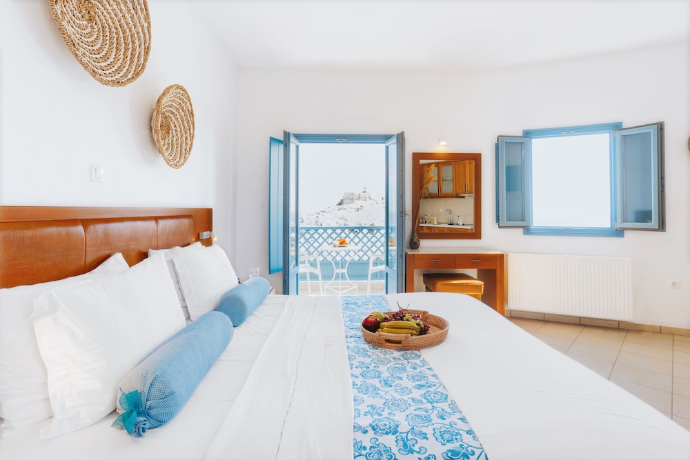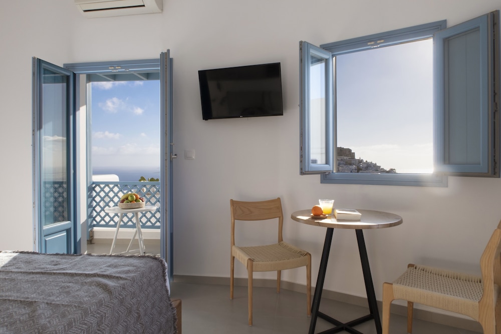 Exceptional accommodation with stunning views of the chora and the surrounding sea. Clean and nicely designed rooms, including a comfortable bed and a cozy balcony.