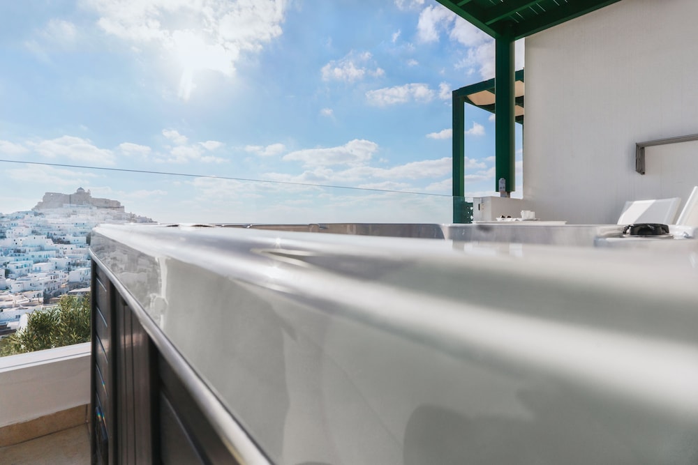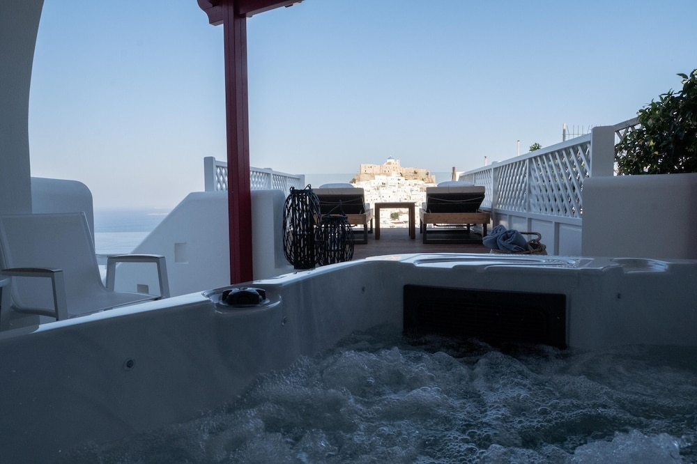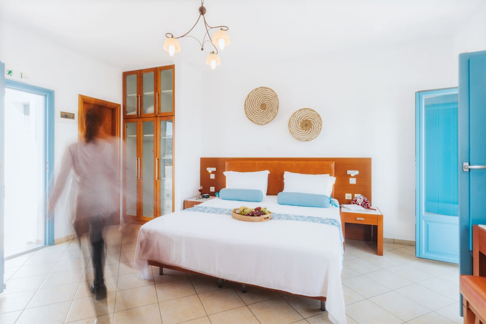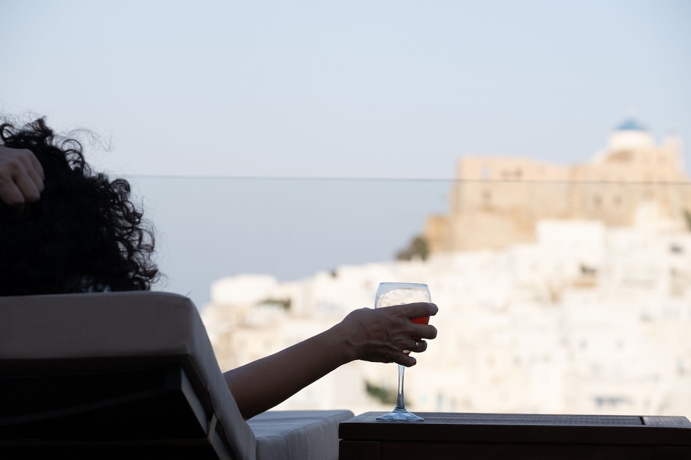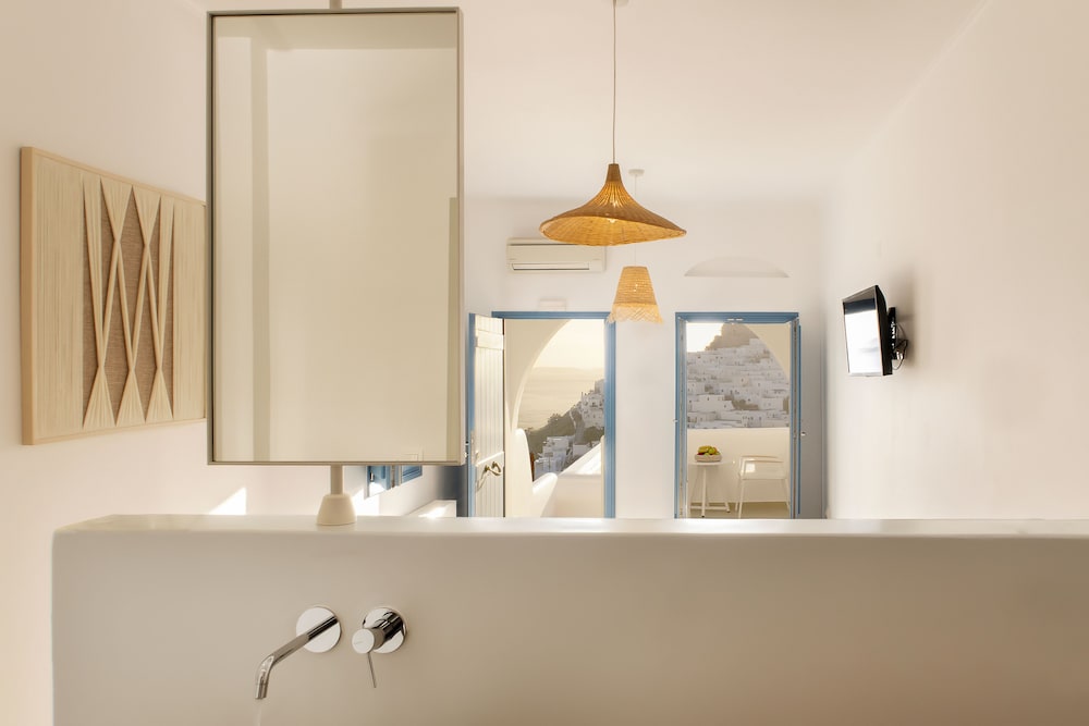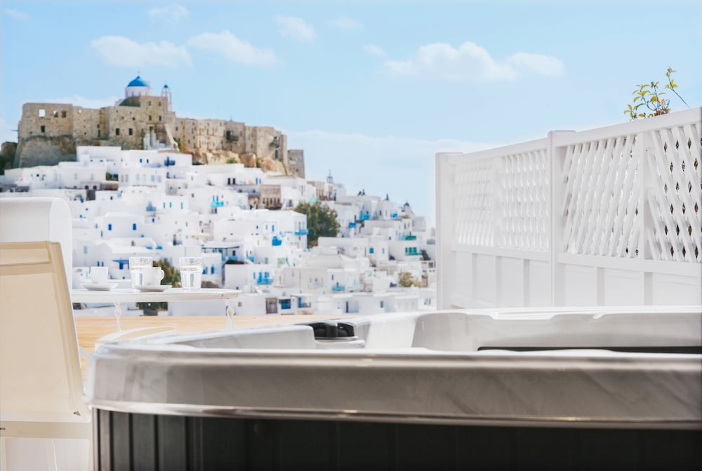 Exceptional accommodation with stunning views of the chora and the surrounding sea. Clean and nicely designed rooms, including a comfortable bed and a cozy balcony.
