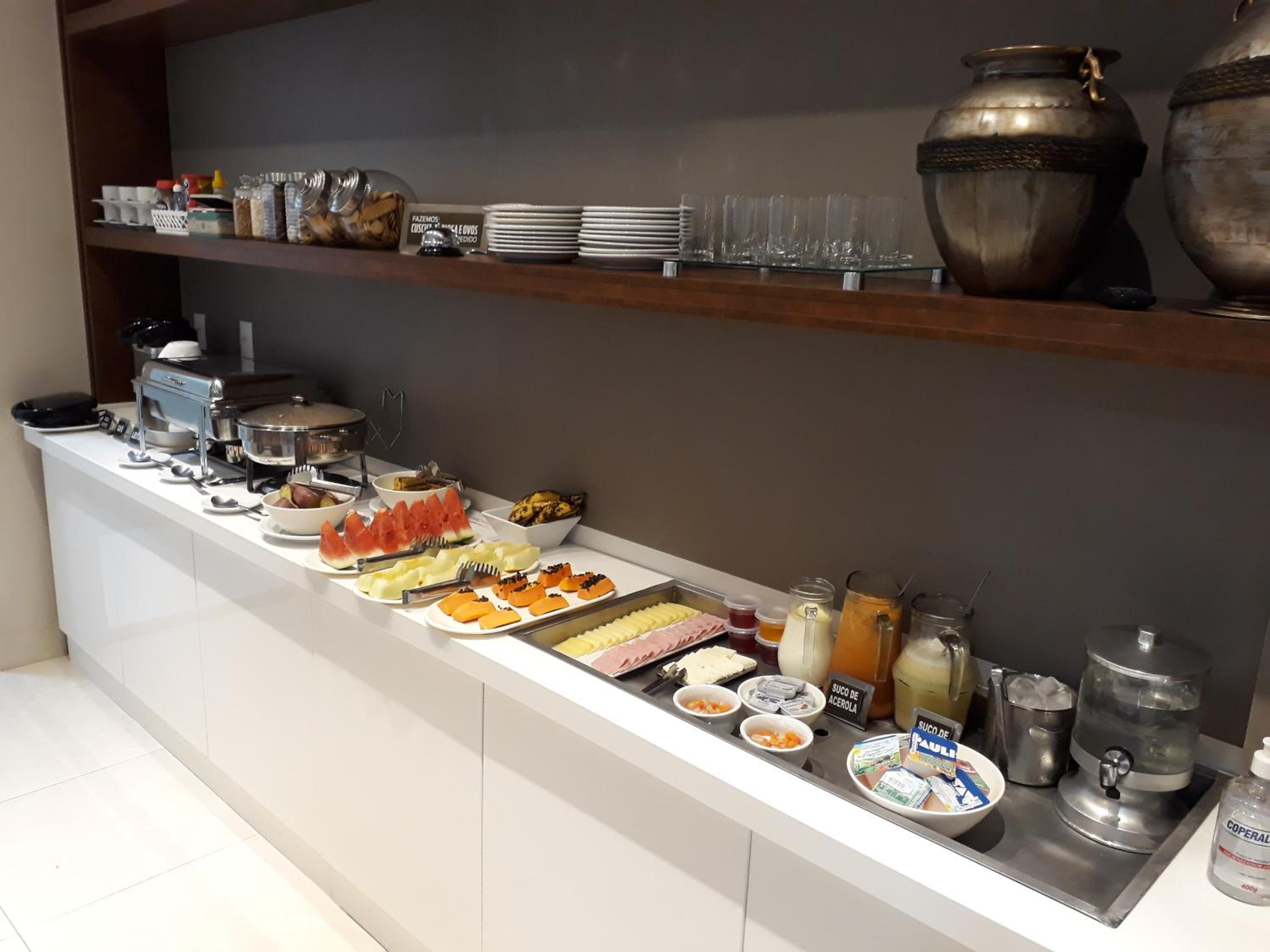 No café da manhã faltam produtos para pessoas com restrição ao leite animal e glúten. Poderia ter tapioca e cuscuz, leite vegetal.