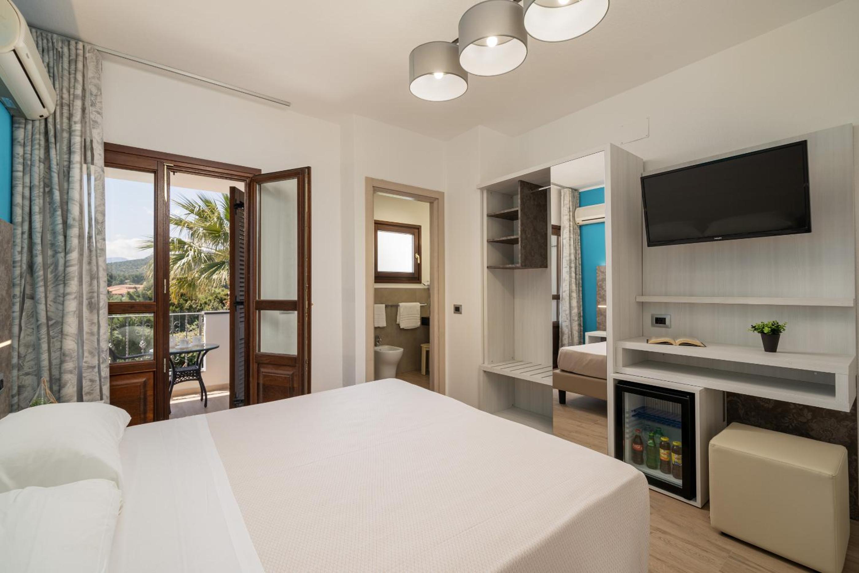 Hotel I Ginepri offers elegantly furnished rooms with a balcony, each adorned with a typical Mediterranean décor. Guests can unwind in style while enjoying modern amenities such as a flat-screen TV and air conditioning.