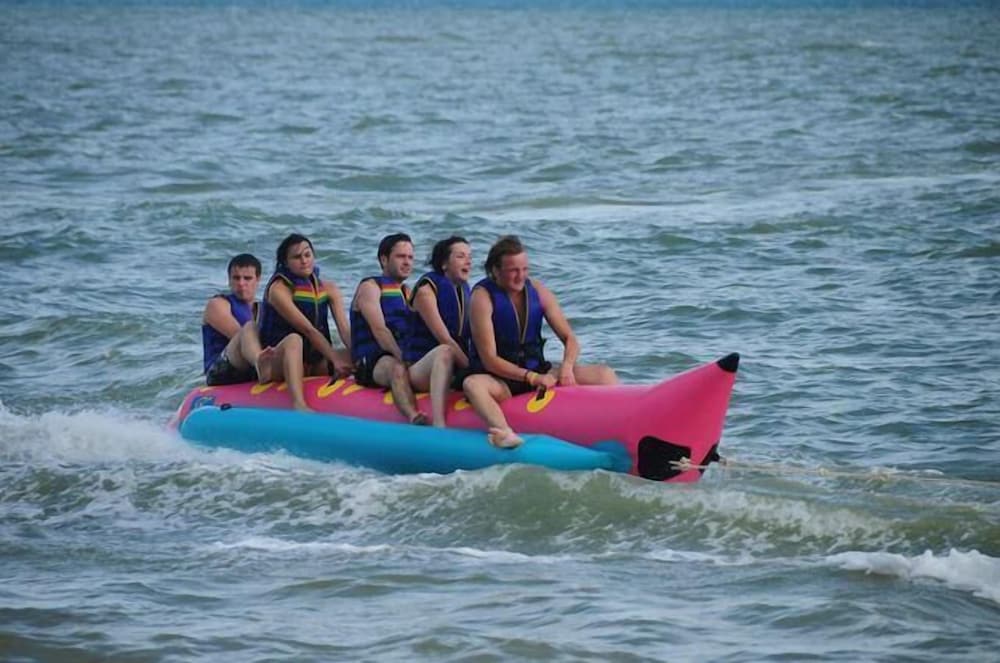 Helpful owner, friendly staff, beautiful establishment(especially the main building), best location in the area. Relatively clean beach.