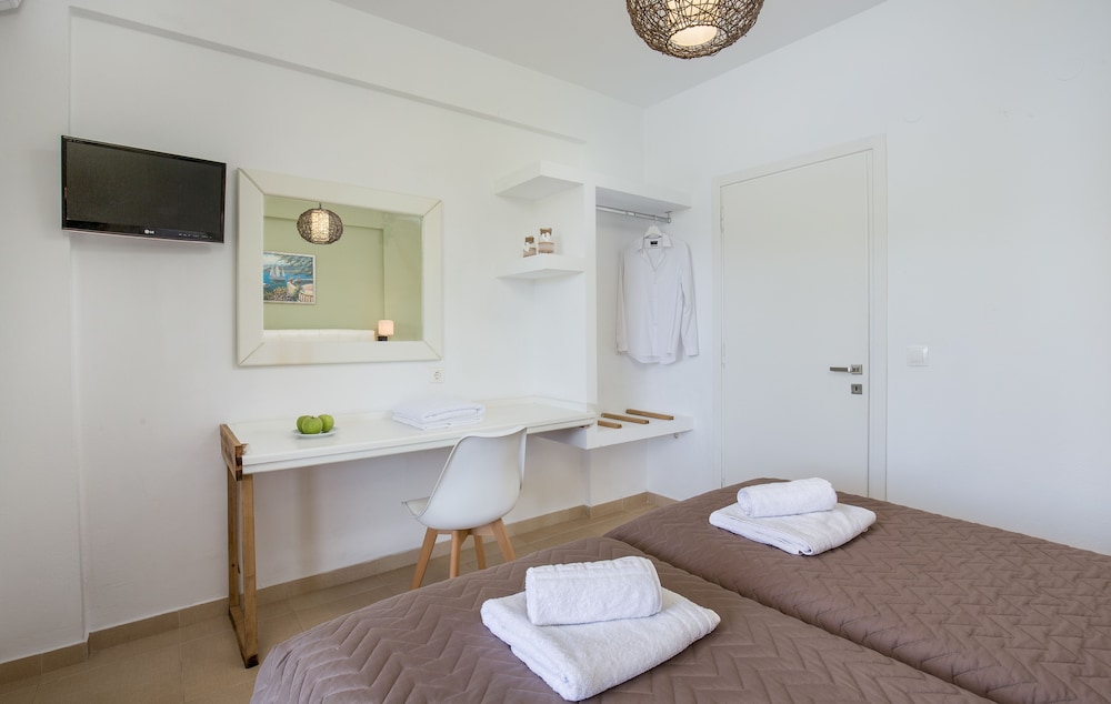 Lovely apartments and very well equipped. Great pool, plenty of sun beds, and fantastic restaurant. Location is perfect- opposite the sea and a short 20 minute walk into the busier part of the resort. The host and all the staff are really friendly and helpful.