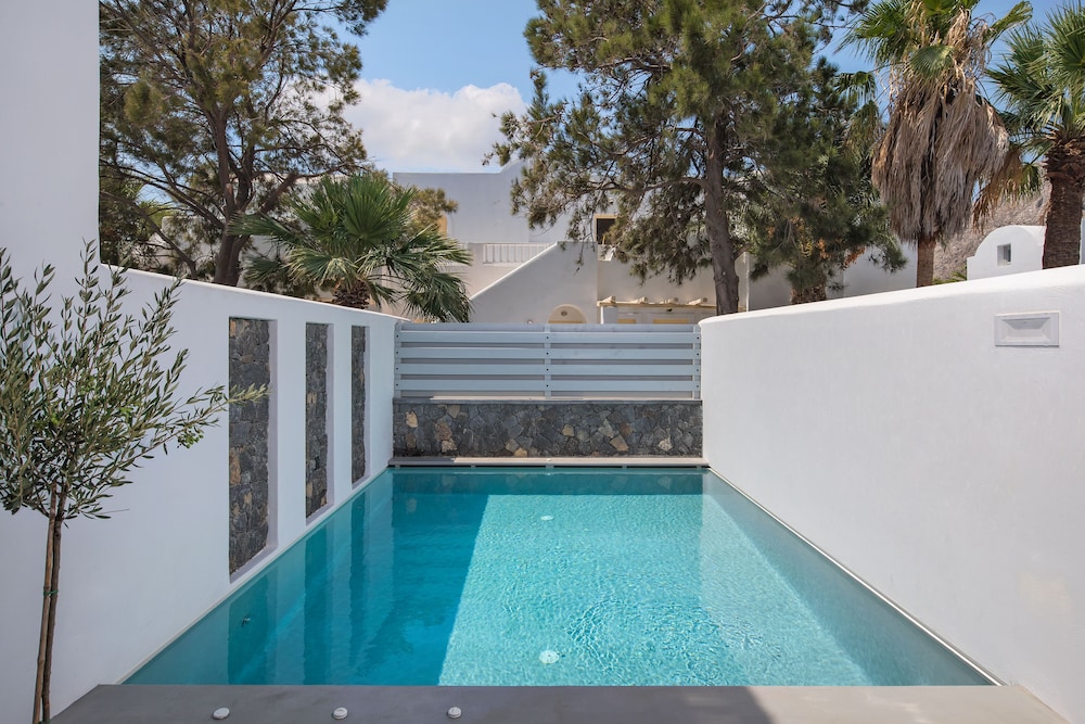 We stayed in one of the Excelsior suites. Highly recommended but the rest of the hotel was lovely and all spotlessly clean. It's well situated with shops, bars, restaurants and tavernas a few minutes walk away. The beach is a 5 minute walk with loads of bars (try Tranquillo - cocktails are amazing) and restaurants along the beach front. The bus stop is a few minutes walk from the hotel. All buses go into and out of Fira, which is about 25 minutes away so easy to get around the island. Taxis however are very expensive.