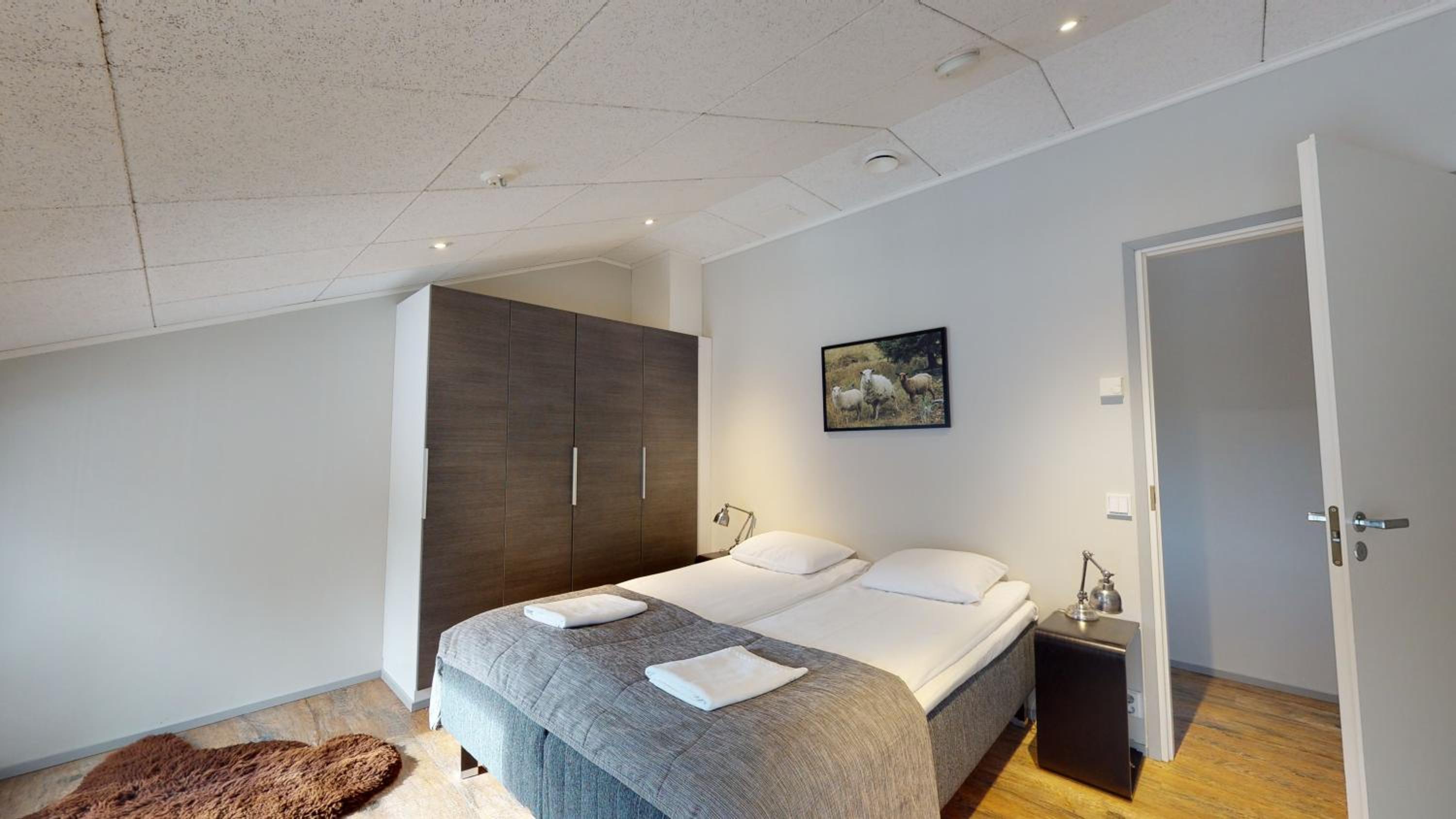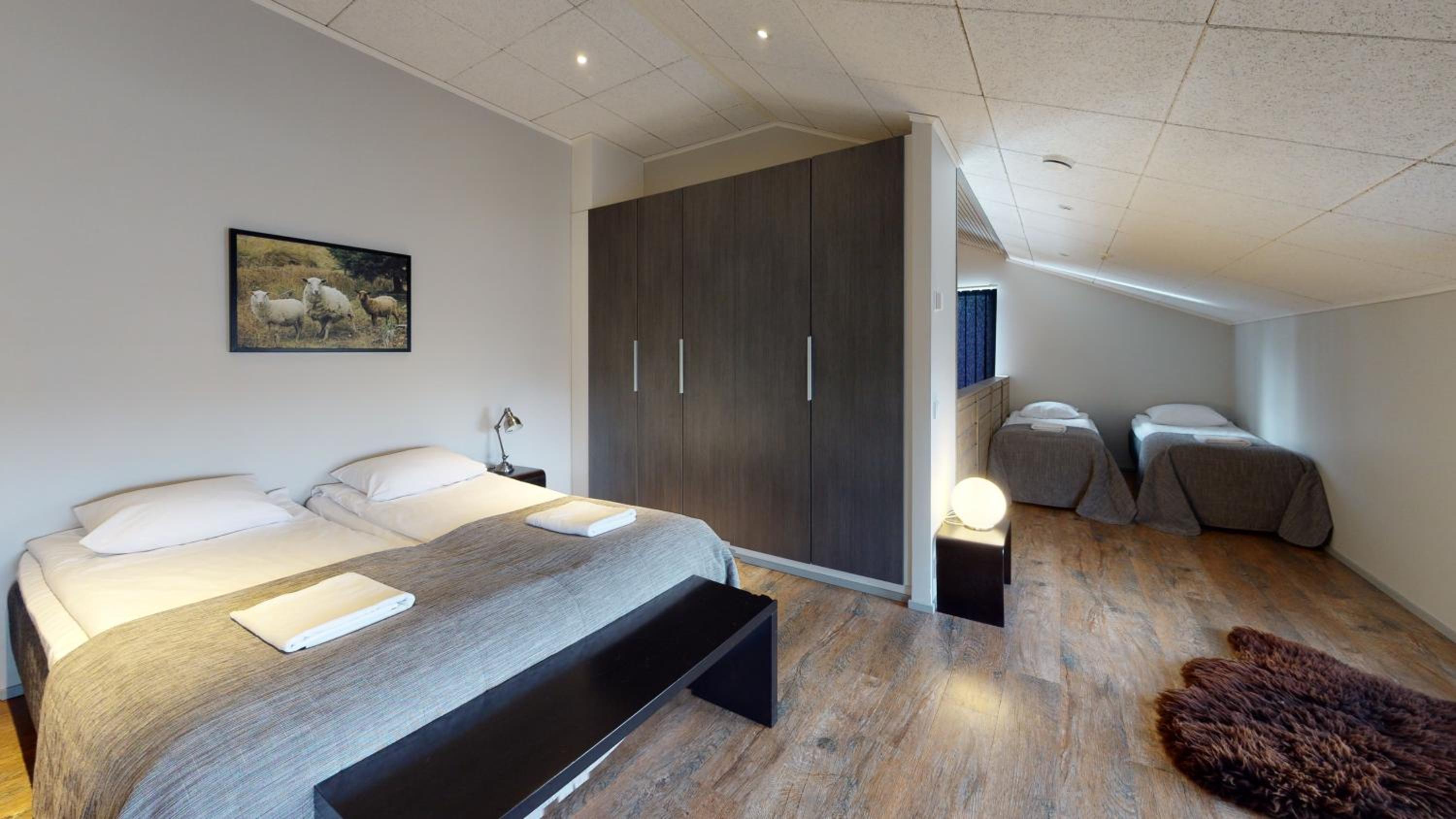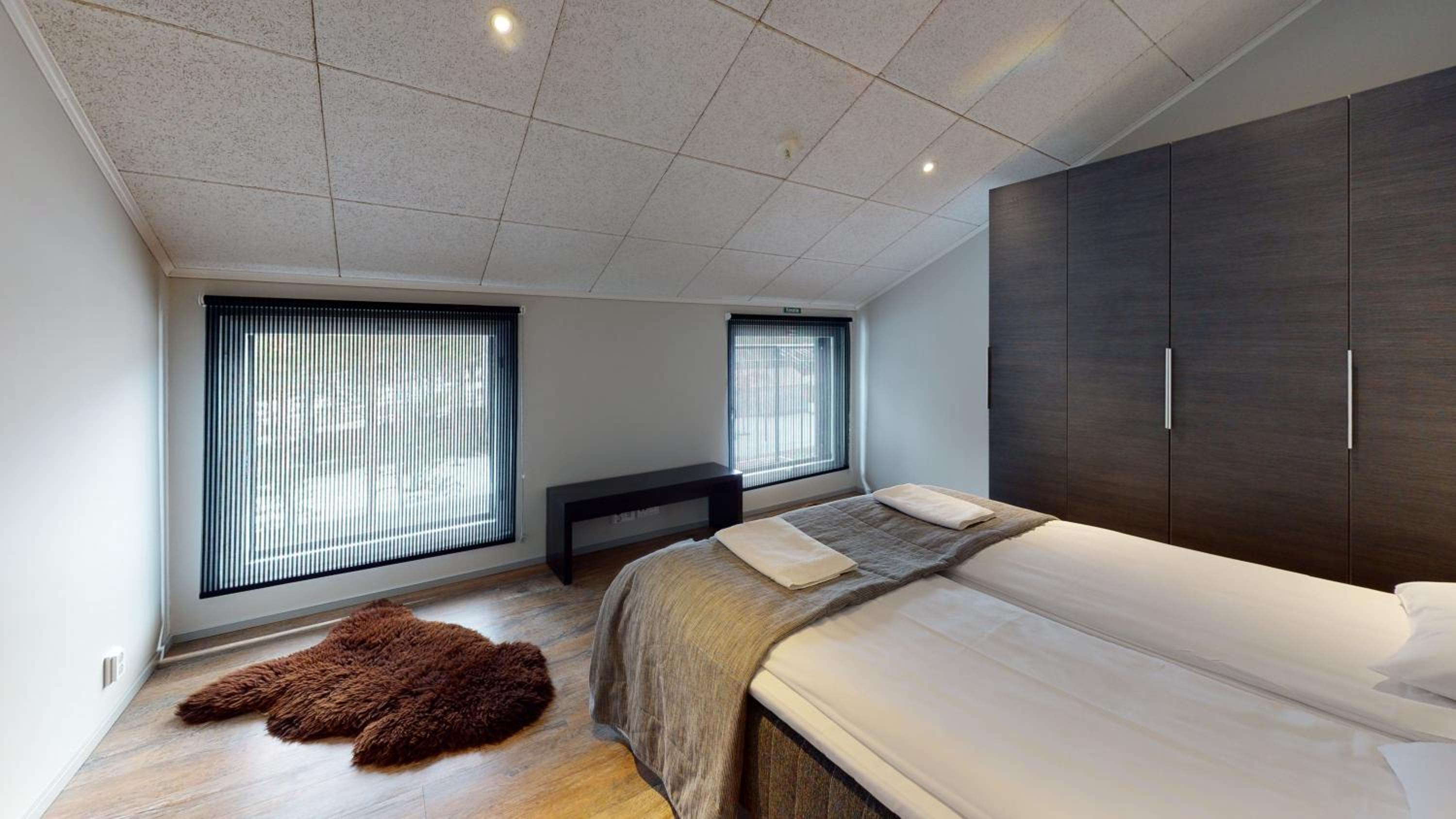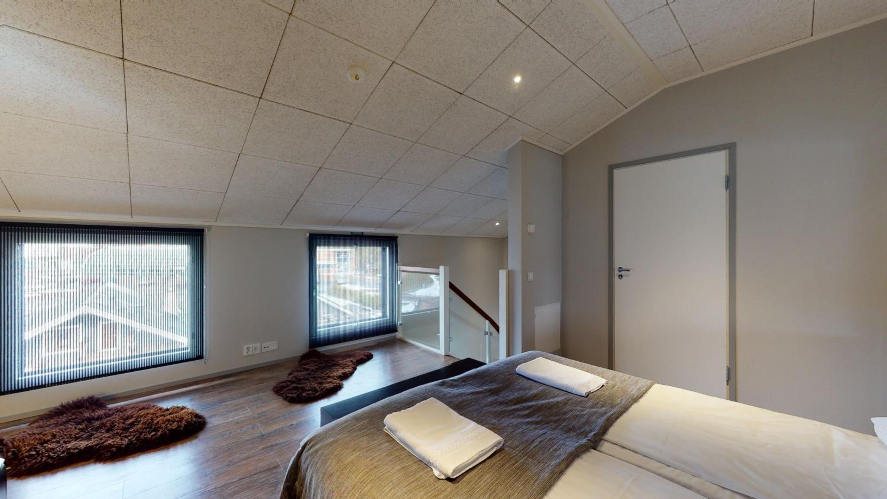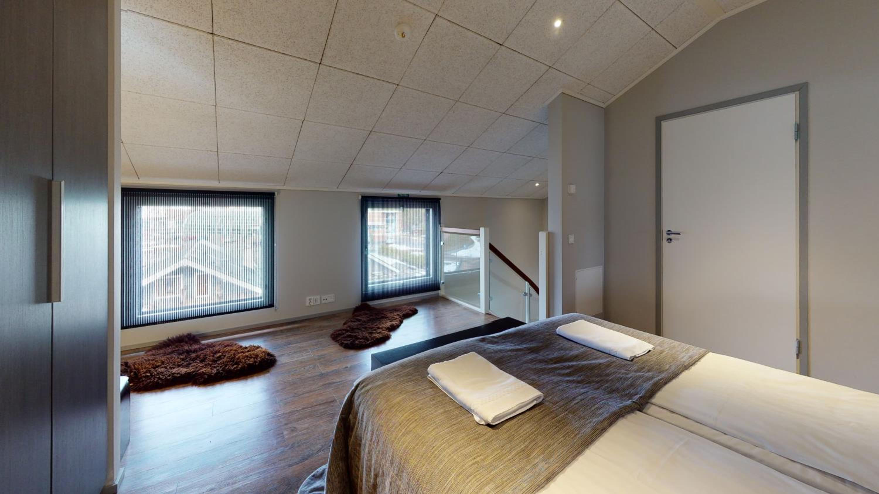 Huoneisto on tilava ja mukavan mallinen. Sänkyyn olisin halunnut toisen tyynyn. Keskeisellä paikalla ja henkilökunta ystävällistä. Toinen makuuhuoneista on avotilassa, mutta ei häiritsevä, jos kaikki menevät nukkumaan samanaikaisesti.Muuten keittiö/olohuonetilan äänet kuuluvat suoraan tähän makuutilaan.
