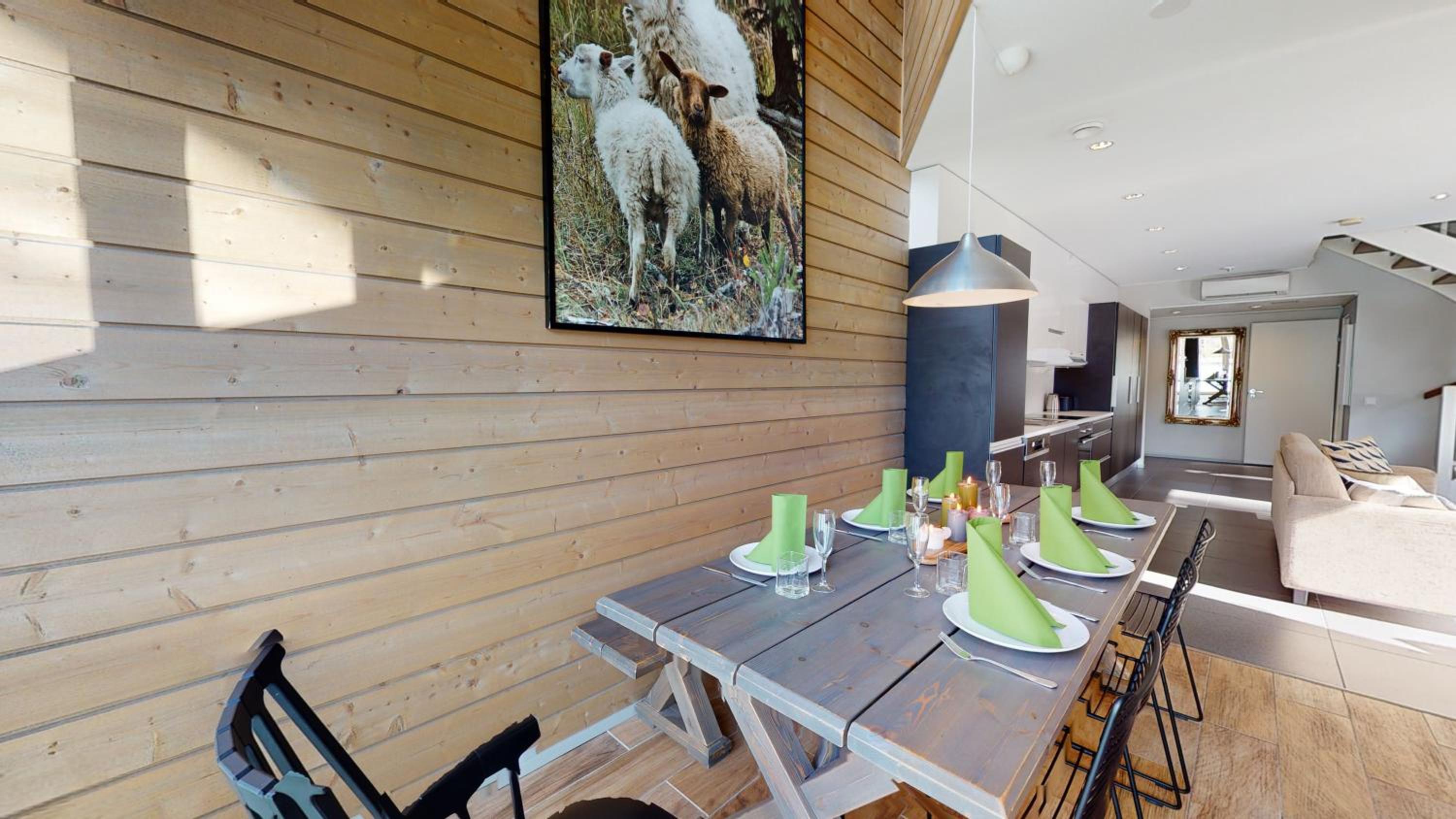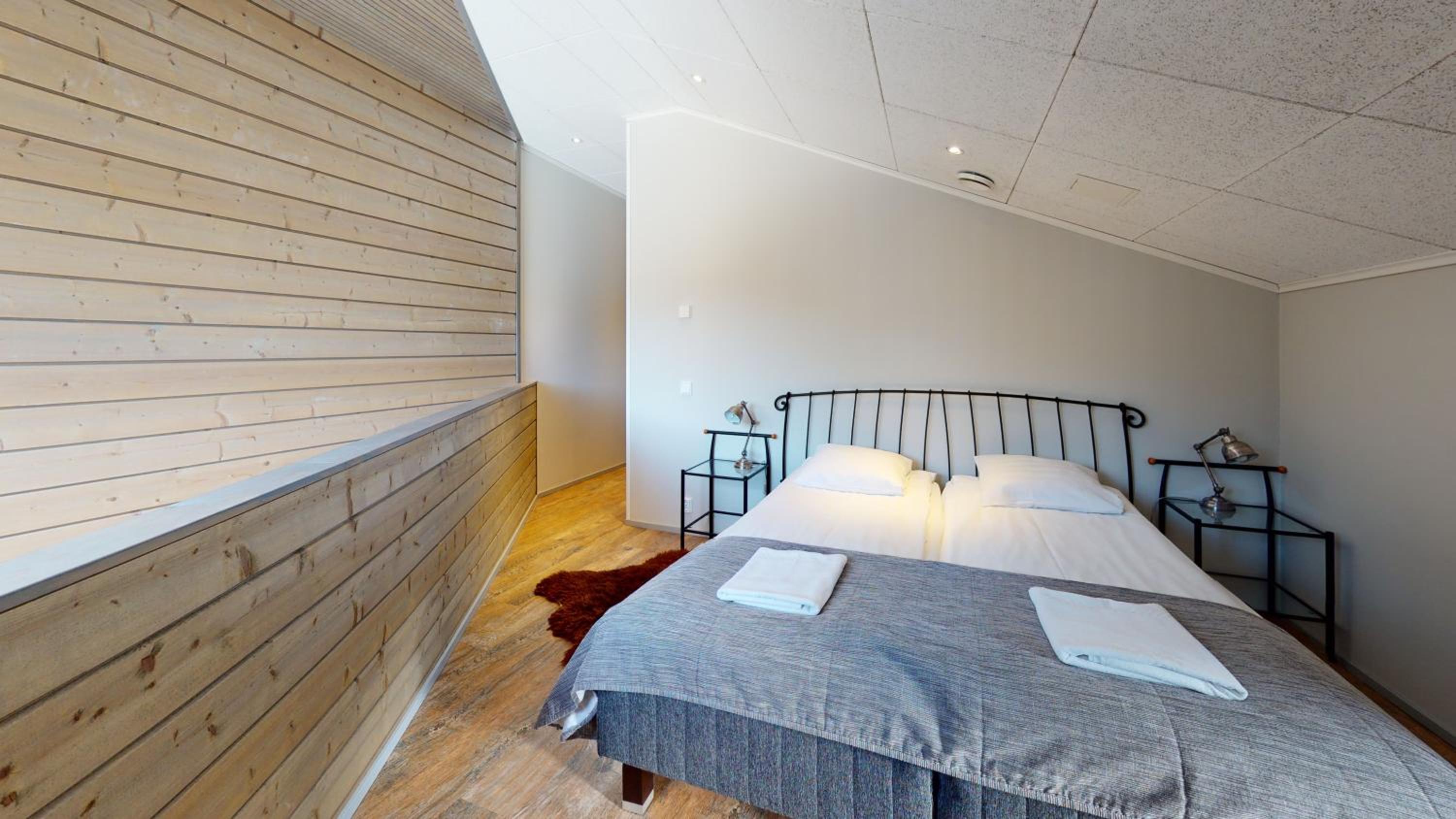 Ett bra boende med fina bekvämligheter. Bra kök, bastu och tillräckligt stora utrymmen. Tyvärr lutade sängen en aning och kudden var lite för hög.