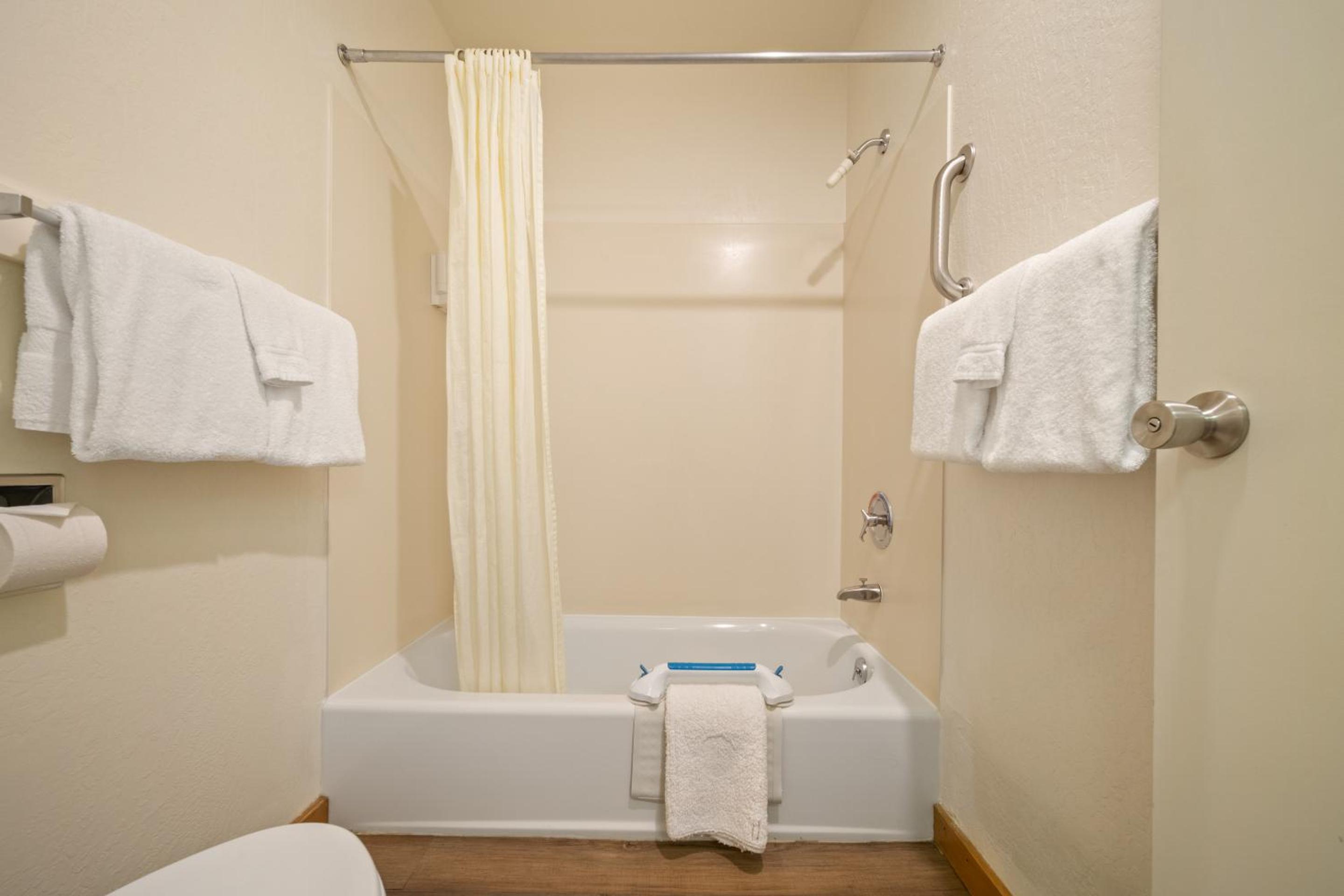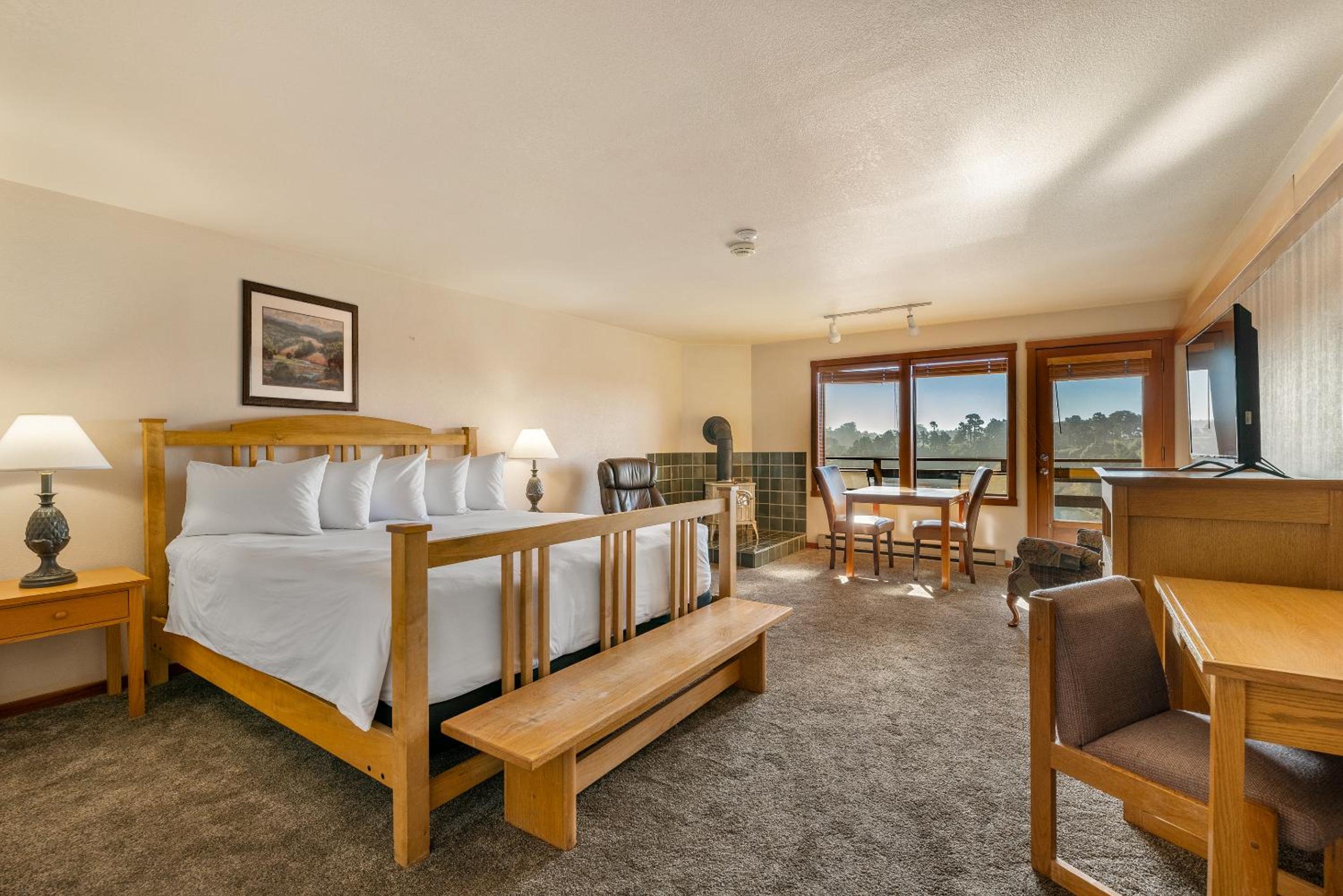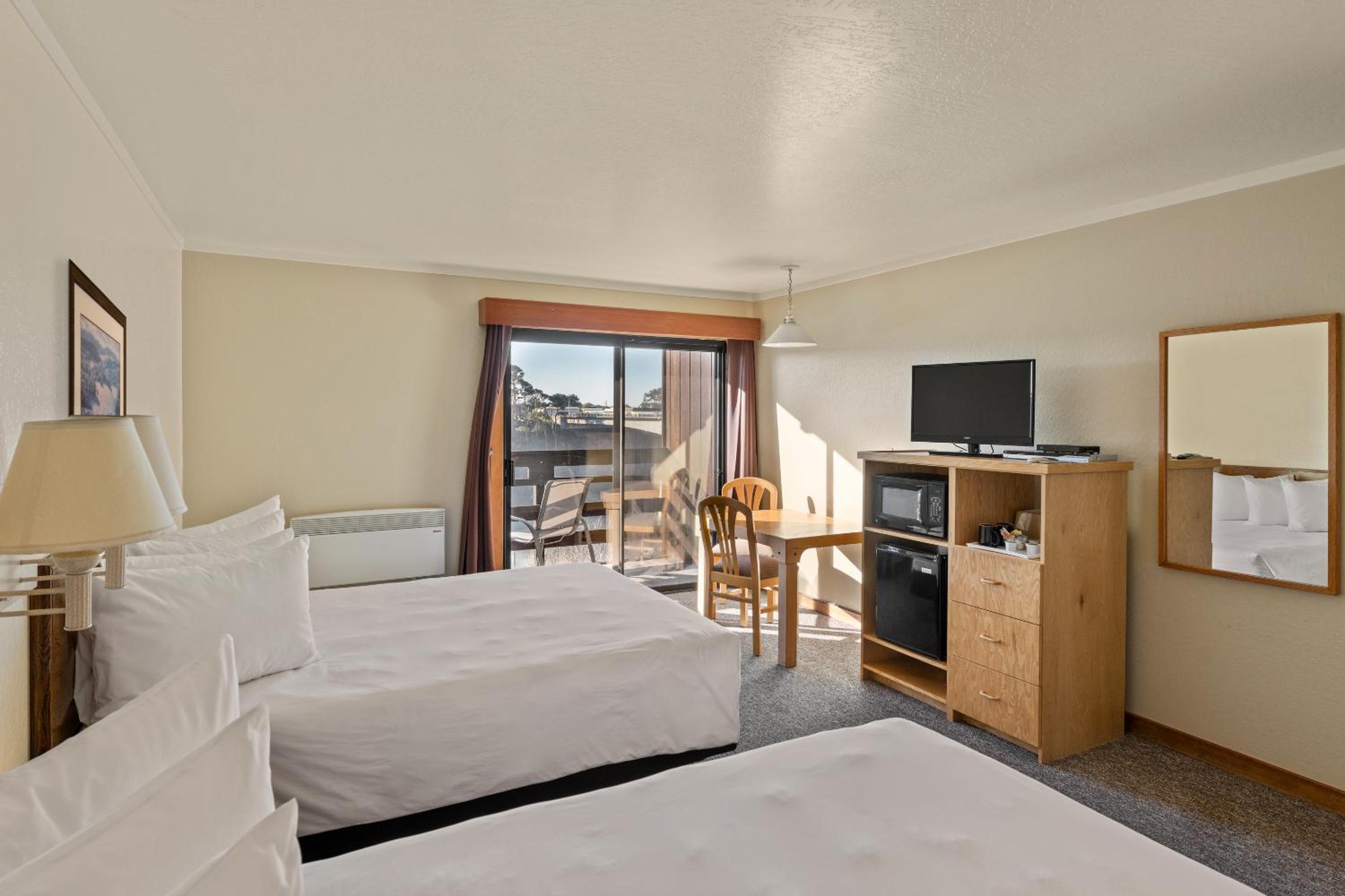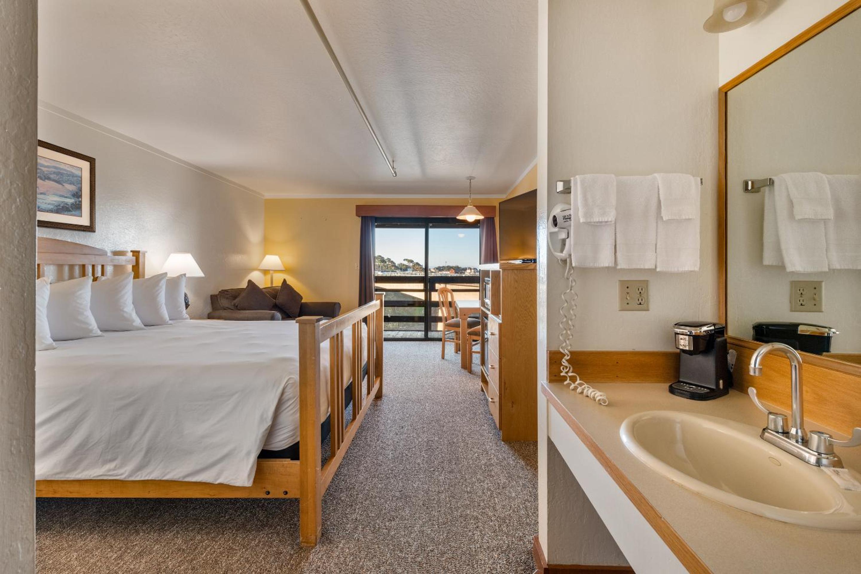Each room at Harbor Lite Lodge is thoughtfully equipped with modern amenities including a fridge, microwave, and flat-screen TV. Some rooms feature terraces with river views, ensuring a peaceful stay. The private bathrooms come with complimentary toiletries and a hairdryer.