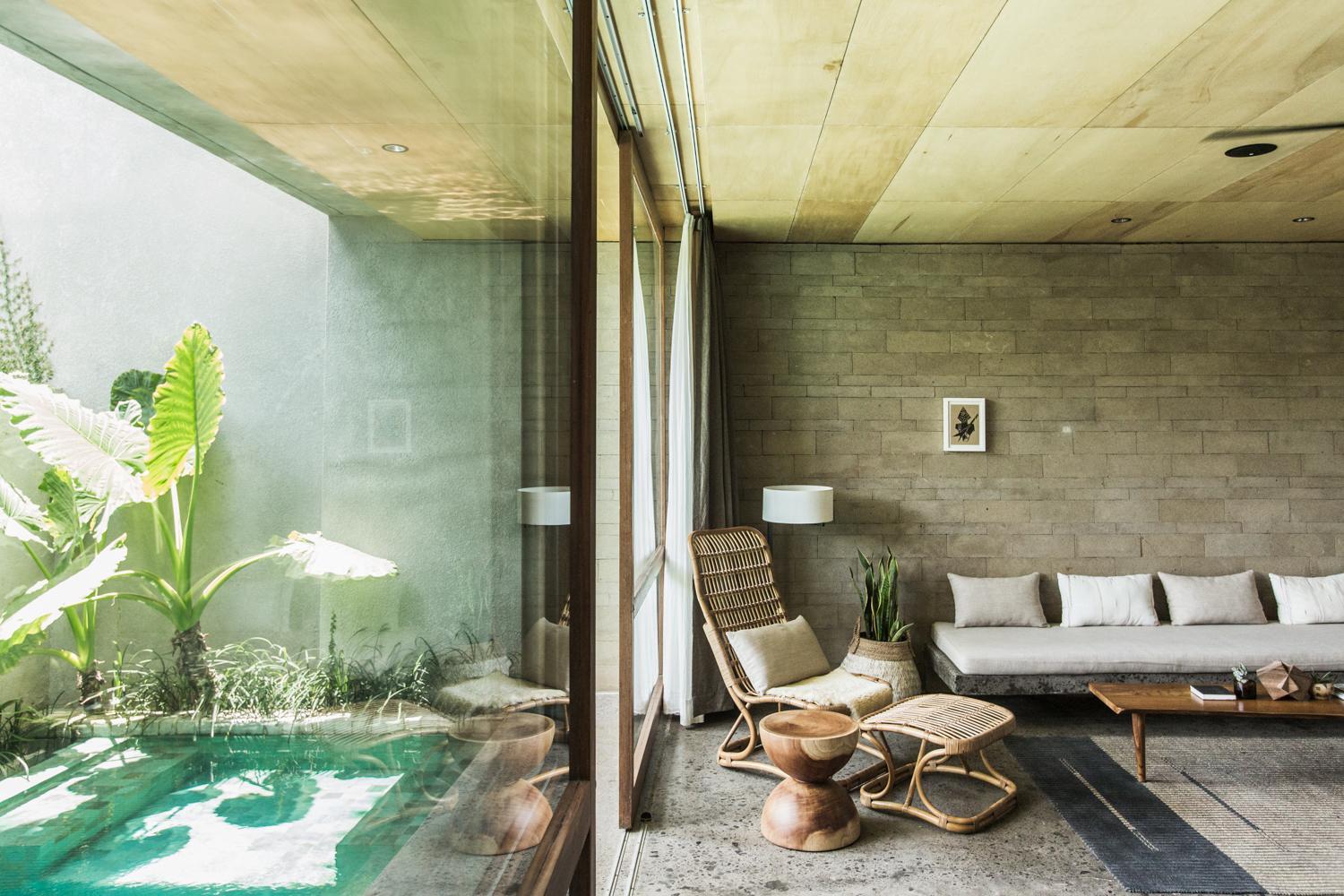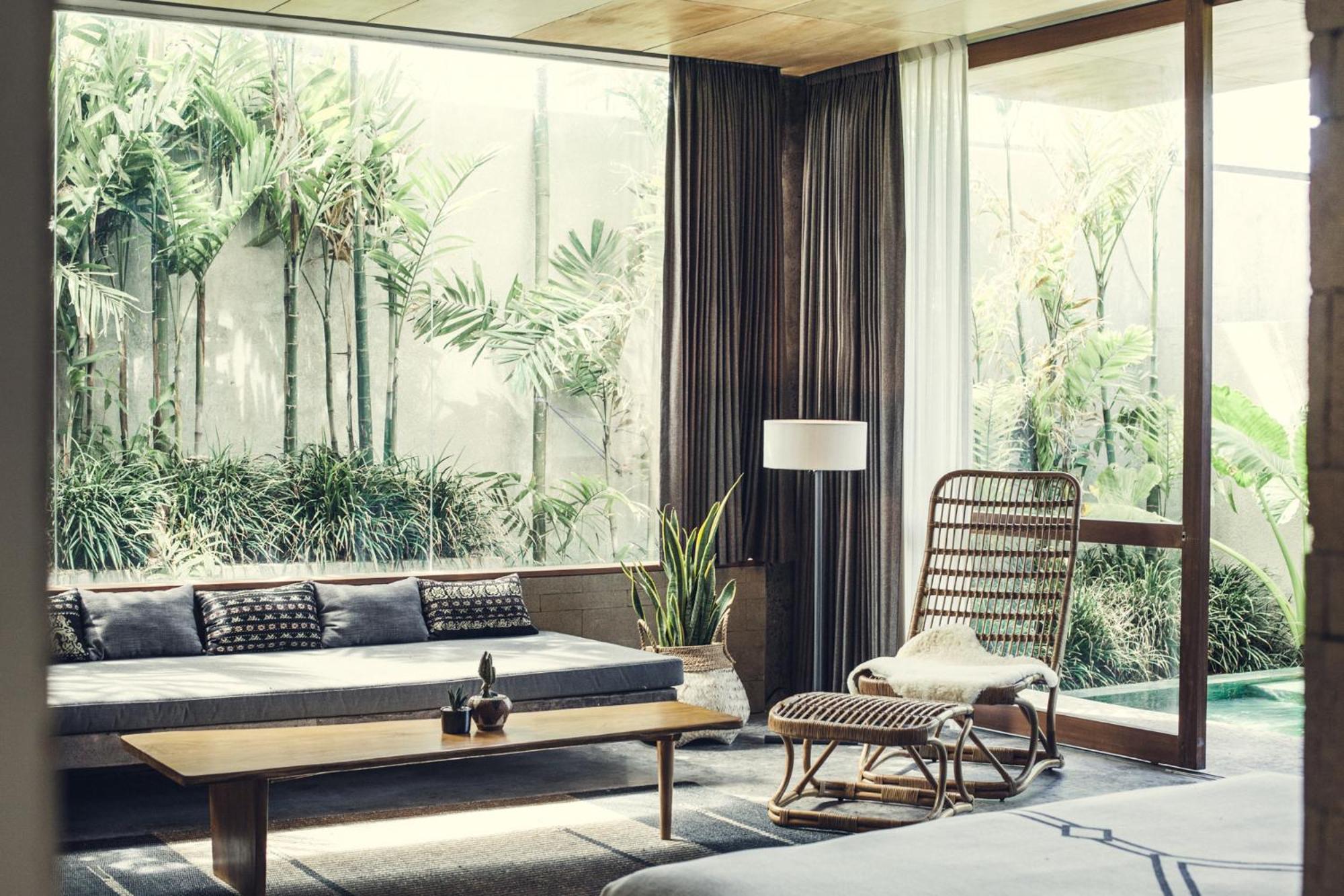 Experience a blend of modernity and nature with rooms offering floor-to-ceiling windows for ample natural light or views of the pool and garden. Each room is designed to provide a comfortable and visually pleasing environment.