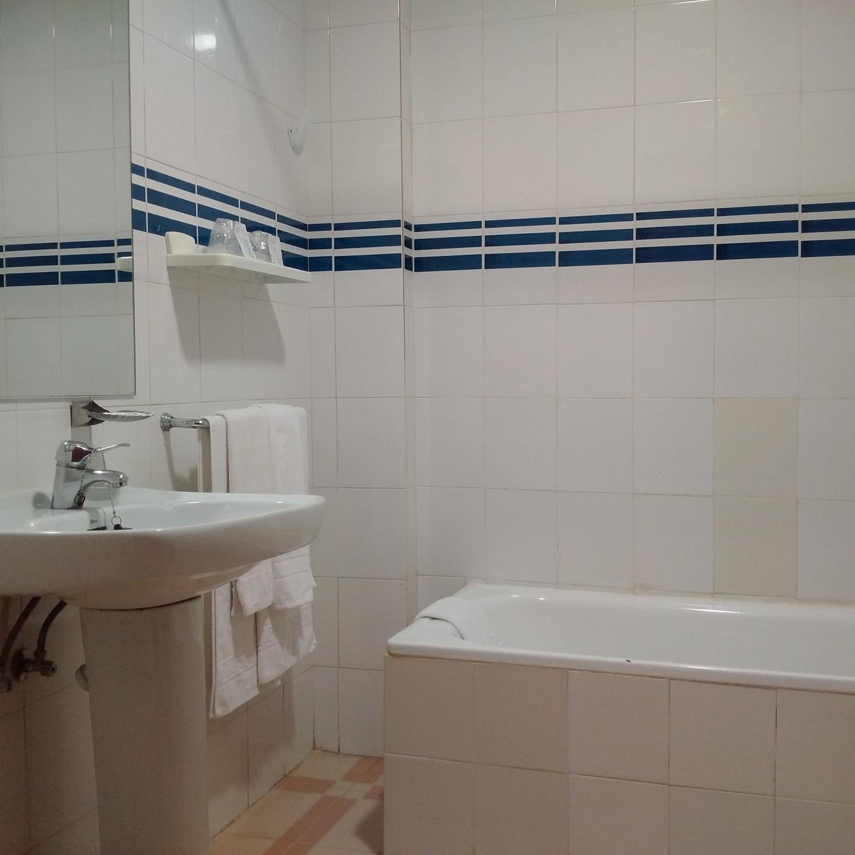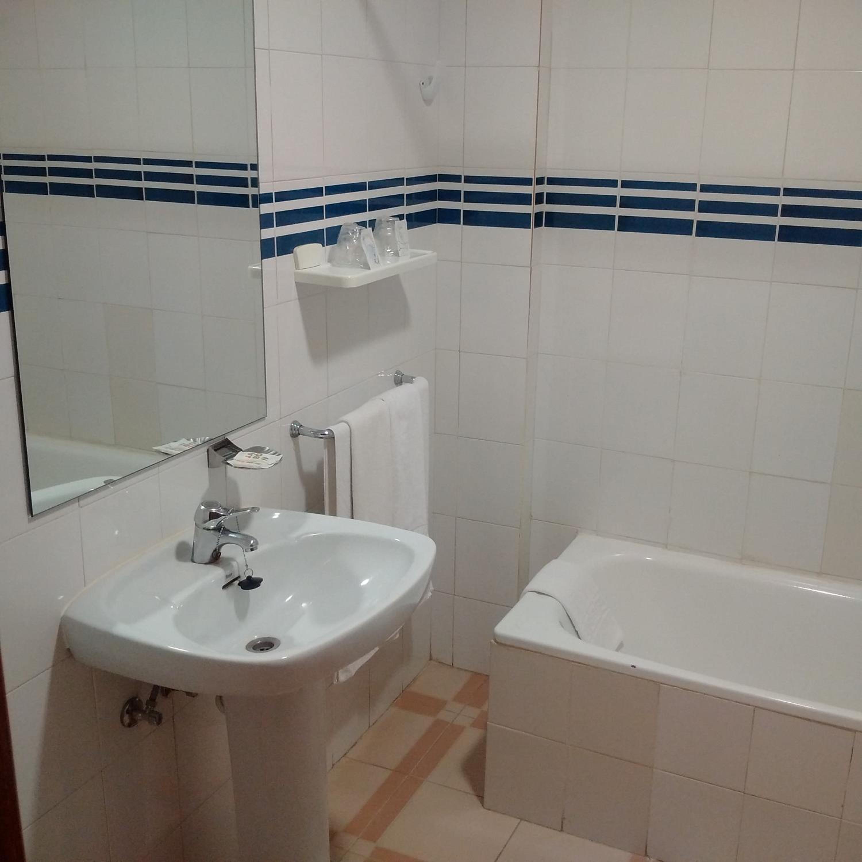 Cuarto de baño algo incómoda la bañera.