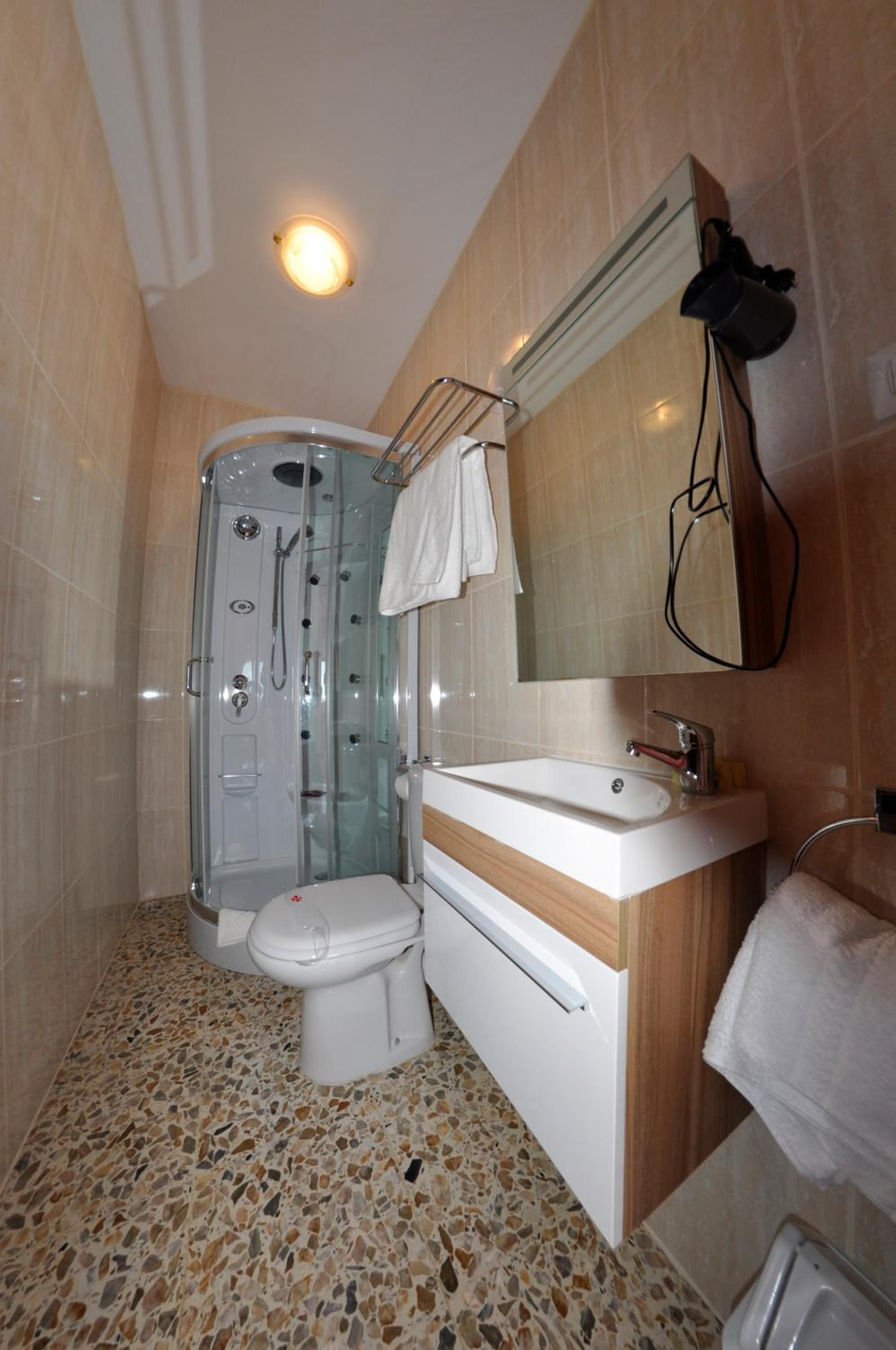 Guests can relax in well-appointed rooms featuring amenities such as free WiFi, flat-screen TVs, and private bathrooms with bidets. Some rooms even boast scenic views of the sea or mountains from their balconies.