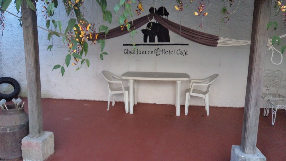 Enjoy breathtaking views from the terrace and garden at Chez Juanca Hotel Cafe. Relax in a serene setting while taking in the beauty of the surroundings.