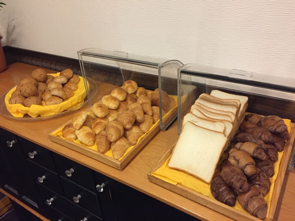 My husband and I came here after a very late flight. We just needed a lace to crash as we didn't think we would make the last train on time. The building was very old and dank looking. Not very attractive inside or out. But the room was nicely decorated and had everything we needed. It was literally like staying in a single person 1k apartment. Bathroom was tiny. And I mean airplane lavatory tiny. A good assortment of amenities and a small balcony, closet and separate sink with tea making supplies as well. Our breakfast was convince store bread, like in a package. Some juice and 24 hour coffee free coffee were available. Let's just say it was basically decent for what we paid and not too far from the station. Good enough for it's purpose. Noon check out time is generous as well.