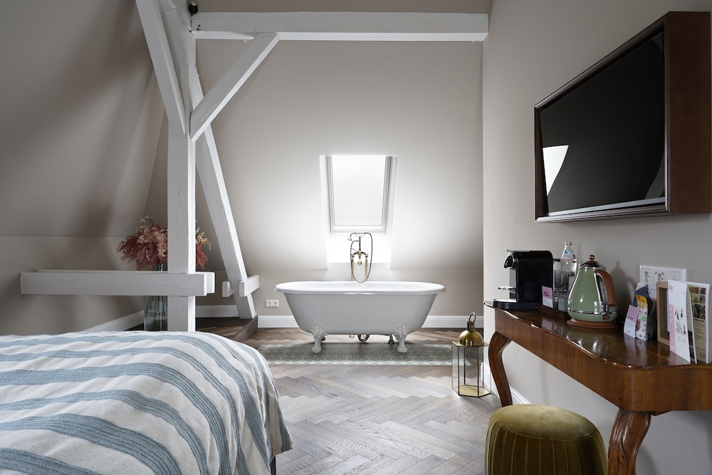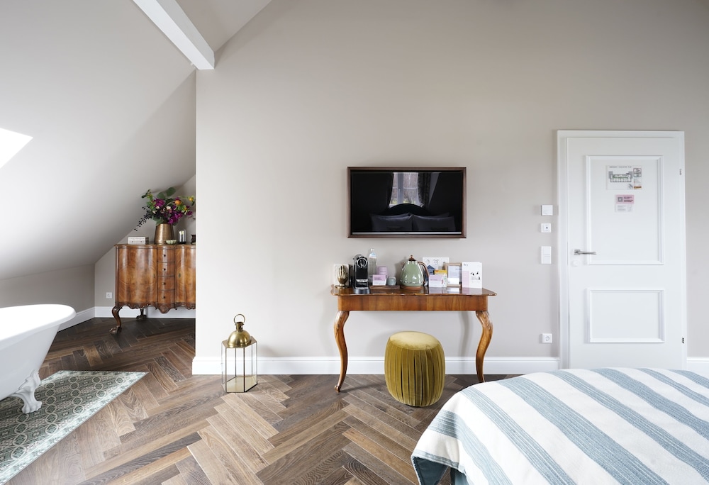 Super schöne Zimmer, geschmackvoll eingerichtet und gemütlich. Trotz nicht vorhandener Rezeption war es vollkommen klar und einfach erklärt. Frühstück wird an die zimmertür gebracht, zur info wird ein zettel unter die tür geschoben. Fanden wir irgendwie richtig lieb und nostalgisch. Was ich empfehlen würde wäre besteck im zimmer. Das wirklich gute frühstück lässt mit solch holz besteck etwas schwierig essen. Das Restaurant im haus gehört nicht zum hotel, ist aber sehr freundlich und gut und man kann sich dort essen und trinken bestellen um es mit aufs zimmer zu nehmen. Wir würden wieder kommen! Sehr charmantes hotel!
