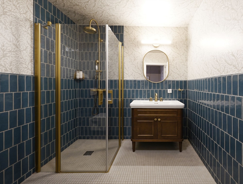 Relax in uniquely styled guestrooms equipped with modern comforts like espresso makers and flat-screen TVs. The private bathrooms offer complimentary toiletries for a touch of luxury.