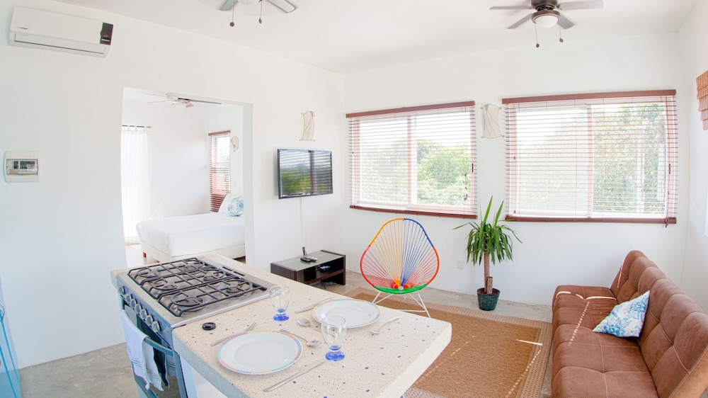 Very happy to have stayed in Hotel Mango while we were in Tulum. Three of us stayed in 'penthouse', it was comfortable and very clean. The sofa bed in the living room was perfectly comfortable to sleep on.