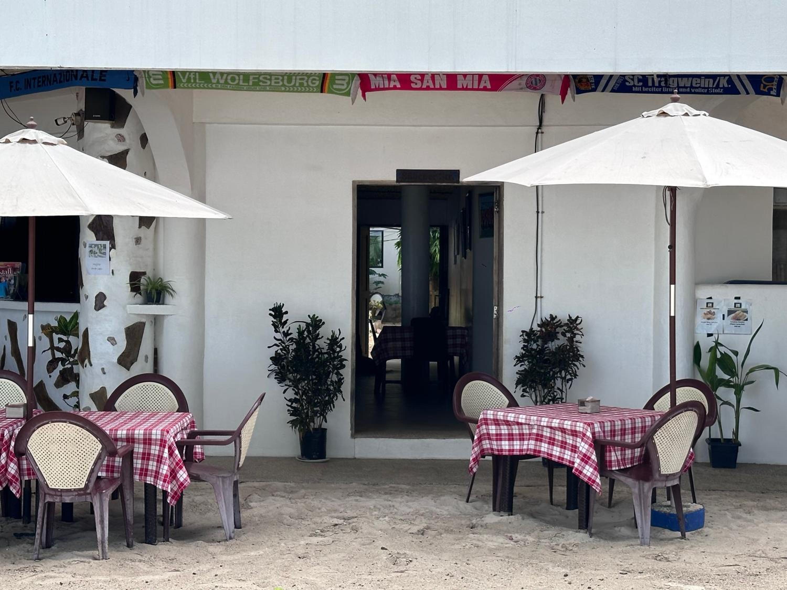 Lage wie beschrieben. Der Restaurantbereich hat einen ehrliches Kneipencharakter. Im Restaurant haben wir durchweg gut gegessen, Fleischesser werden sich freuen. Das Zimmer bietet eine gute Klimaanlage, moderne Duschanlage und einen guten Kühlschrank. Die Veranda wird vielerseits als Wohnzimmer genutzt.