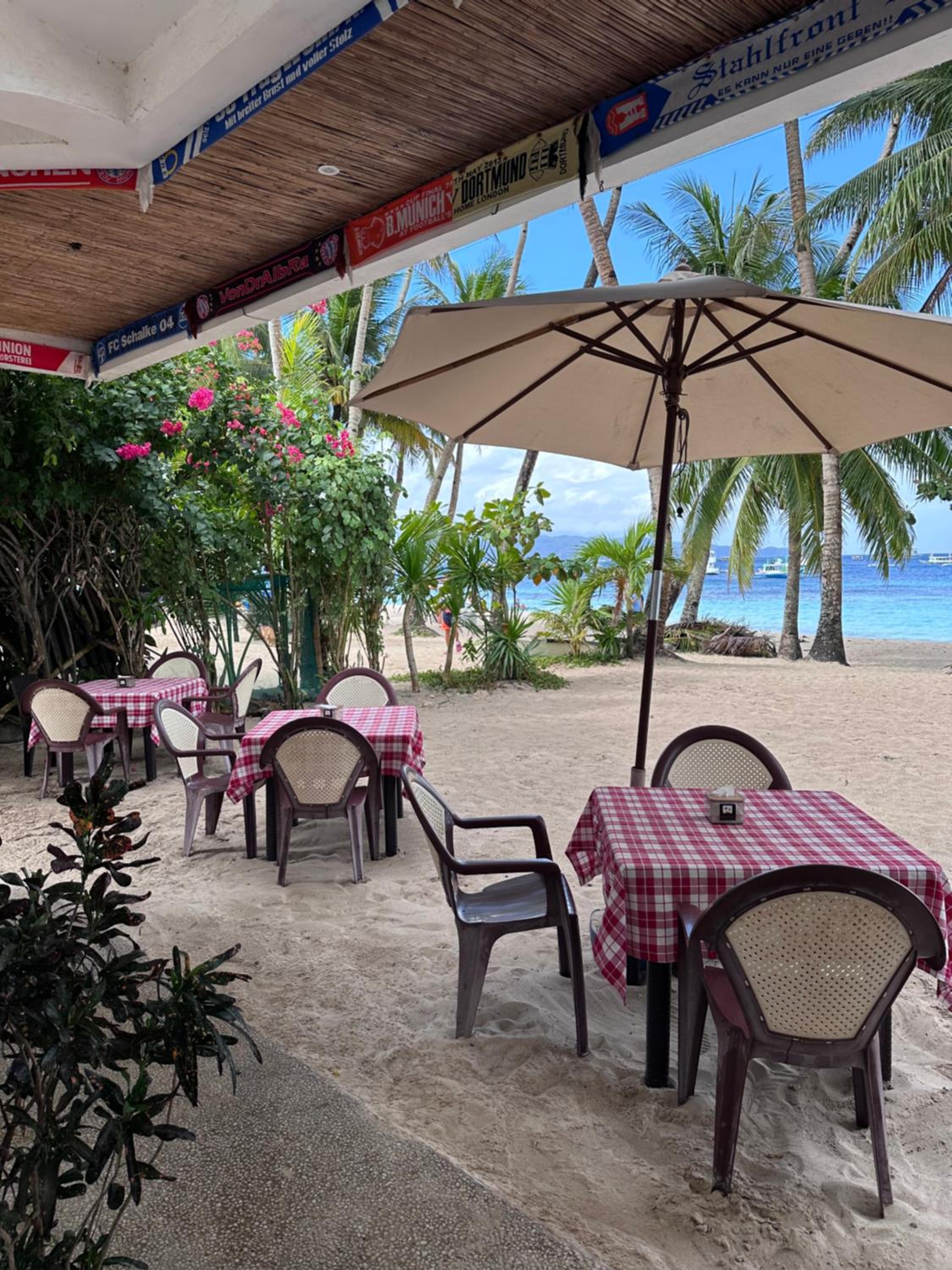 Großartige Lage am Ende der White Beach. Direkt am Meer und trotzdem ruhig. tolles Essen mit täglich zwei Menü angeboten.