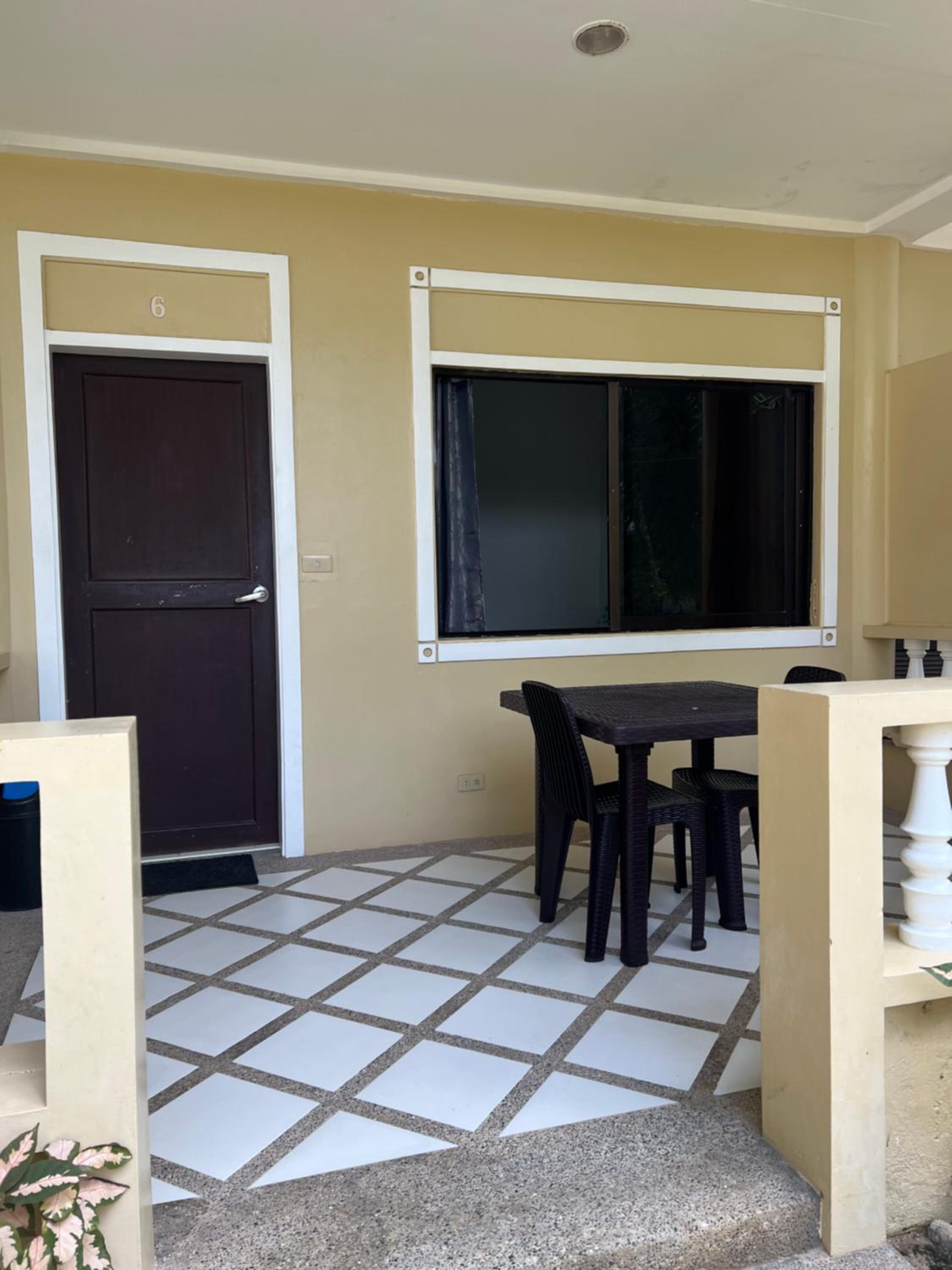 Location was great, down a spiral of metal steps and I was ten meters from the beach so this is beach front and nicely elevated. Nice patio area in front the room patio doors. The room was nice and bright and clean.