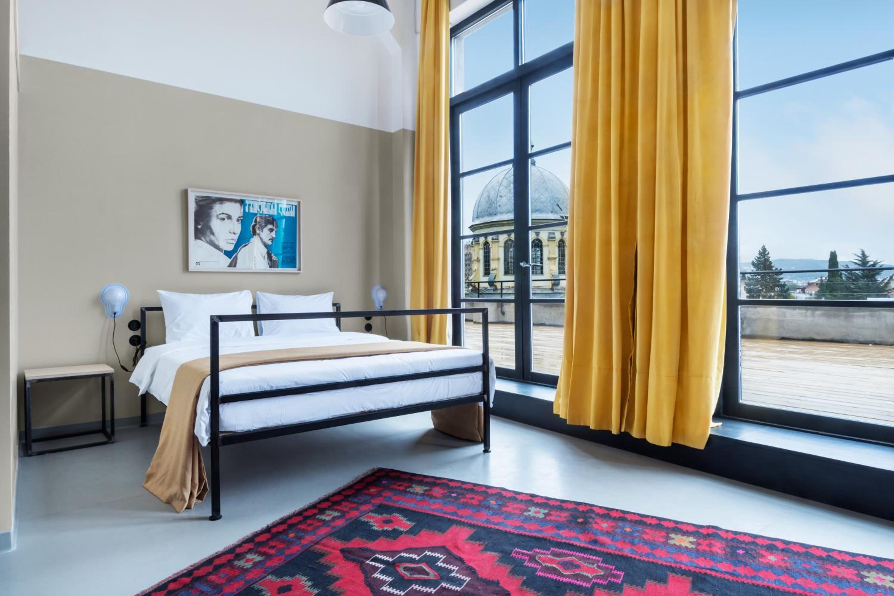 Fabrika Hostel & Suites, located in a former soviet sewing factory in the old historic part of Tbilisi, boasts a captivating design with aged concrete walls and industrial elements, creating a truly unique ambiance.