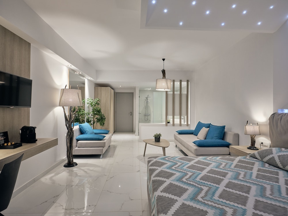 Our initial room was tiny and drab and we asked to be moved. We even considered finding a different accommodation. Staff are friendly and doing their best. The pool is small and crammed with sunbeds also on the grass outside our room. Will not be returning, totally not worth the price by Greek standards.