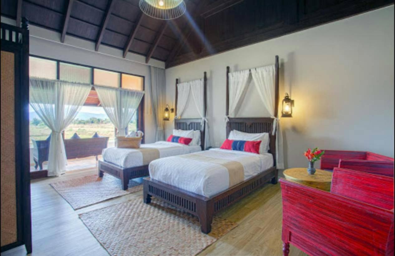 Elegant Rooms with Scenic Views: Unwind in beautifully decorated rooms featuring handmade crafts, private balconies with rice field views, and modern amenities like flat-screen TVs and minibars.